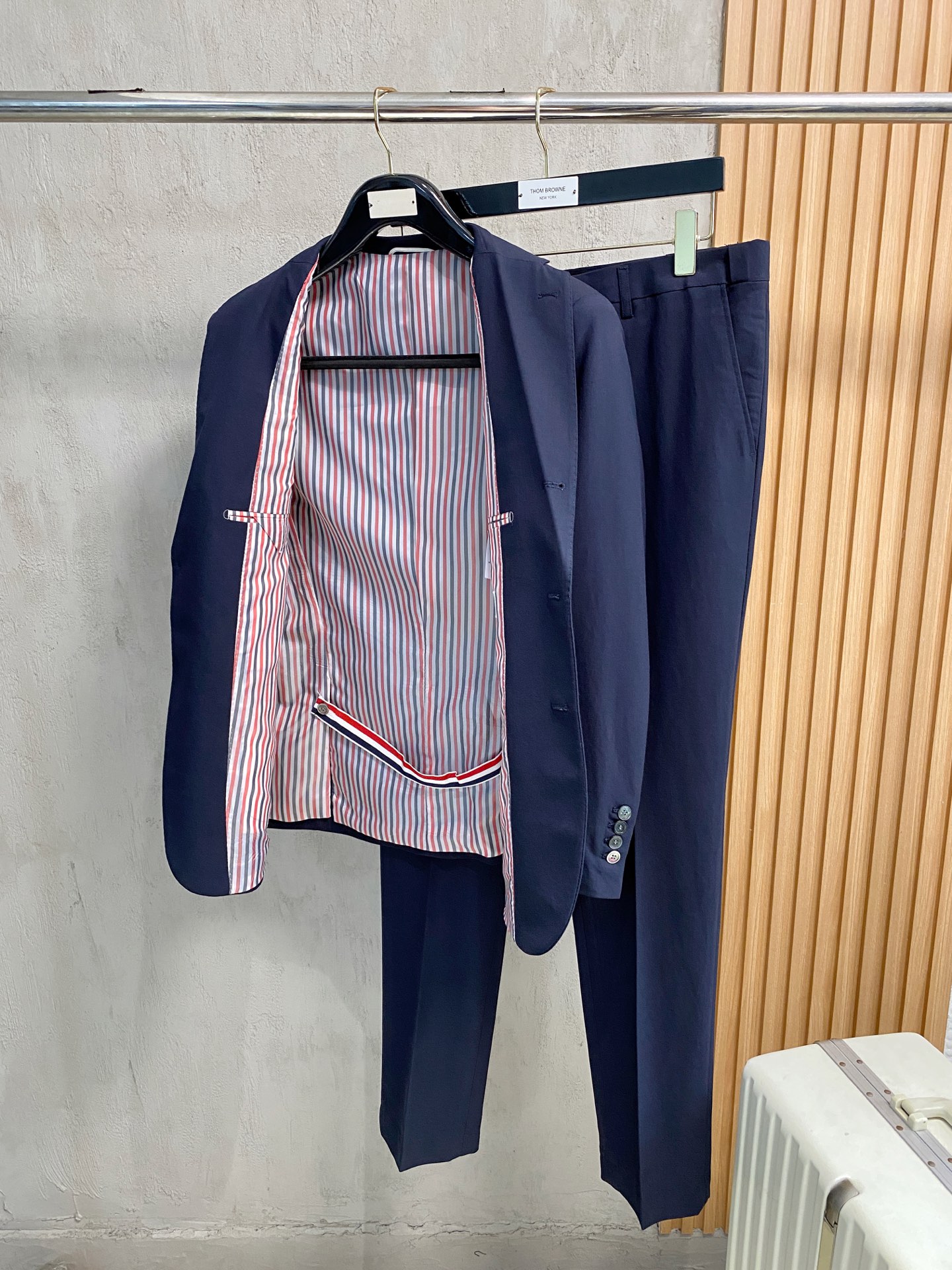 Thom Browne Wool Suit: Classic Style with Modern Fit, Available in Grey & Navy