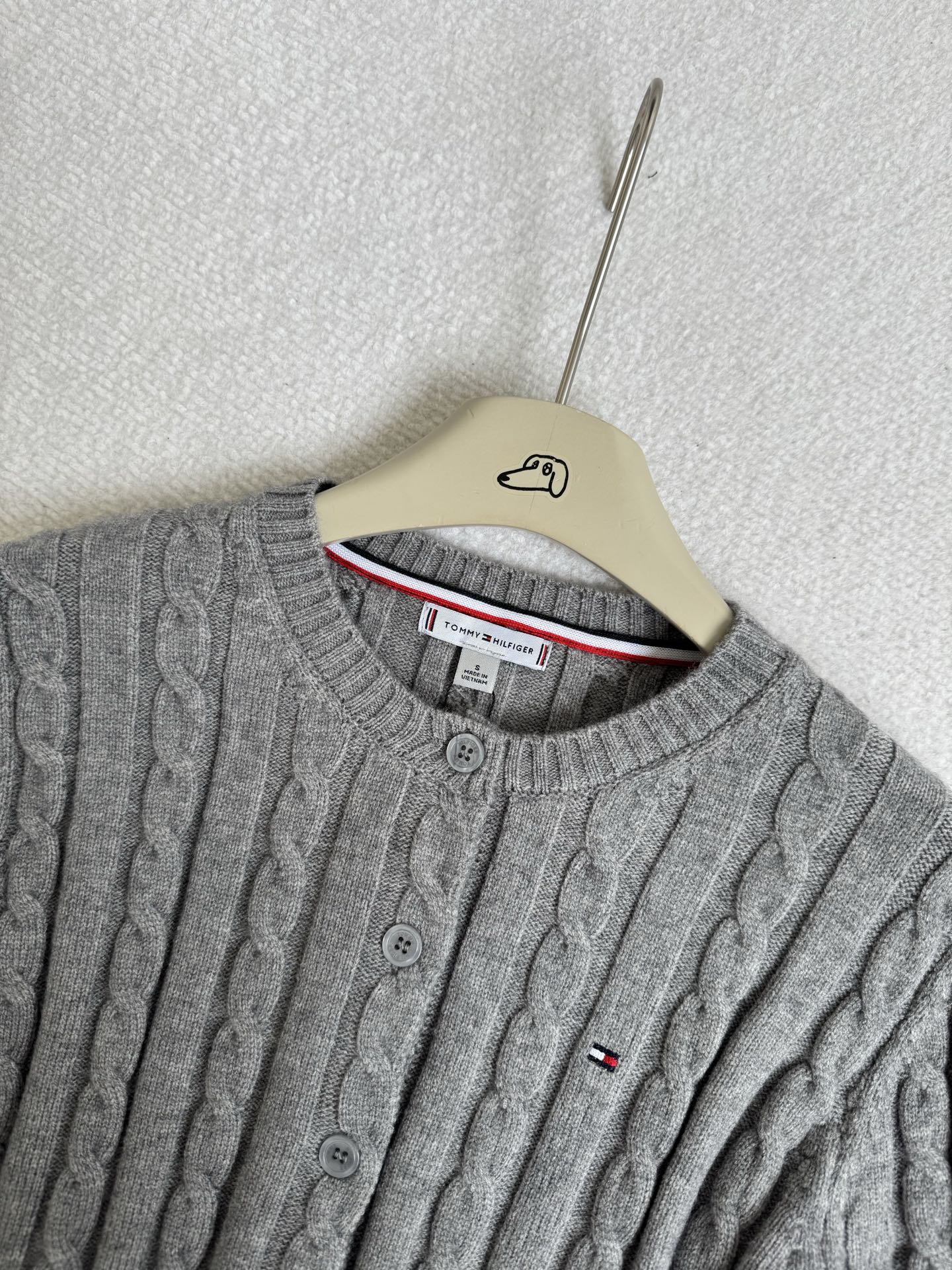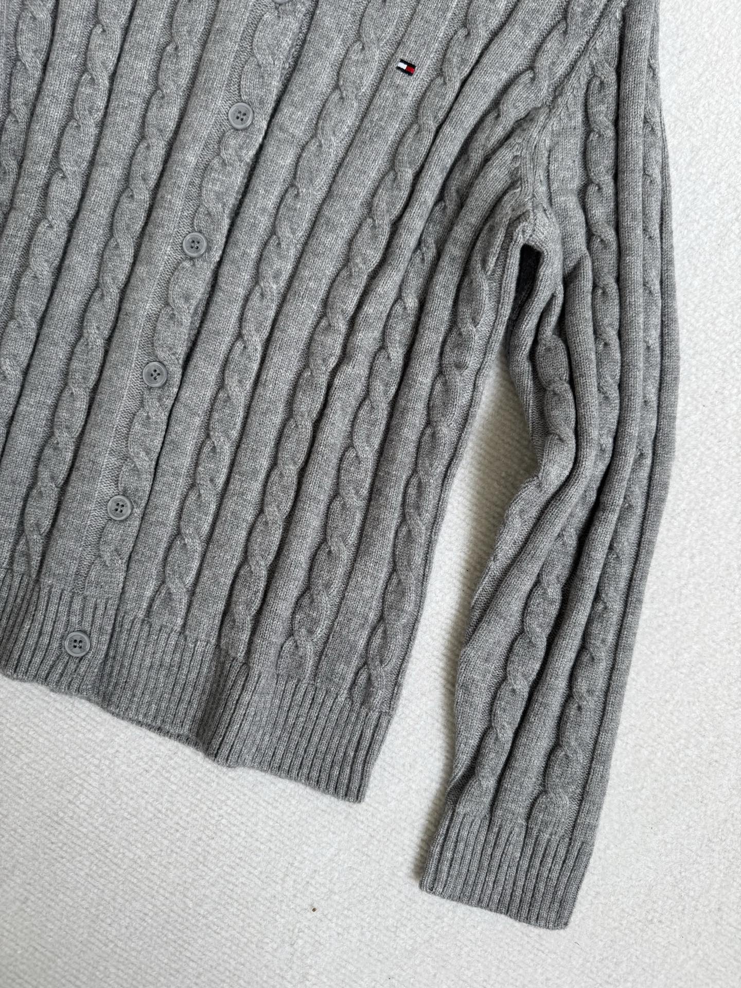 Elevate your fall wardrobe with this Tommy Hilfiger wool blend cable knit cardigan. Soft, comfortable, and versatile for layering or wearing solo.