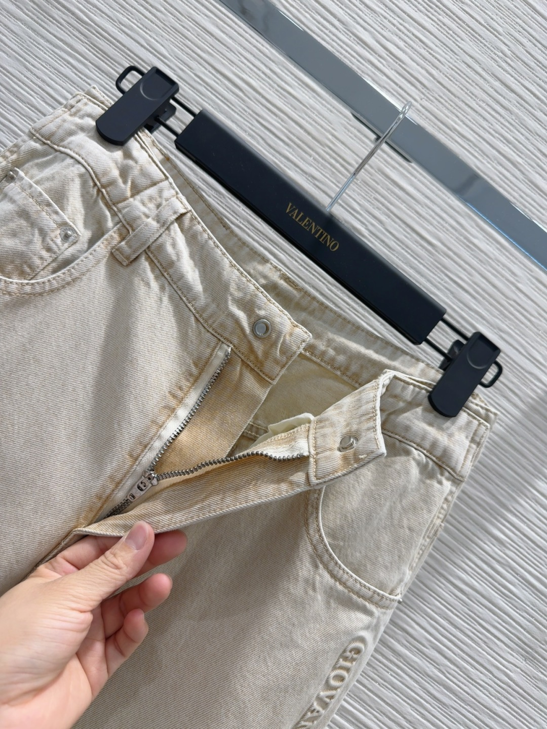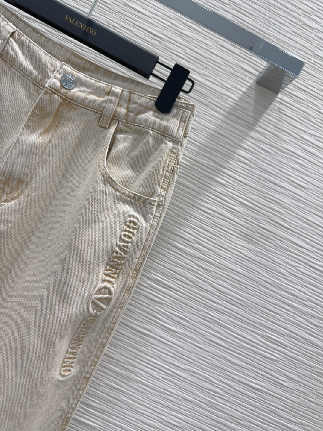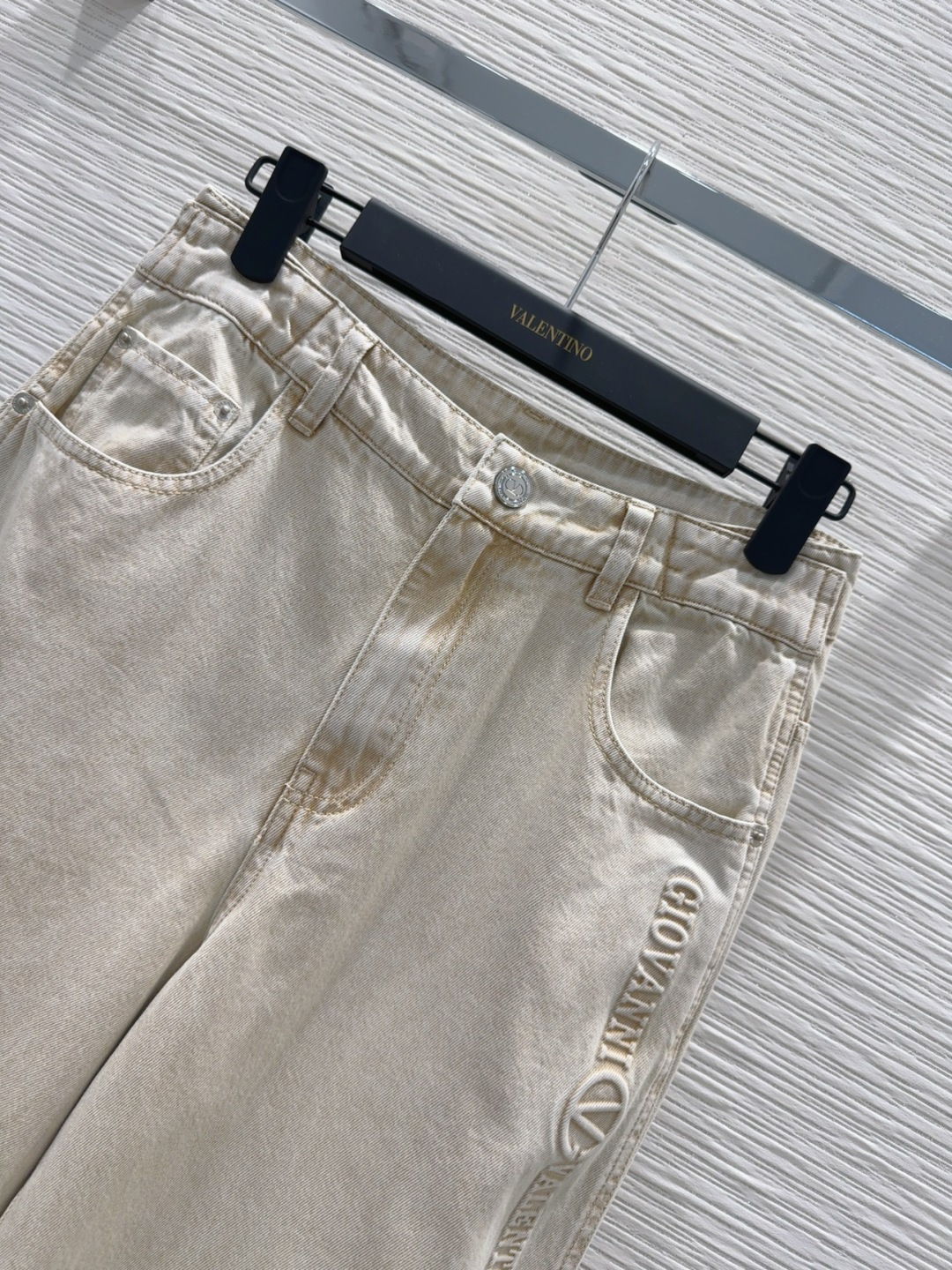 These Valentino jeans from the 2025 Spring/Summer collection are a must-have for any fashion-forward woman. The wide-leg design and high waist create a flattering silhouette, while the quality denim ensures both comfort and durability.