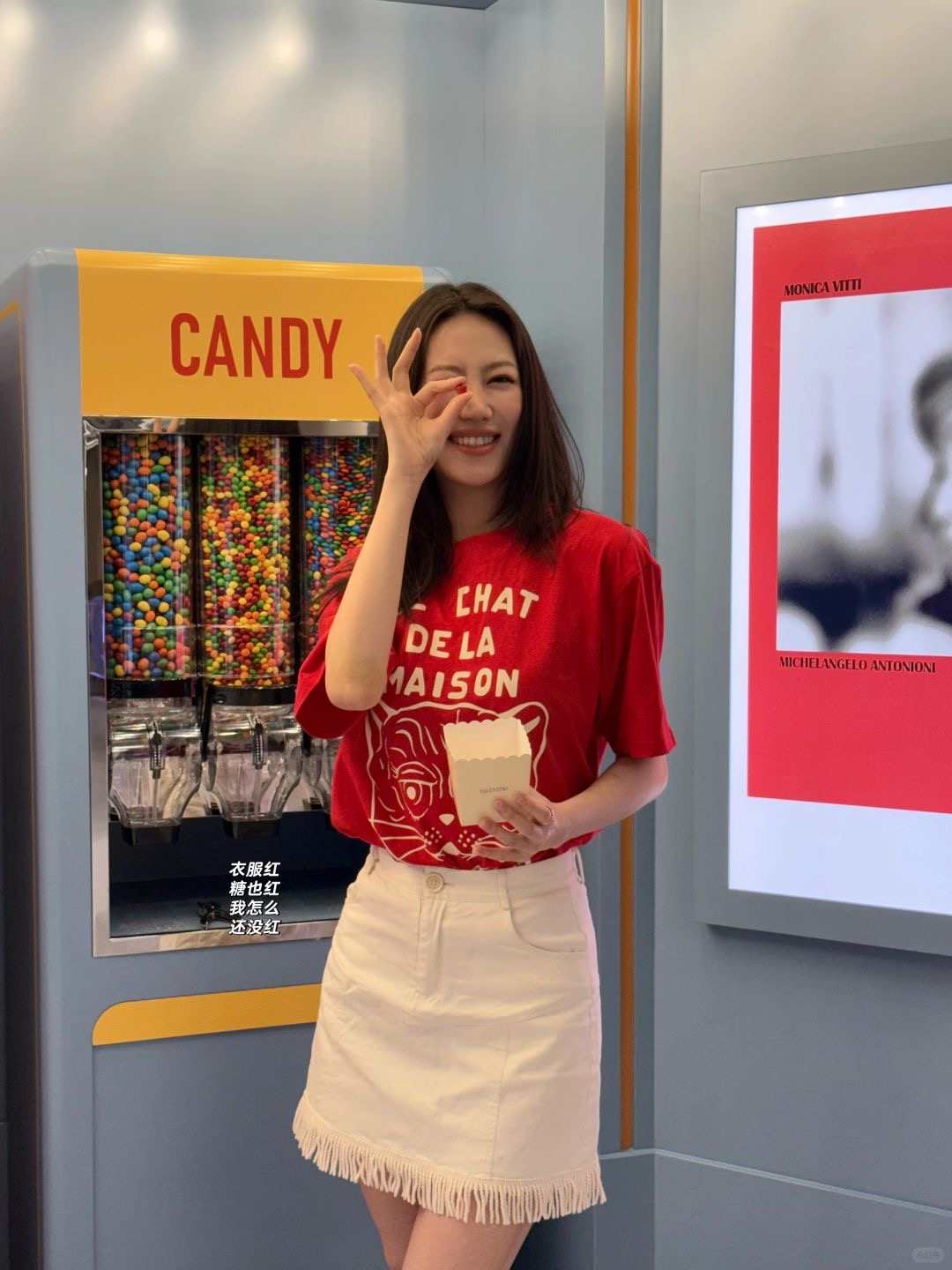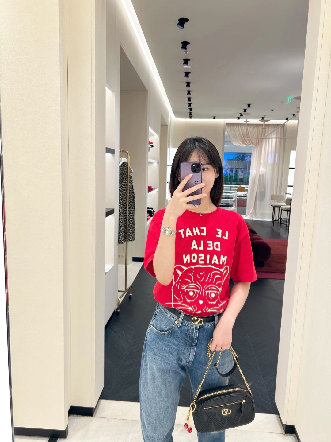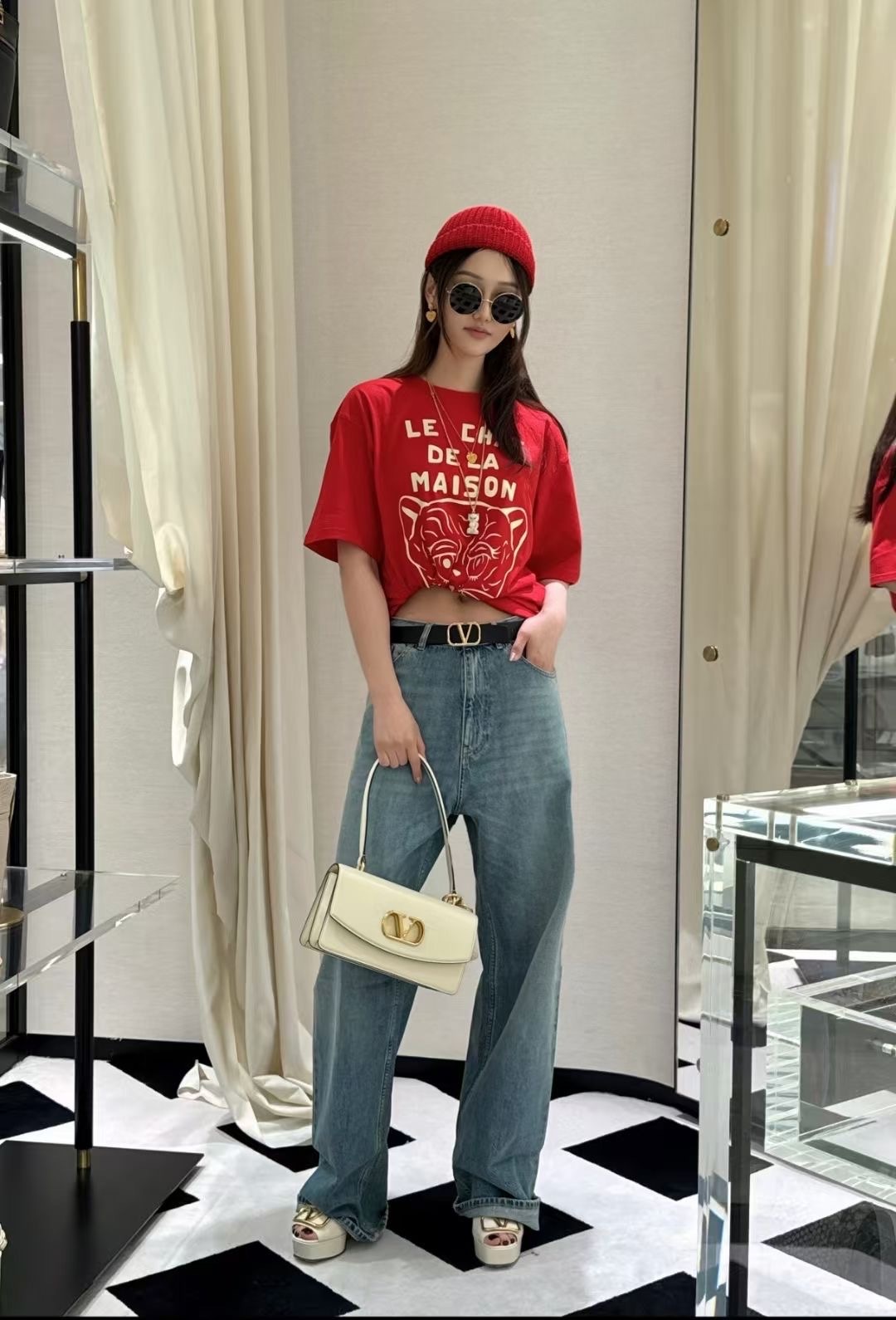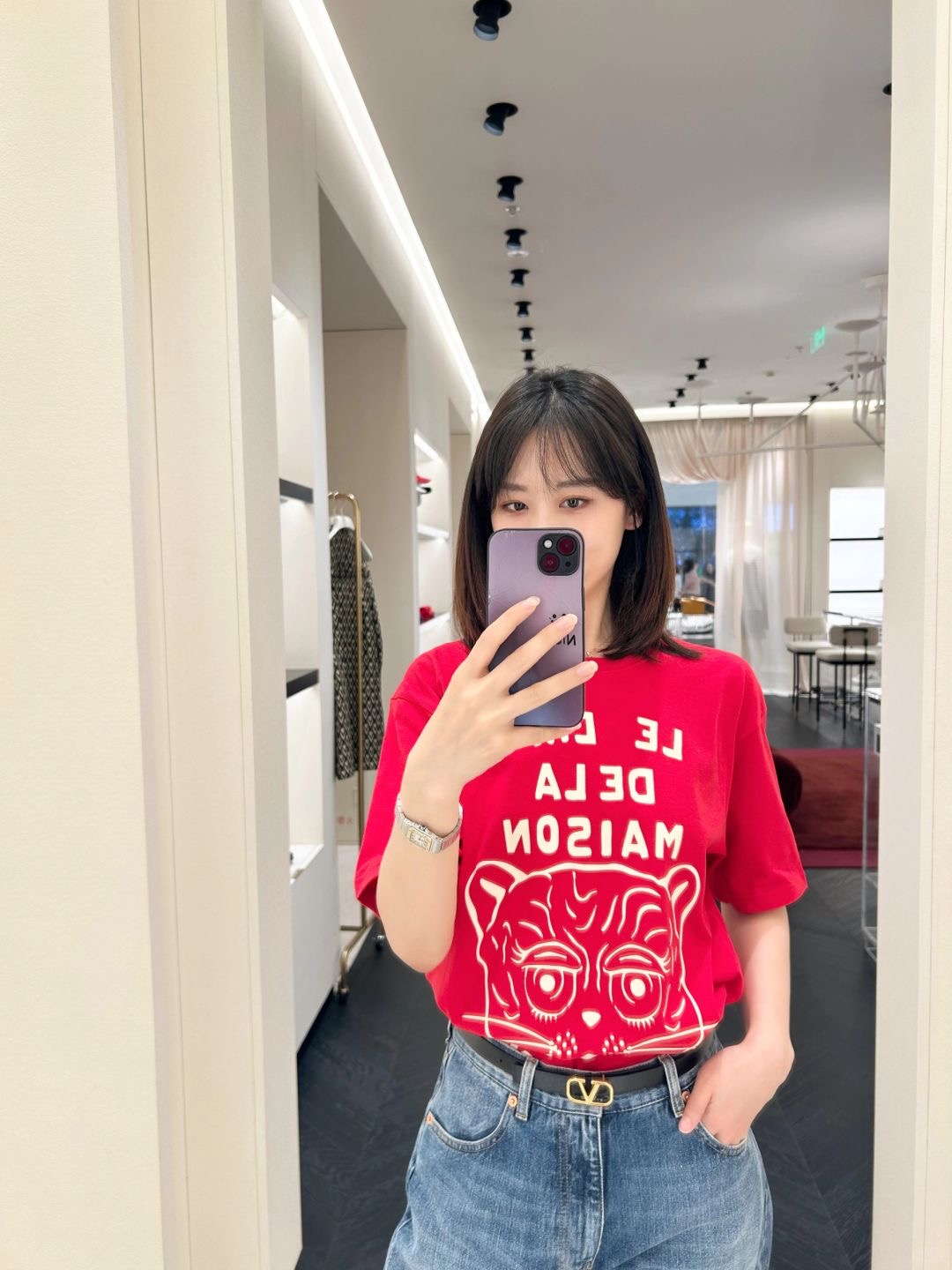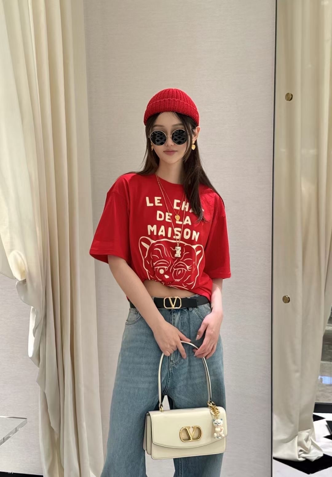 Valentino Cotton Graphic Tee - Red, Short Sleeve, Round Neck - S/M/L