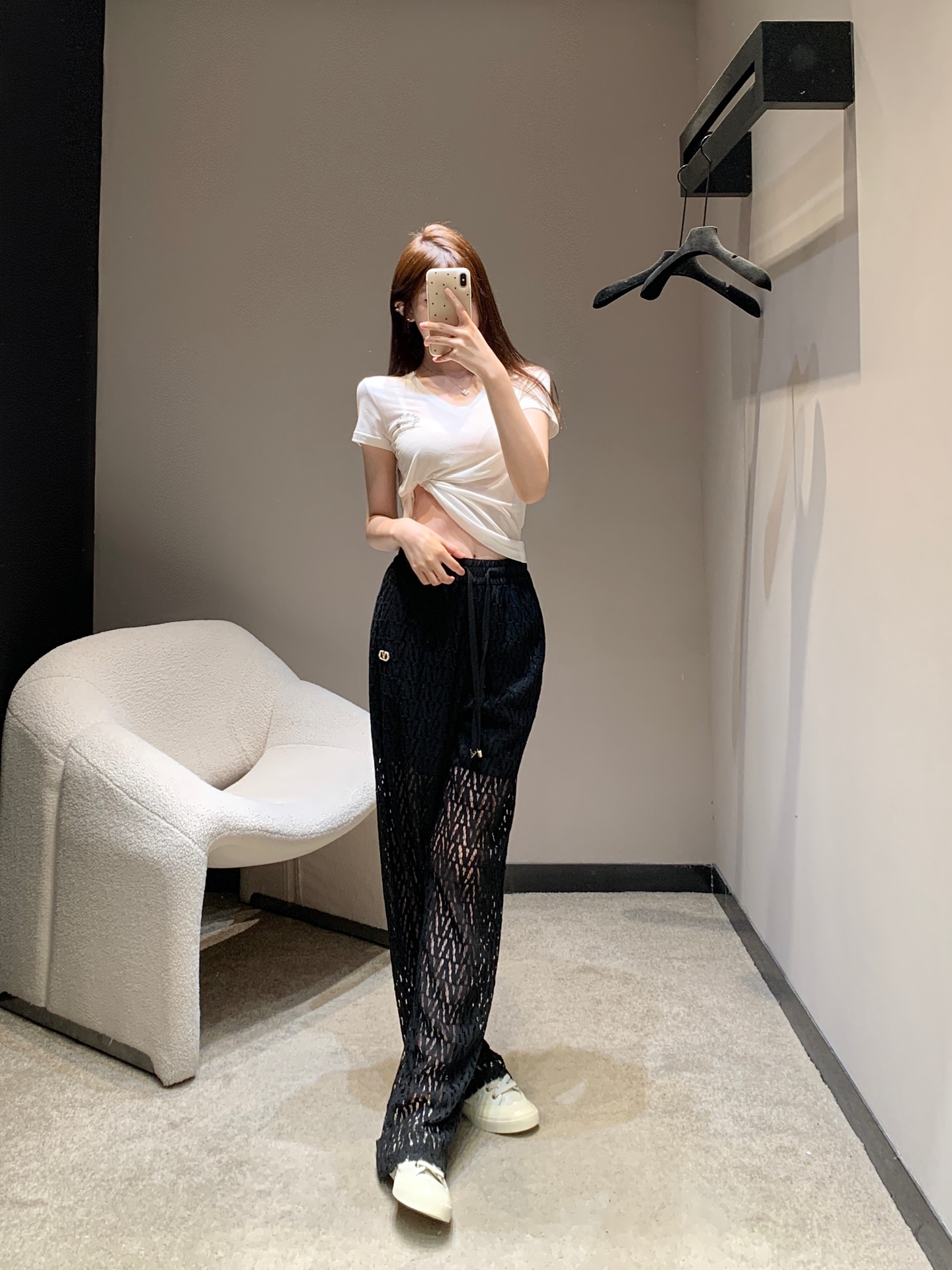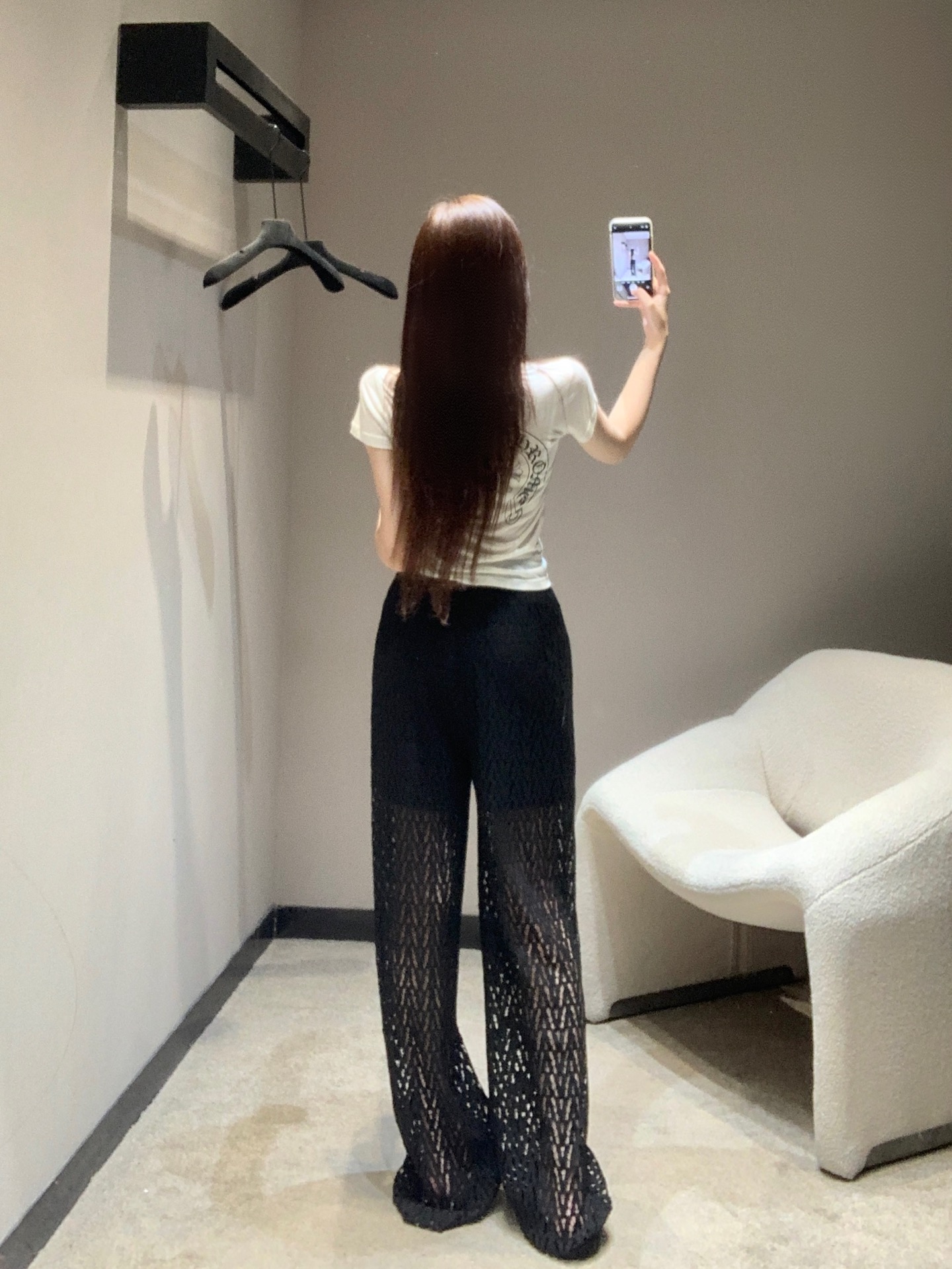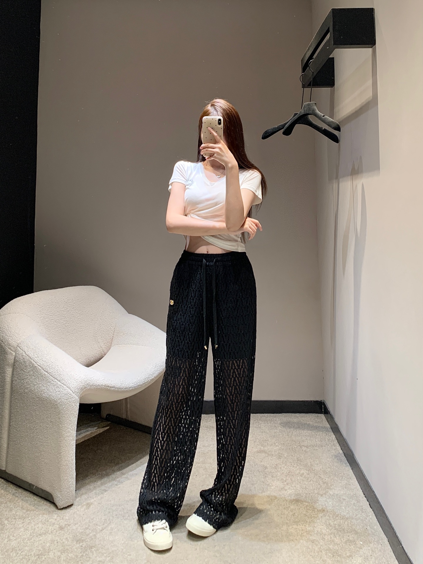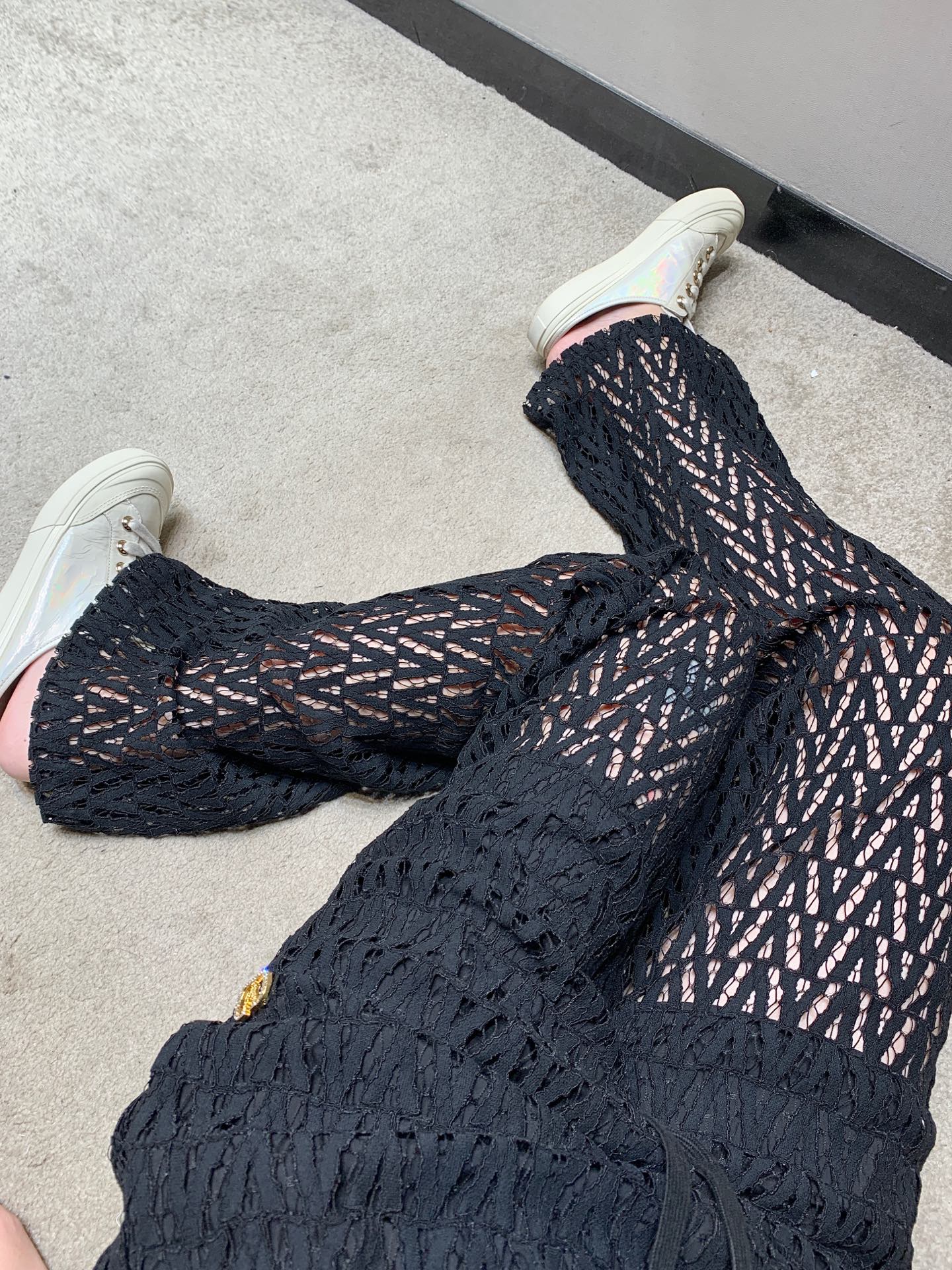 Elevate your style with these Valentino lace crochet pants. Feature a drawstring waist and a delicate, see-through design.