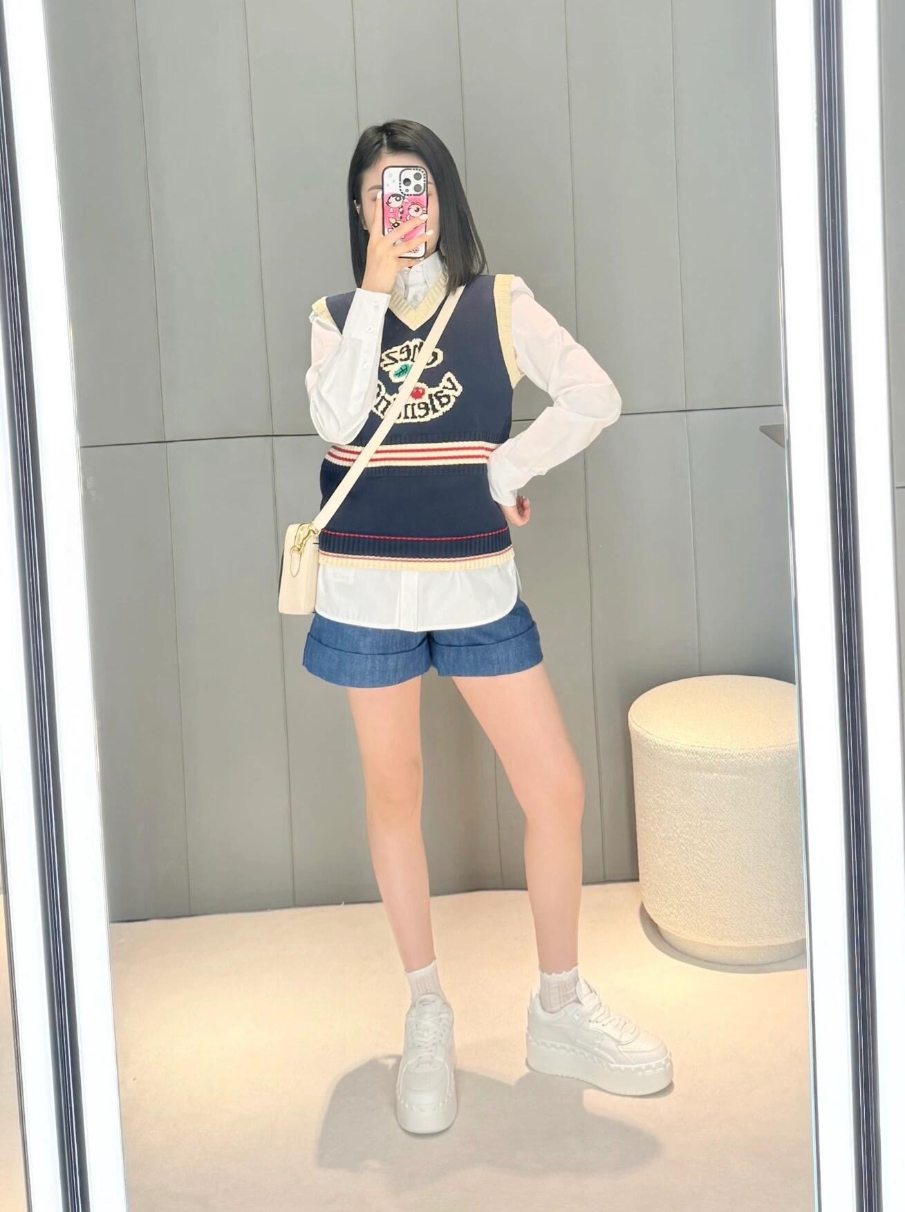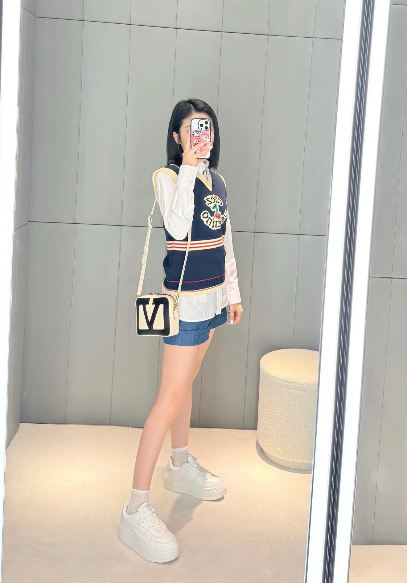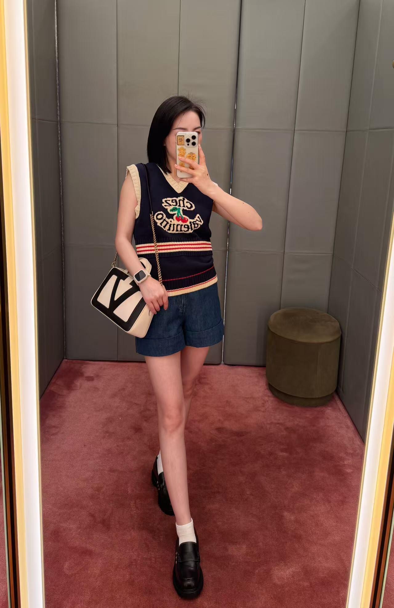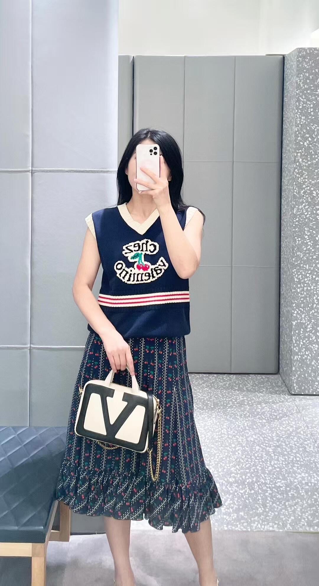 This Valentino V-neck sleeveless knit vest is a must-have for adding a touch of freshness to your summer style. The cherry and letter pattern on the chest adds a playful and fashionable element, while the soft knit fabric ensures a comfortable wearing experience.