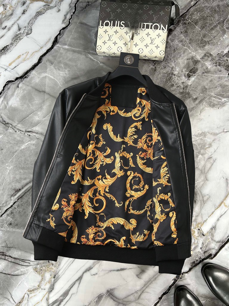 This Versace 2025 leather jacket represents the latest in casual fashion, blending innovative design with practical comfort.