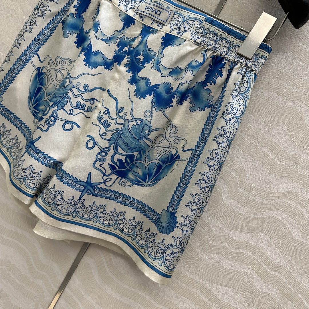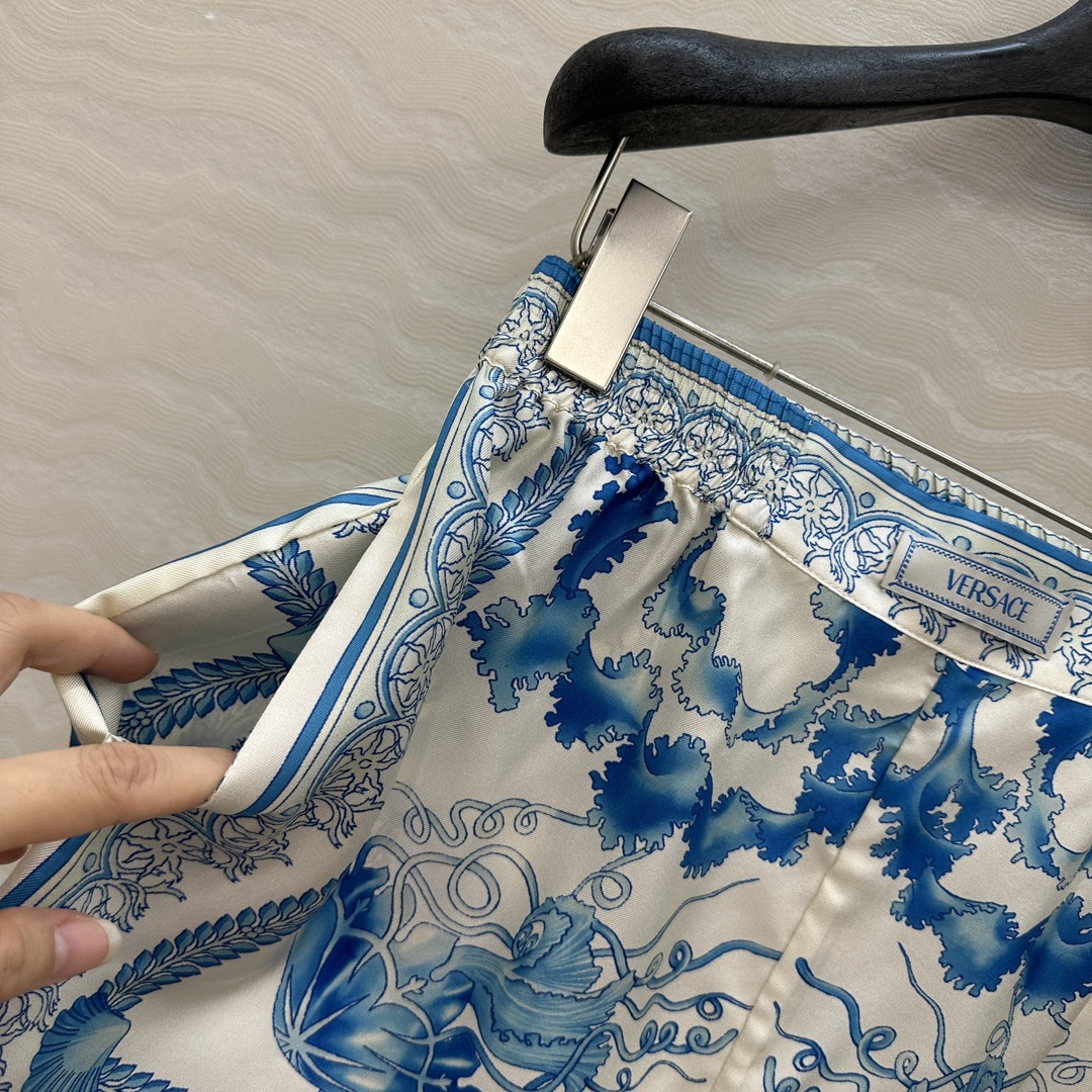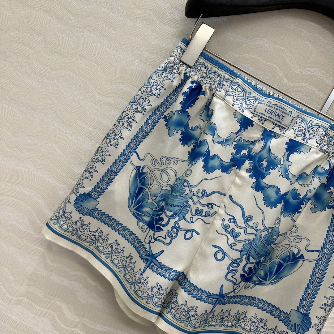 With their exquisite design and luxurious material, these Versace silk shorts are sure to become a favorite in your summer collection.