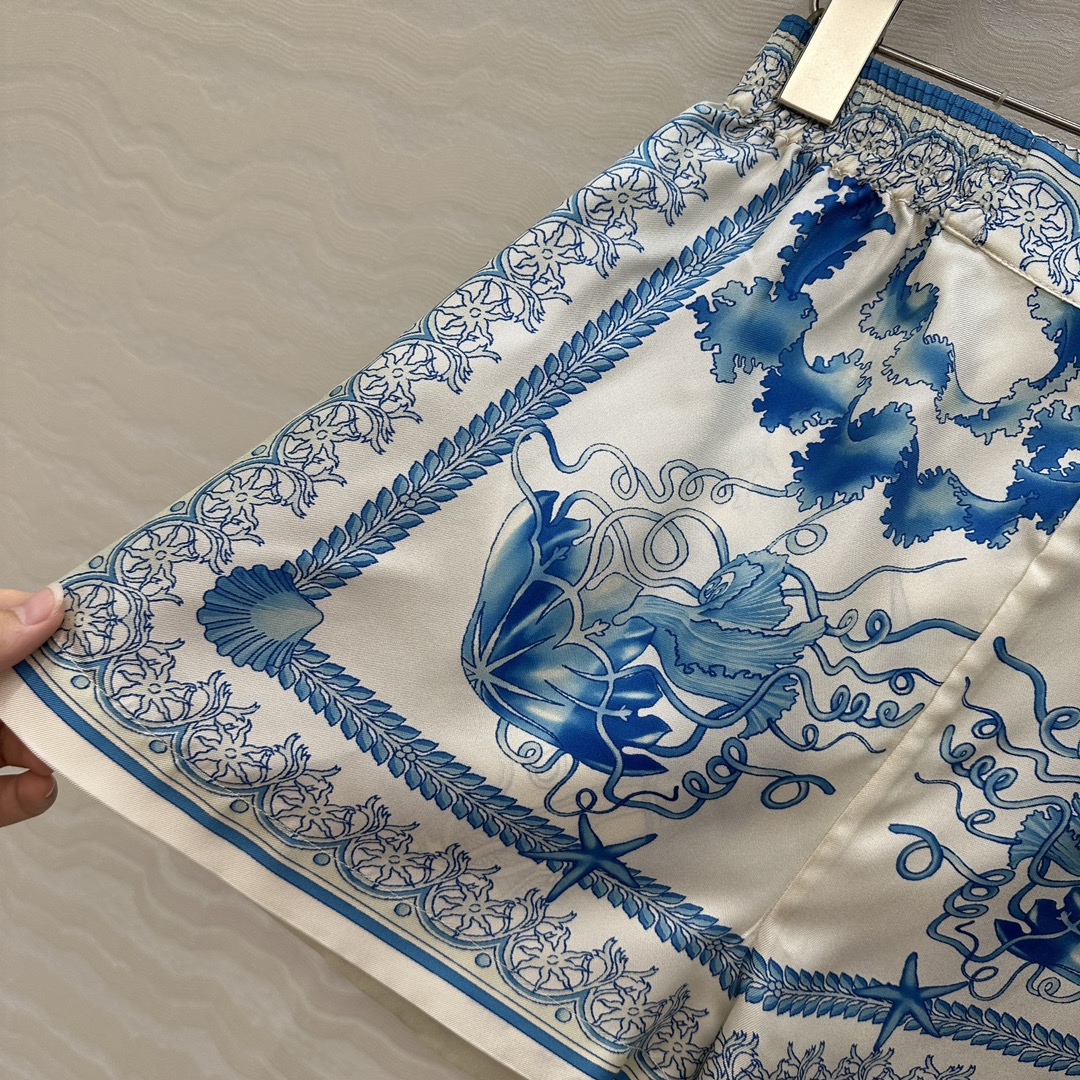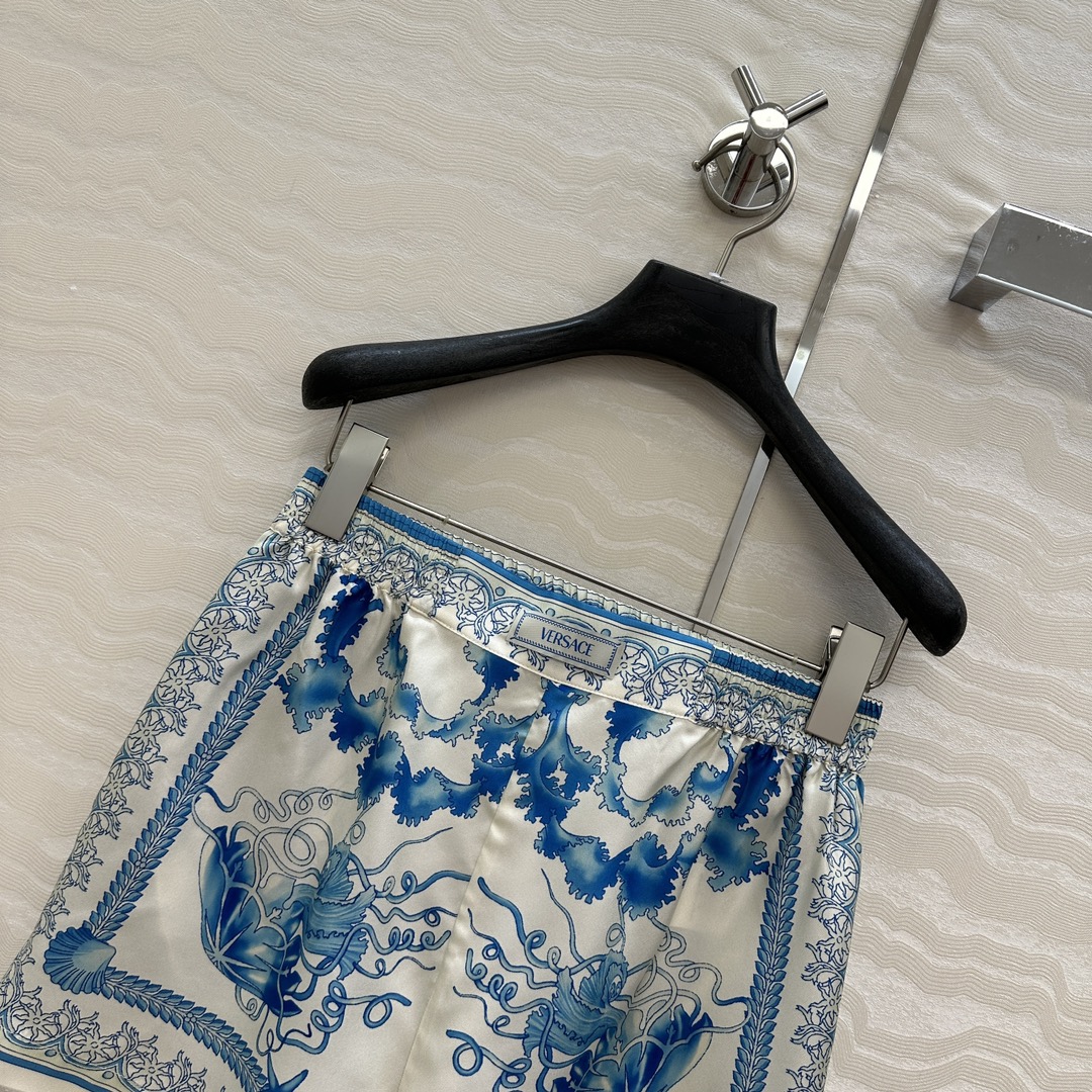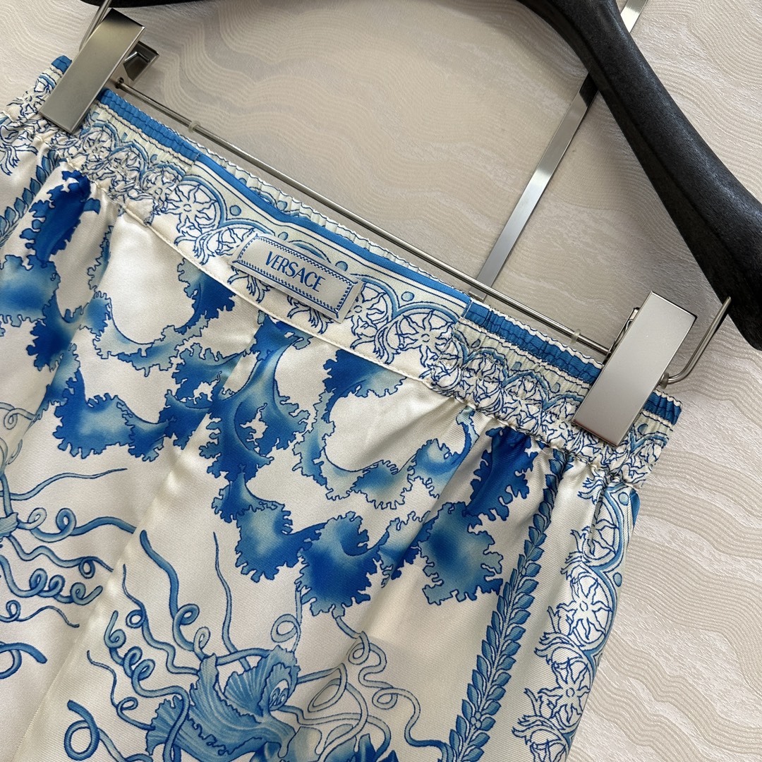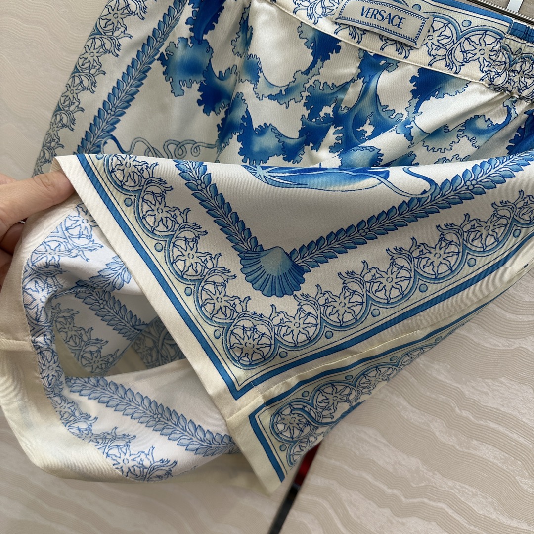 With their exquisite design and luxurious material, these Versace silk shorts are sure to become a favorite in your summer collection.