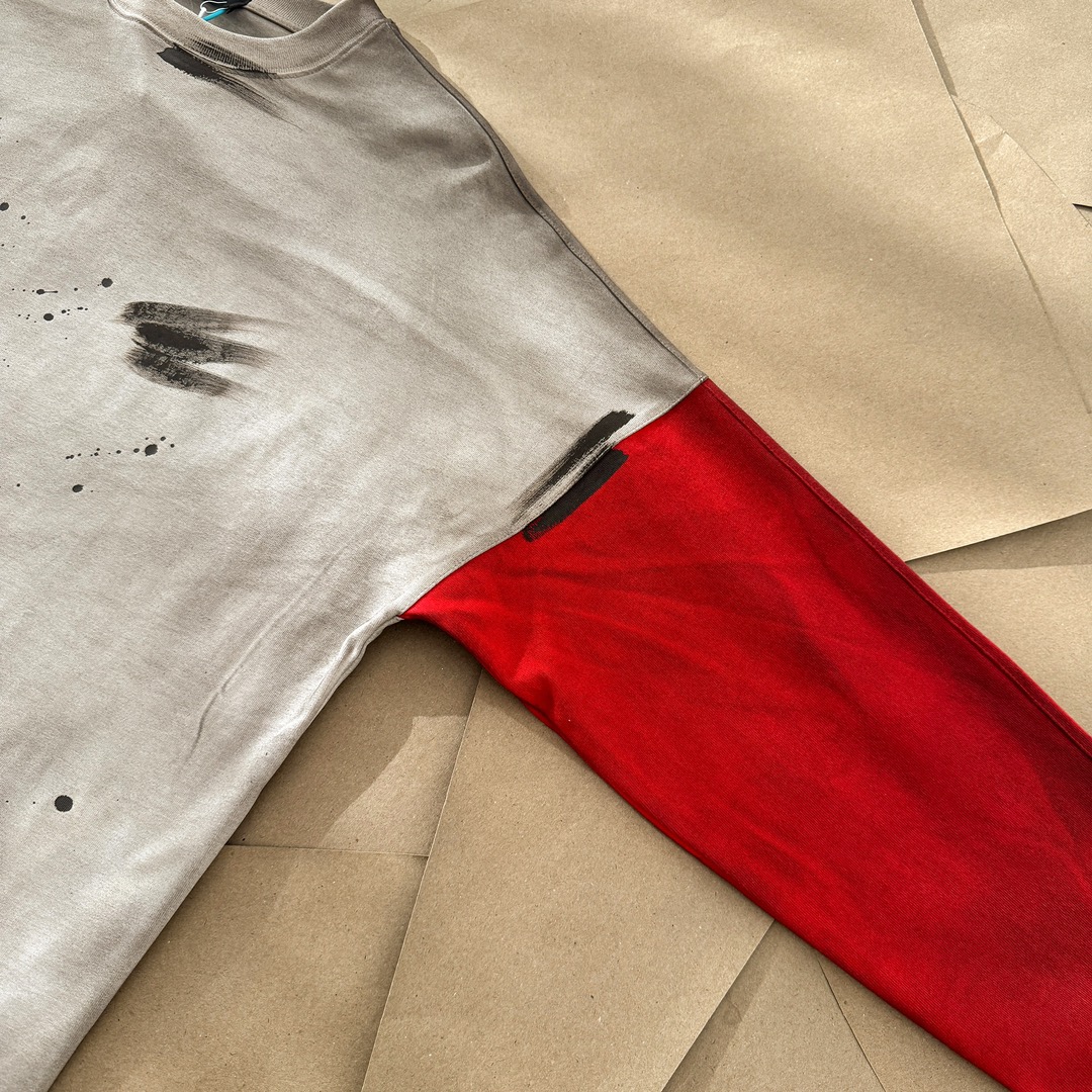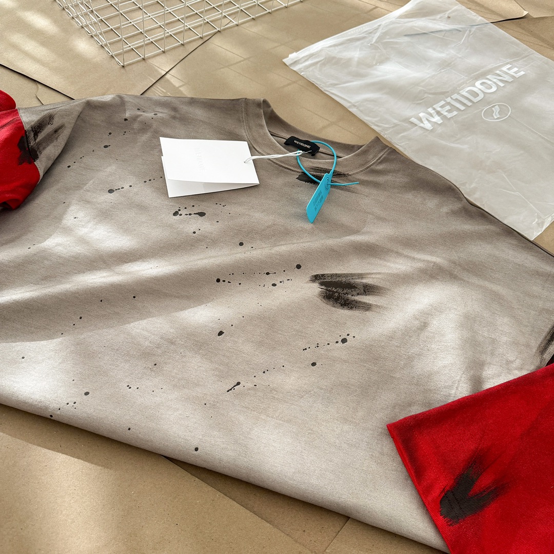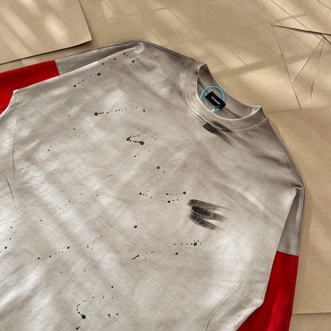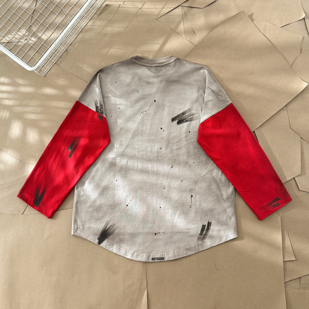 WE11DONE Color Block Long Sleeve T-Shirt Trendy Distressed Style