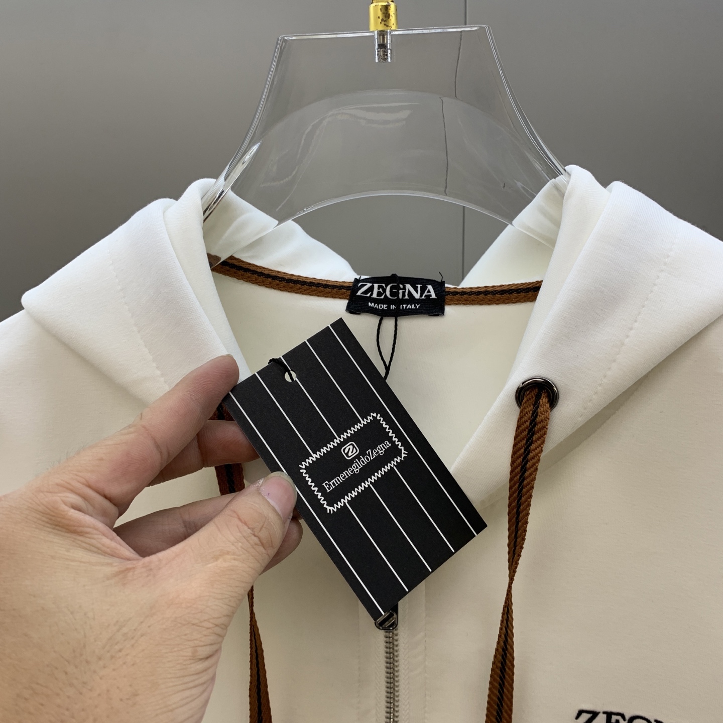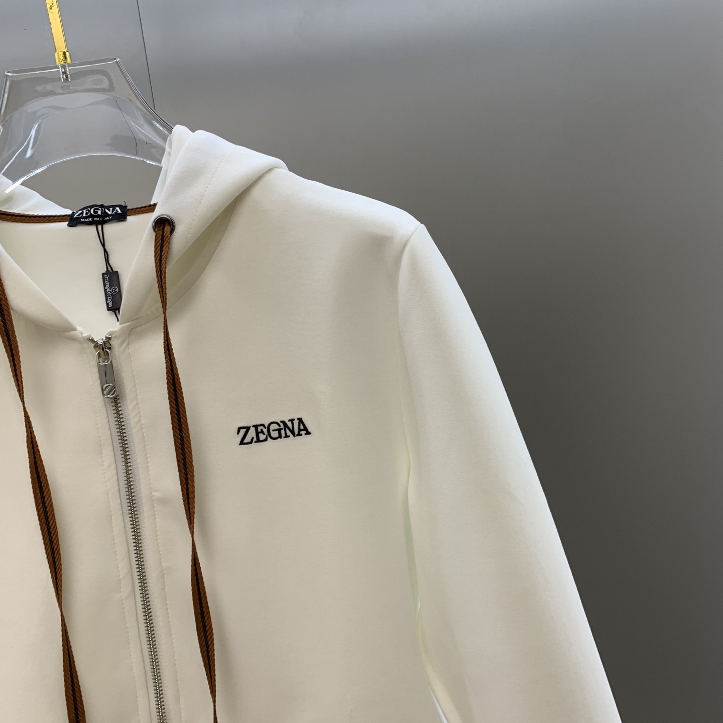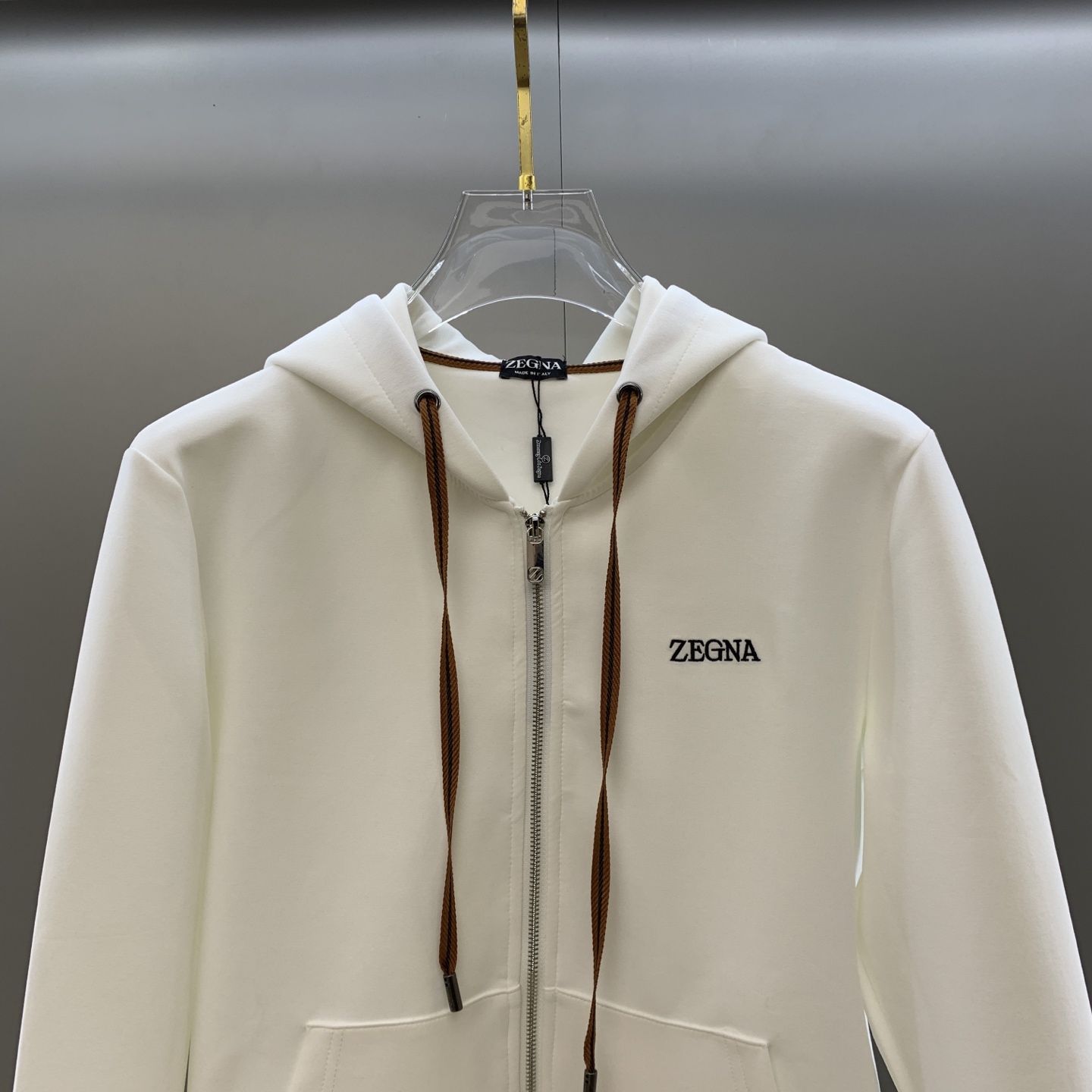 - Signature Zegna embroidered logo on both the hoodie and sweatpants.