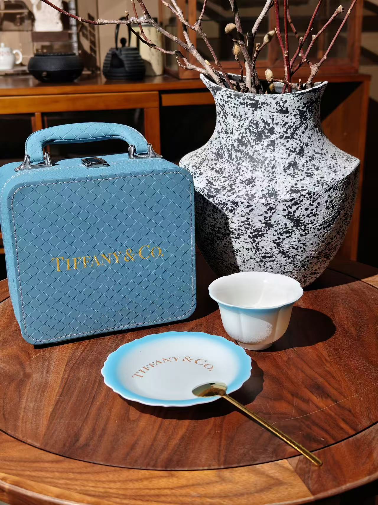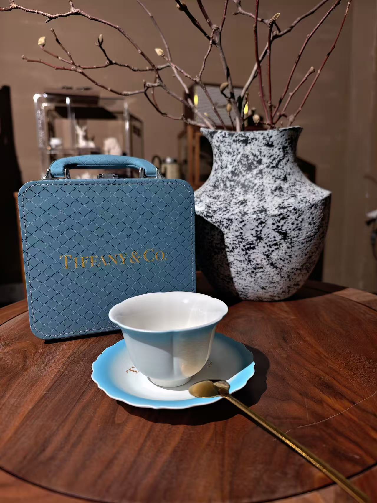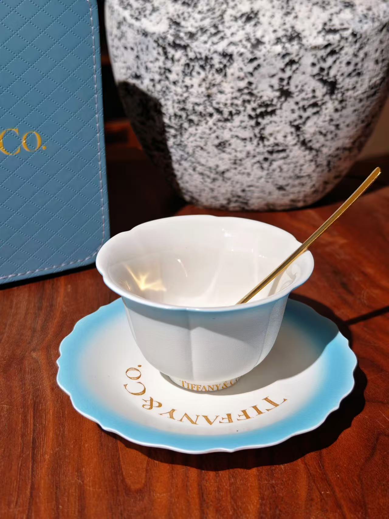 Enjoy elegance with this Tiffany & Co. teacup set. A porcelain cup with a delicate flower design. Perfect for adding a touch of luxury to your tea time.