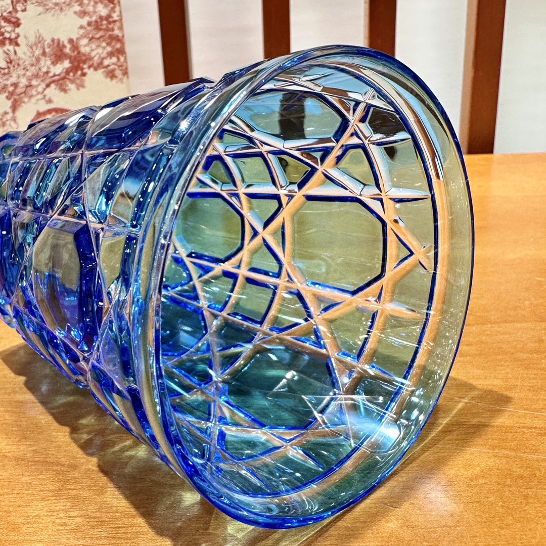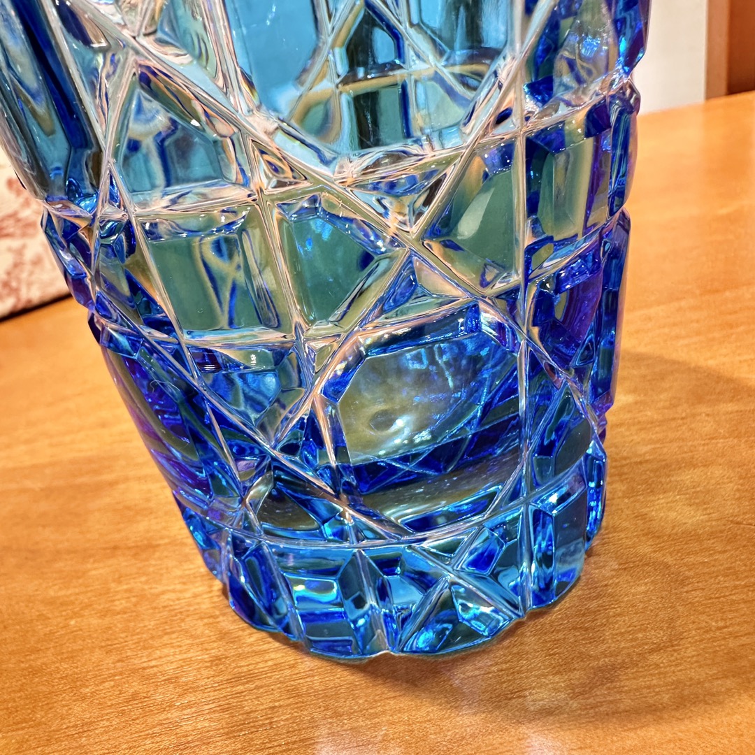 Exquisite Di*or x Baccarat crystal glass featuring a lake blue diamond design. Crafted from imported Czech crystal with hand-cut classic rhombus patterns.