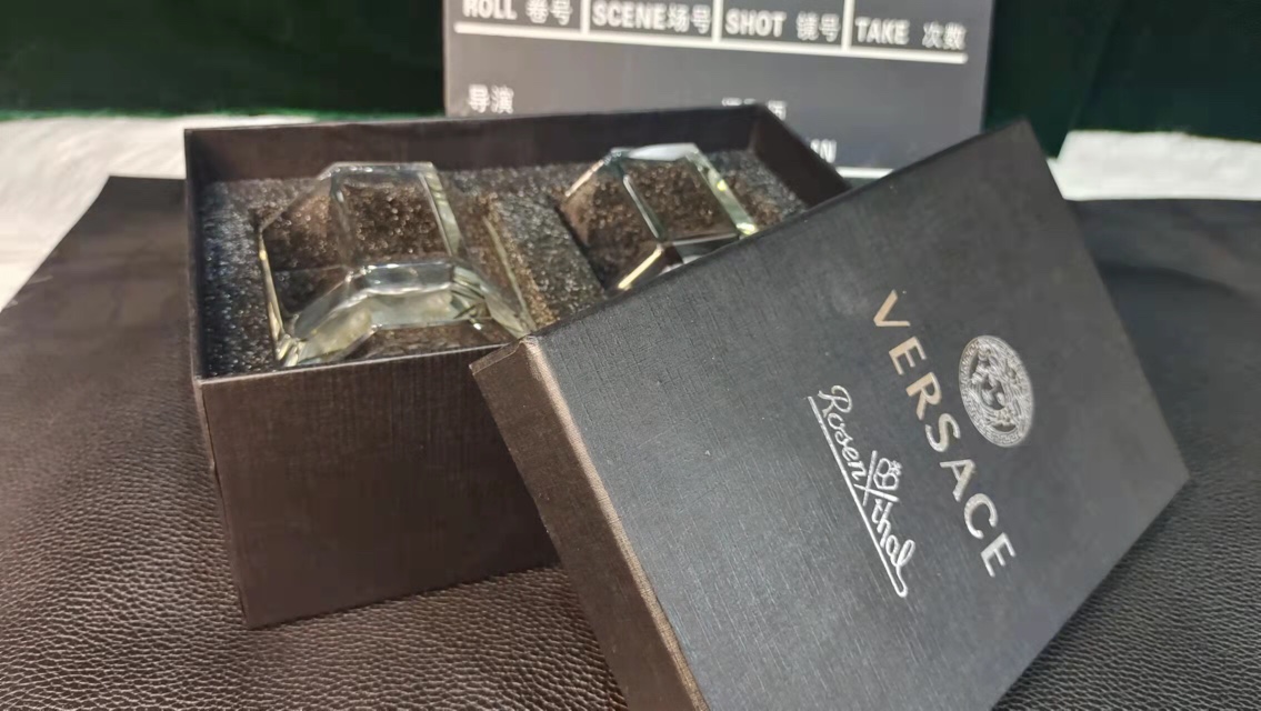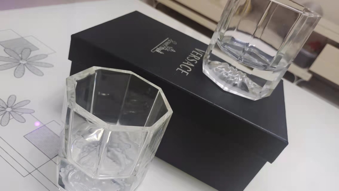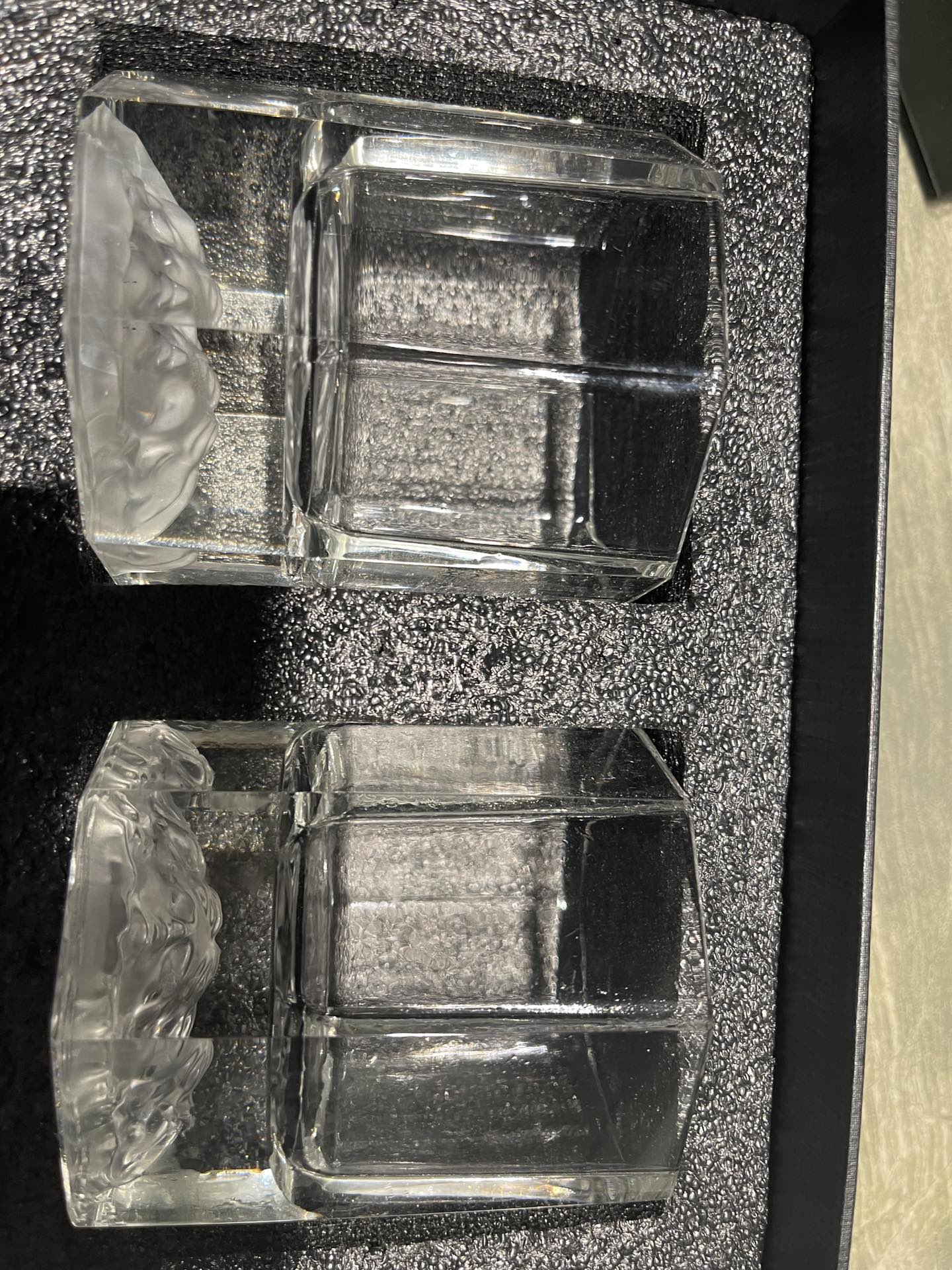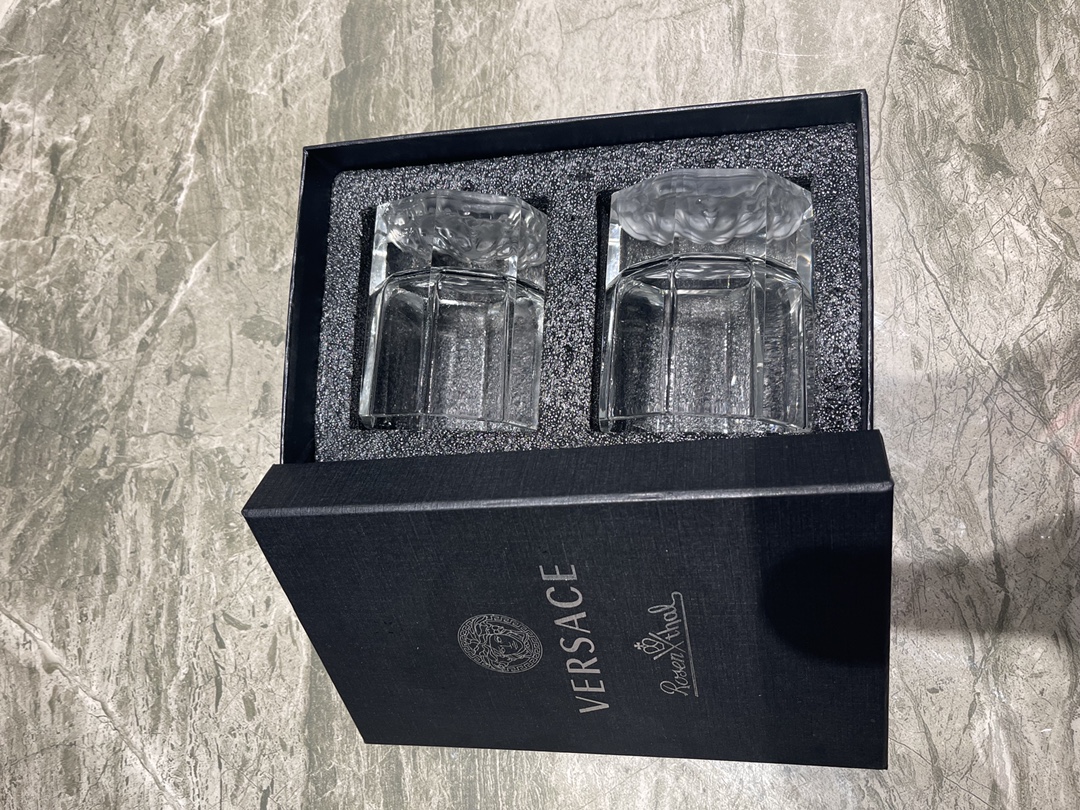 Experience elegance with Versace Rosenthal crystal whiskey glasses. Perfect for adding a touch of luxury to any occasion. Ideal gift set.
