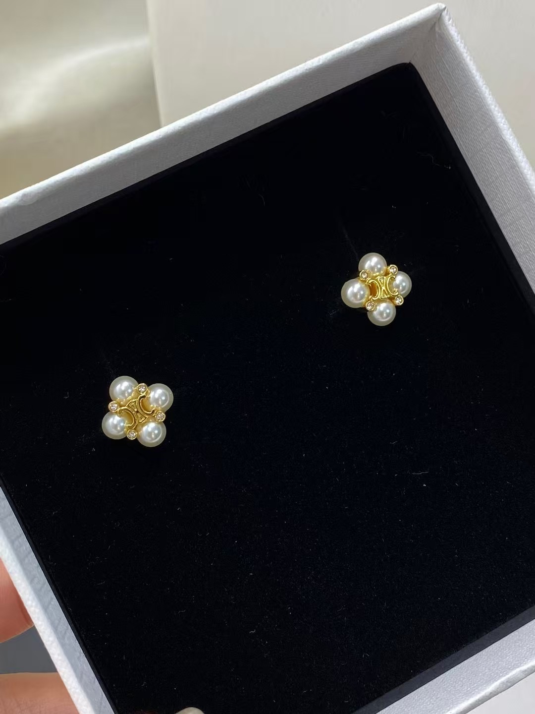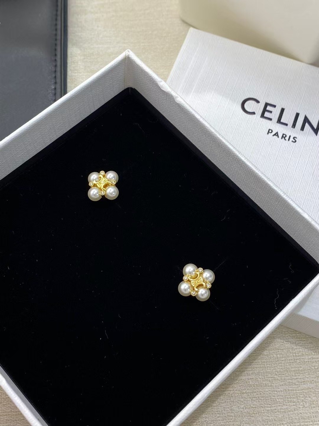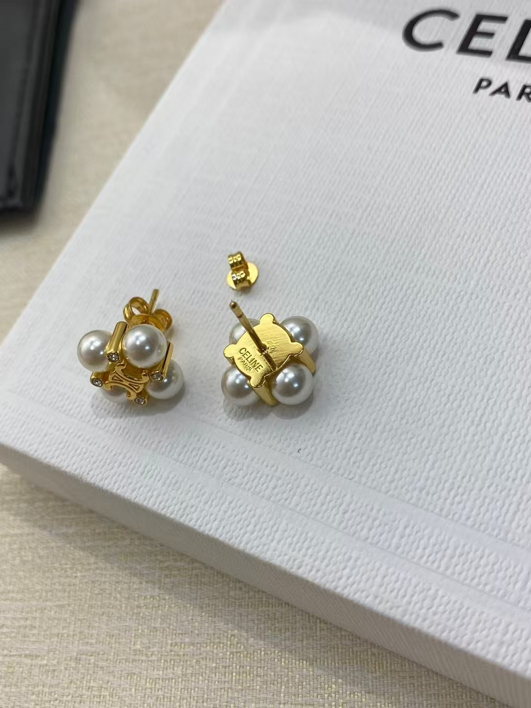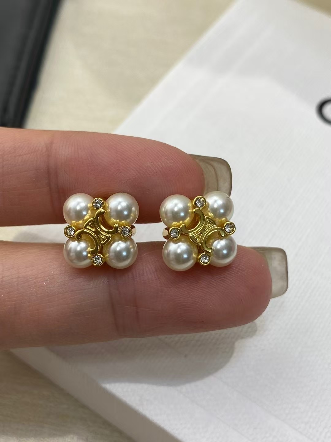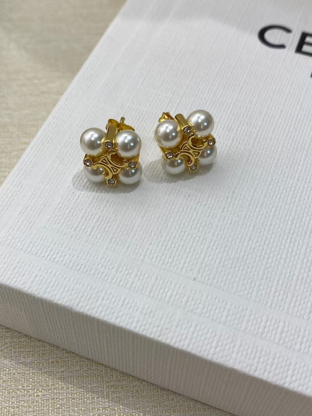 Celine Triomphe Pearl Earrings Gold Finish Fashion Jewelry for Women