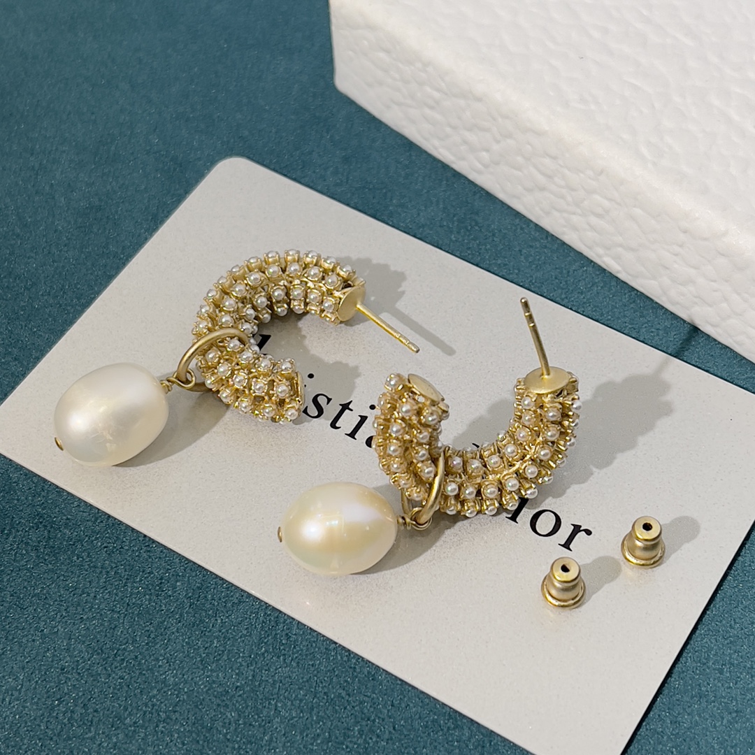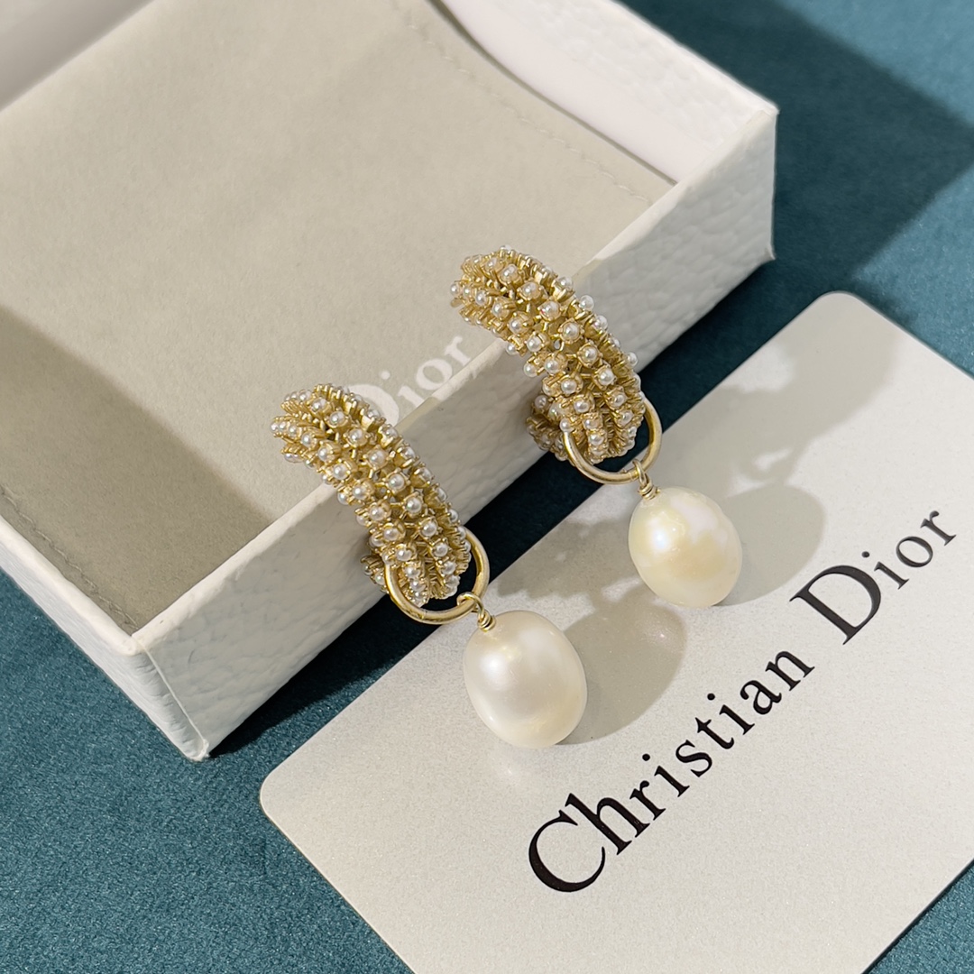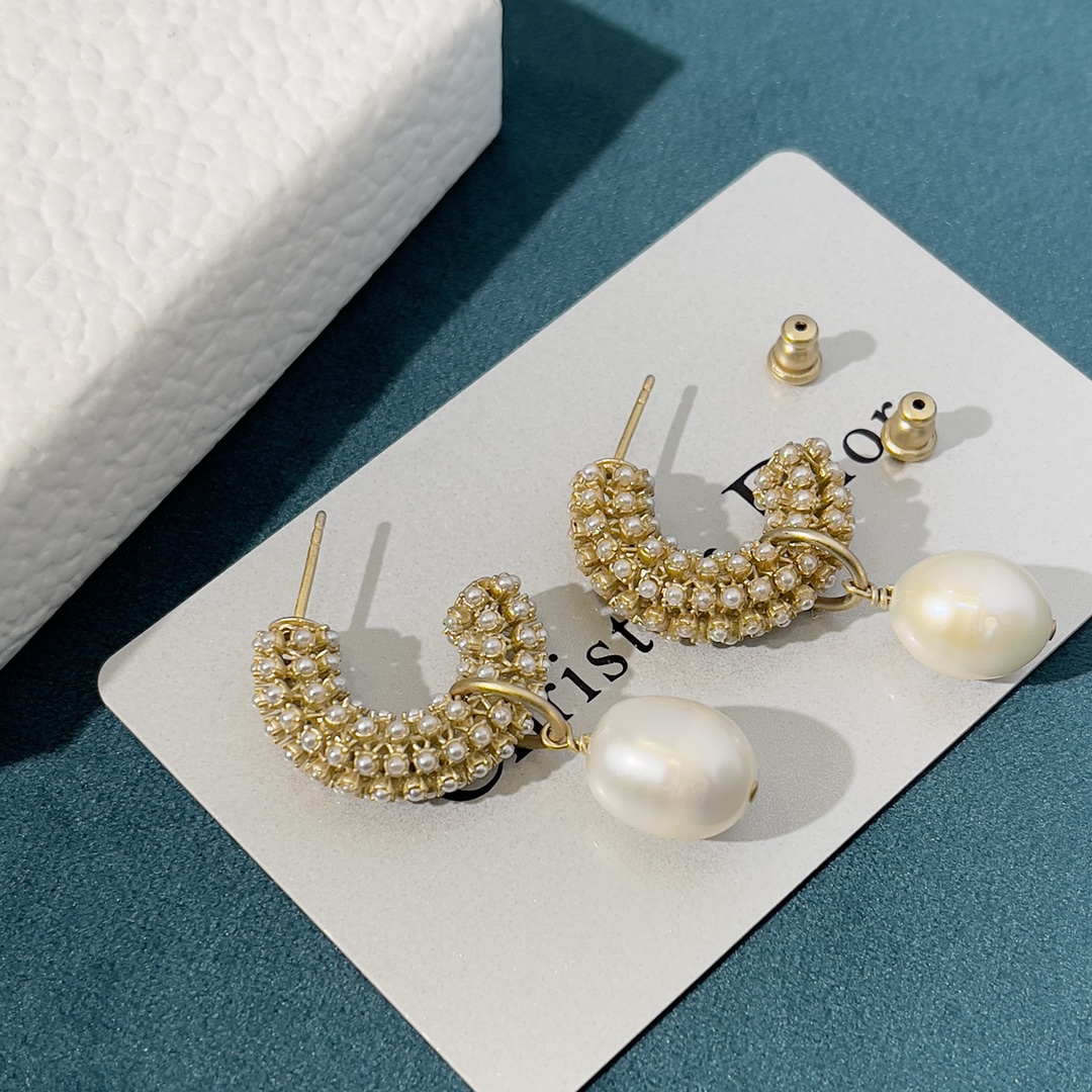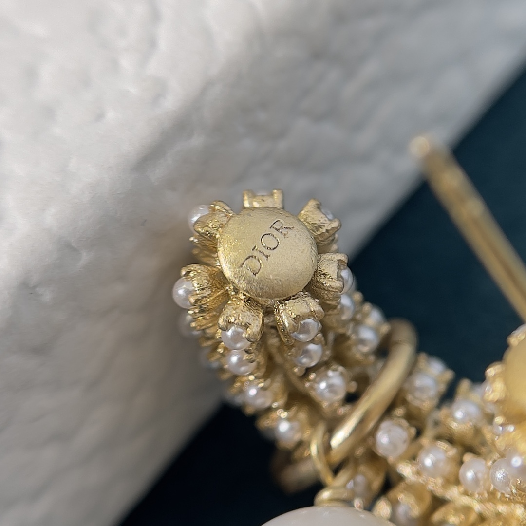 Dior D-Renaissance Earrings Gold-Finish Metal and White Resin Pearls