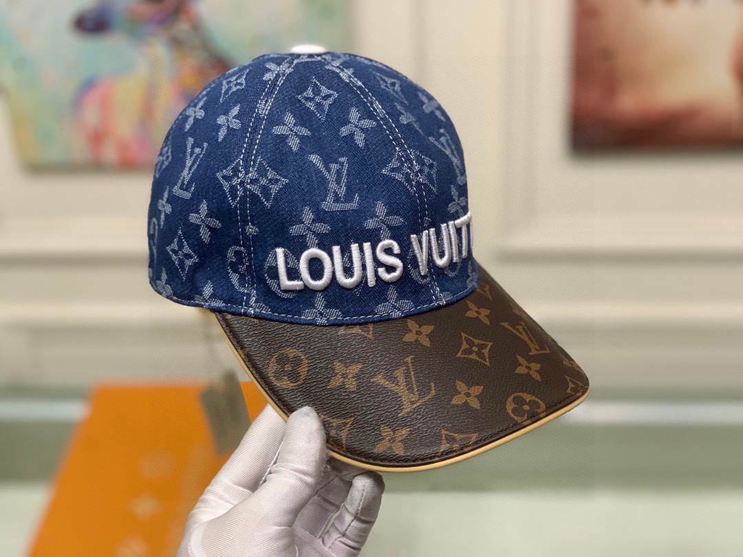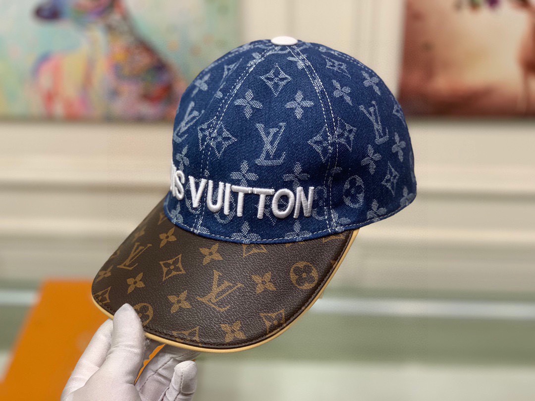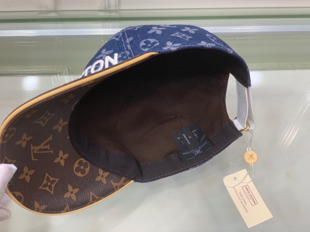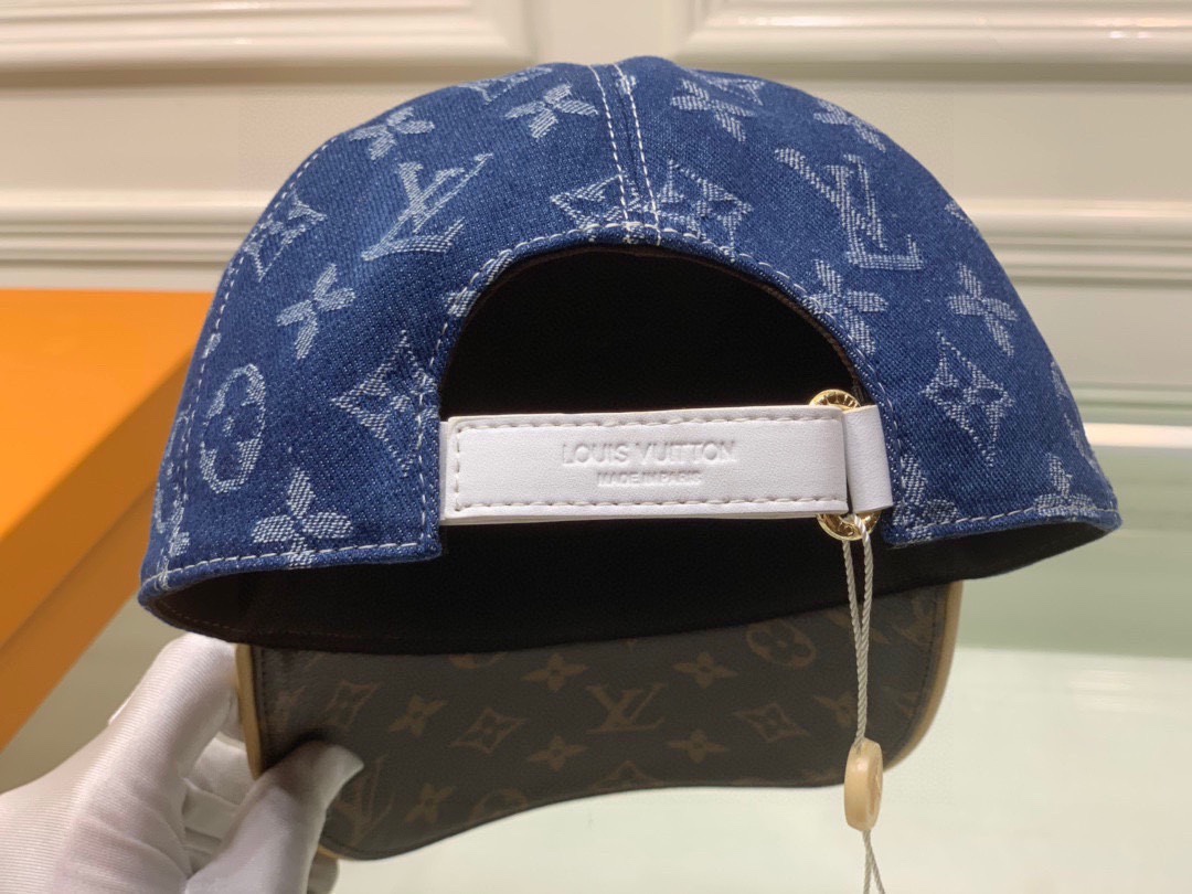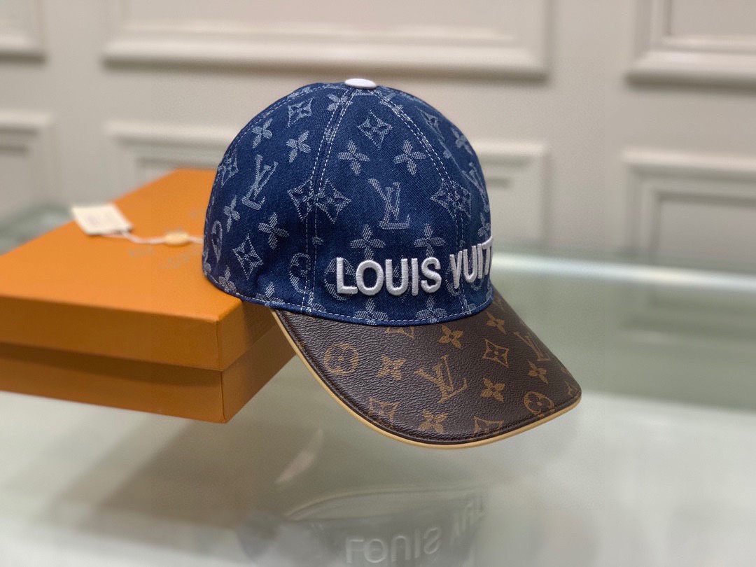 Louis Vuitton Denim Baseball Cap with Logo Embroidery and Leather Brim