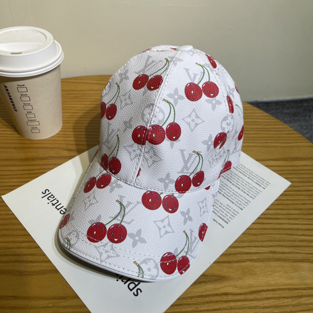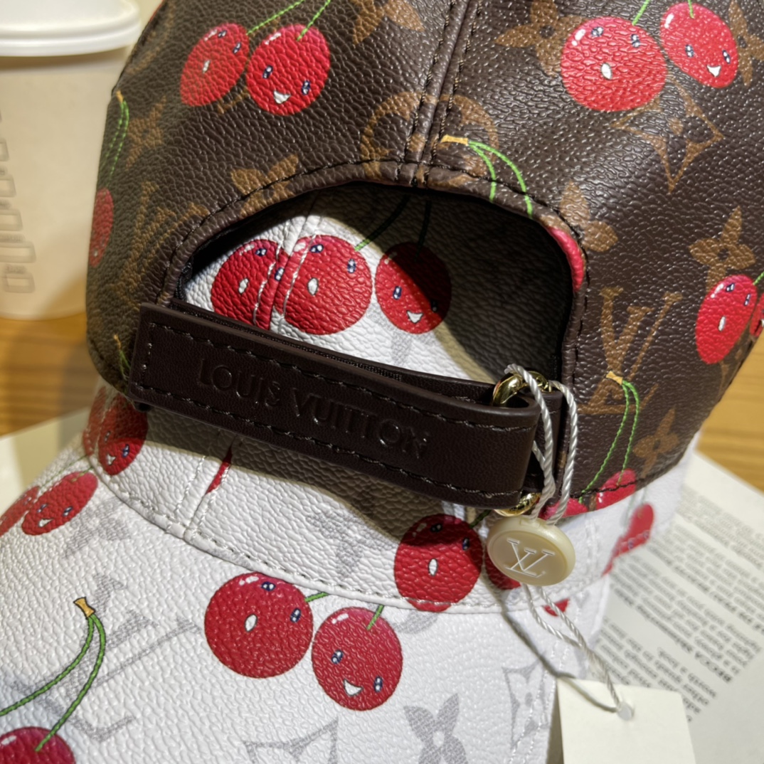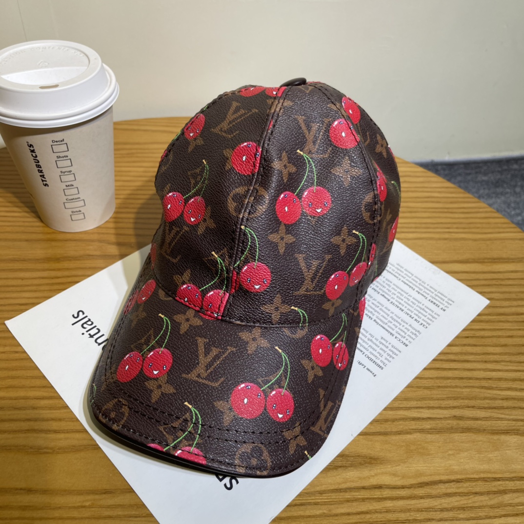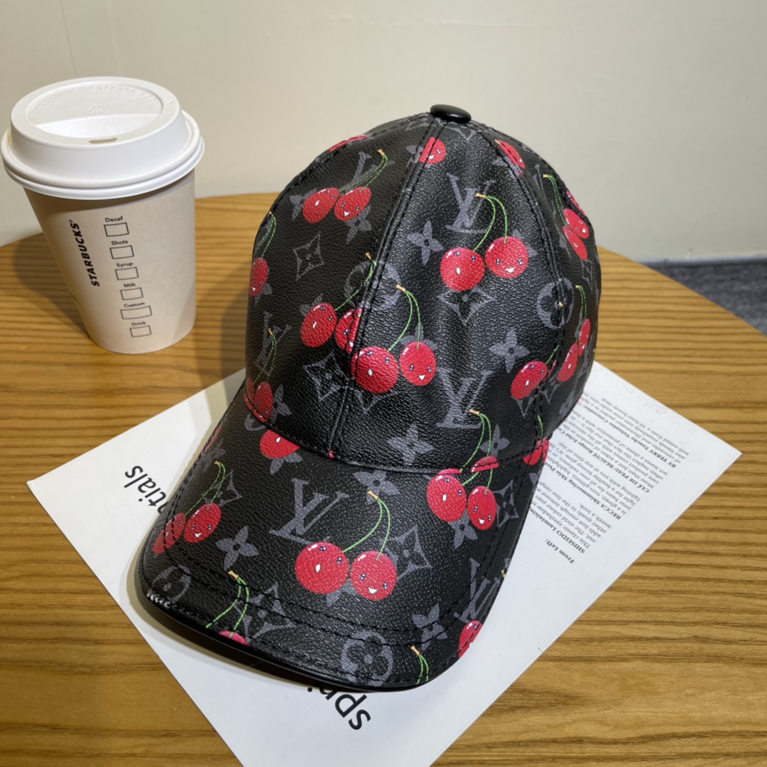 Louis Vuitton Leather Baseball Cap with Cherry Print - Stylish & Trendy
