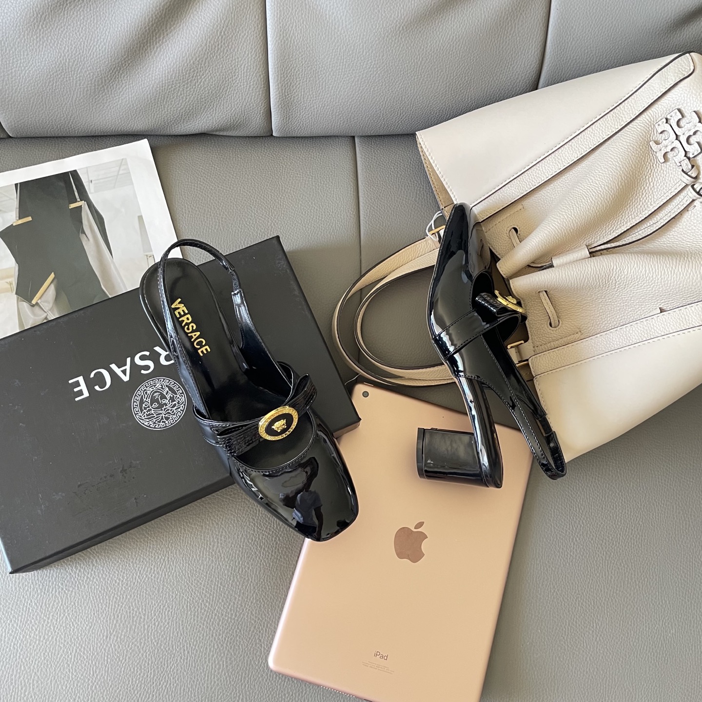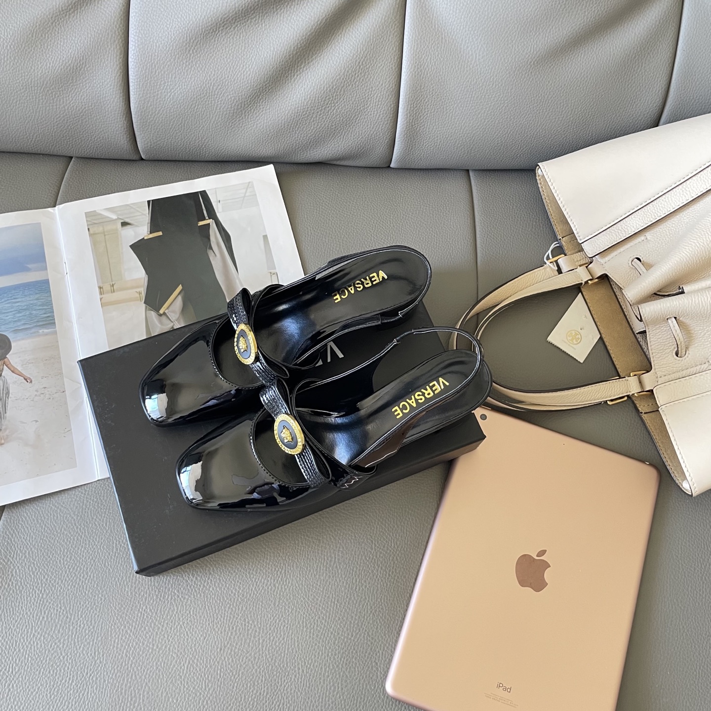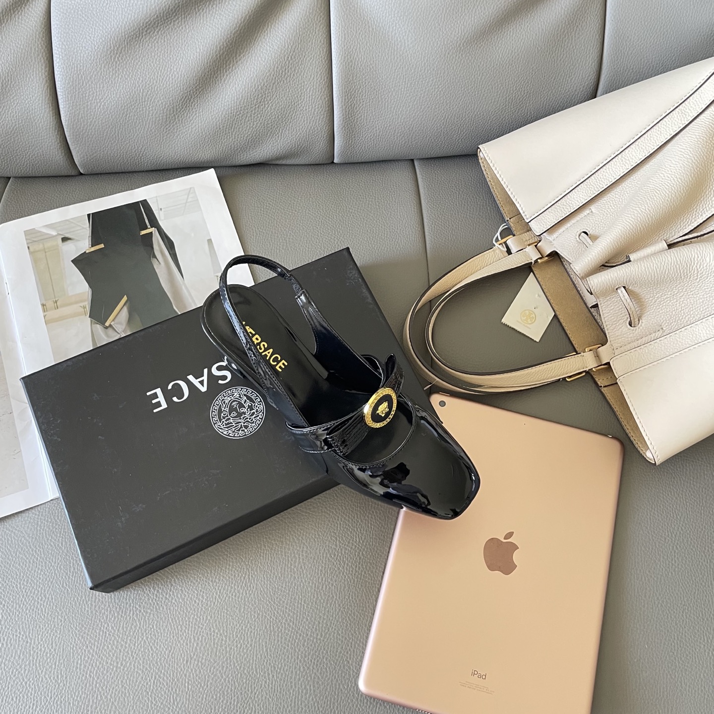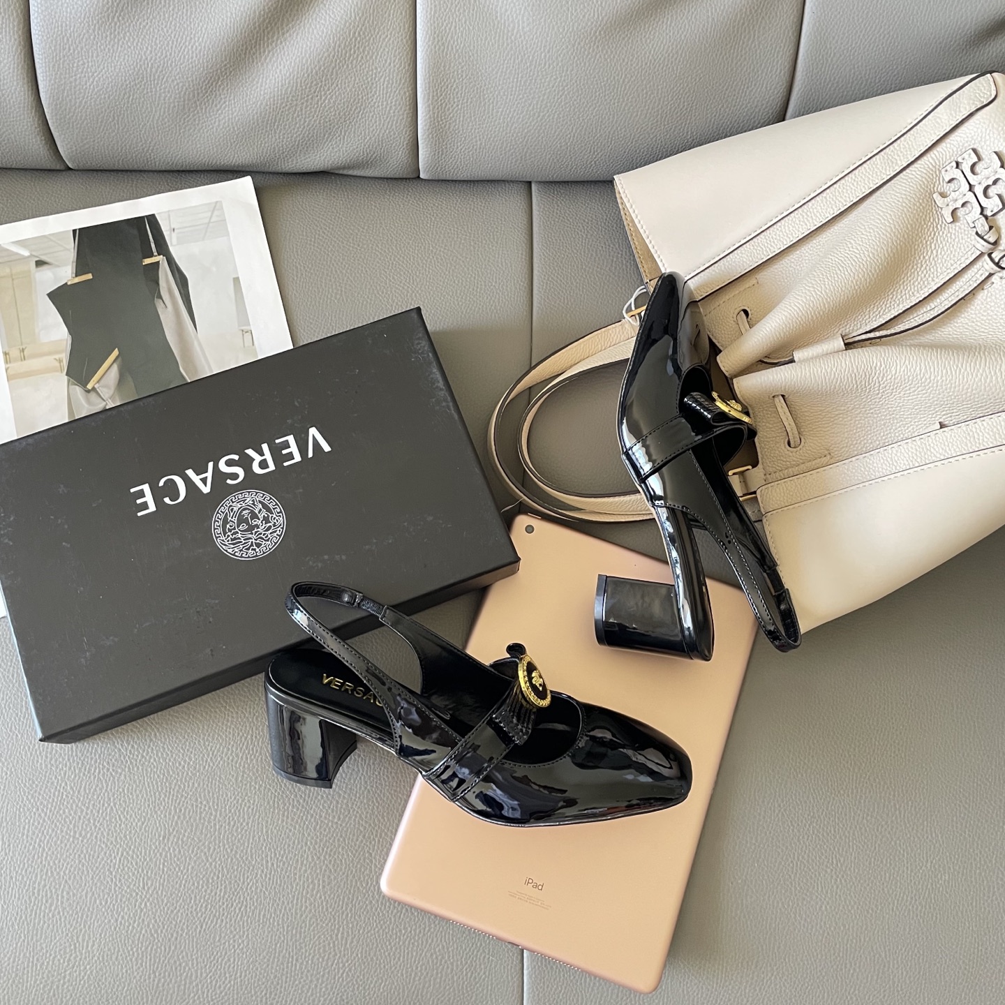 Elevate your footwear collection with these stunning Versace Mary Jane slingback heels. Designed with meticulous attention to detail, these heels are a perfect blend of classic style and modern sophistication.