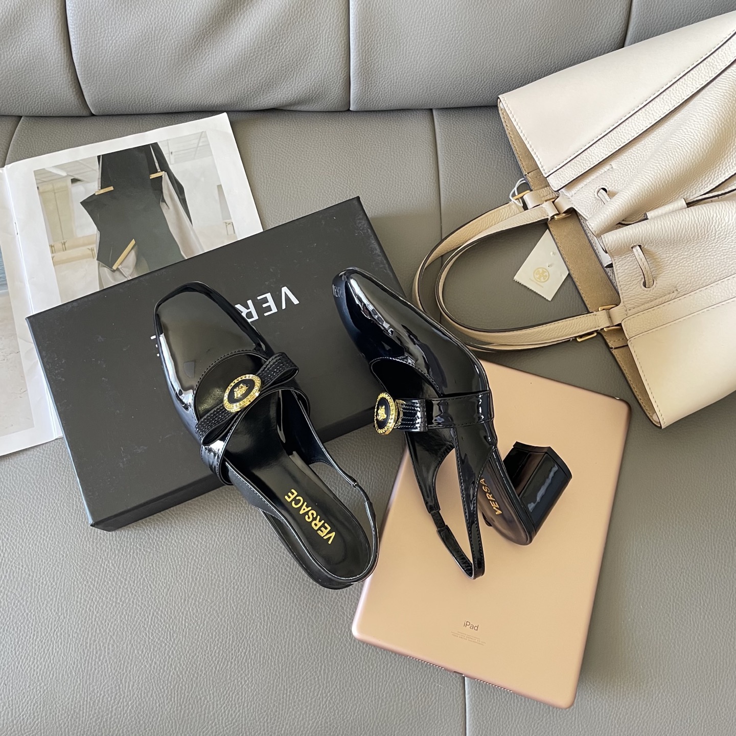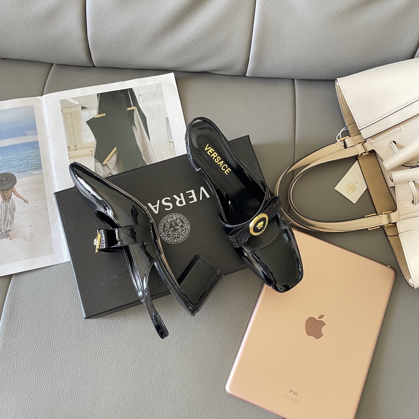 Versace Women's Black Patent Leather Mary Jane Slingback Heels