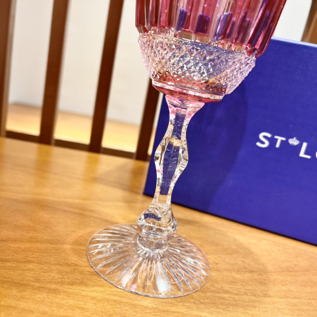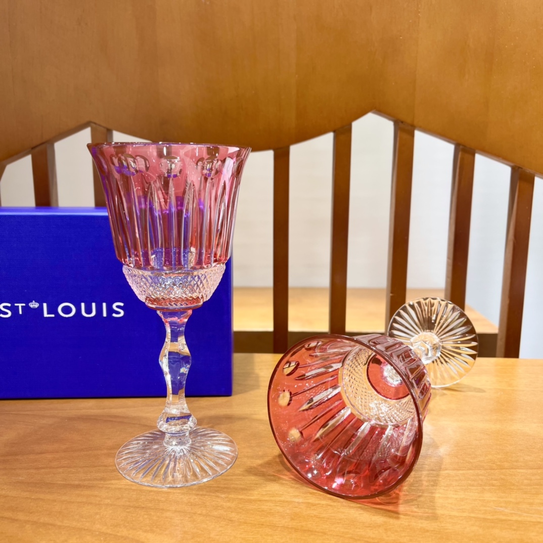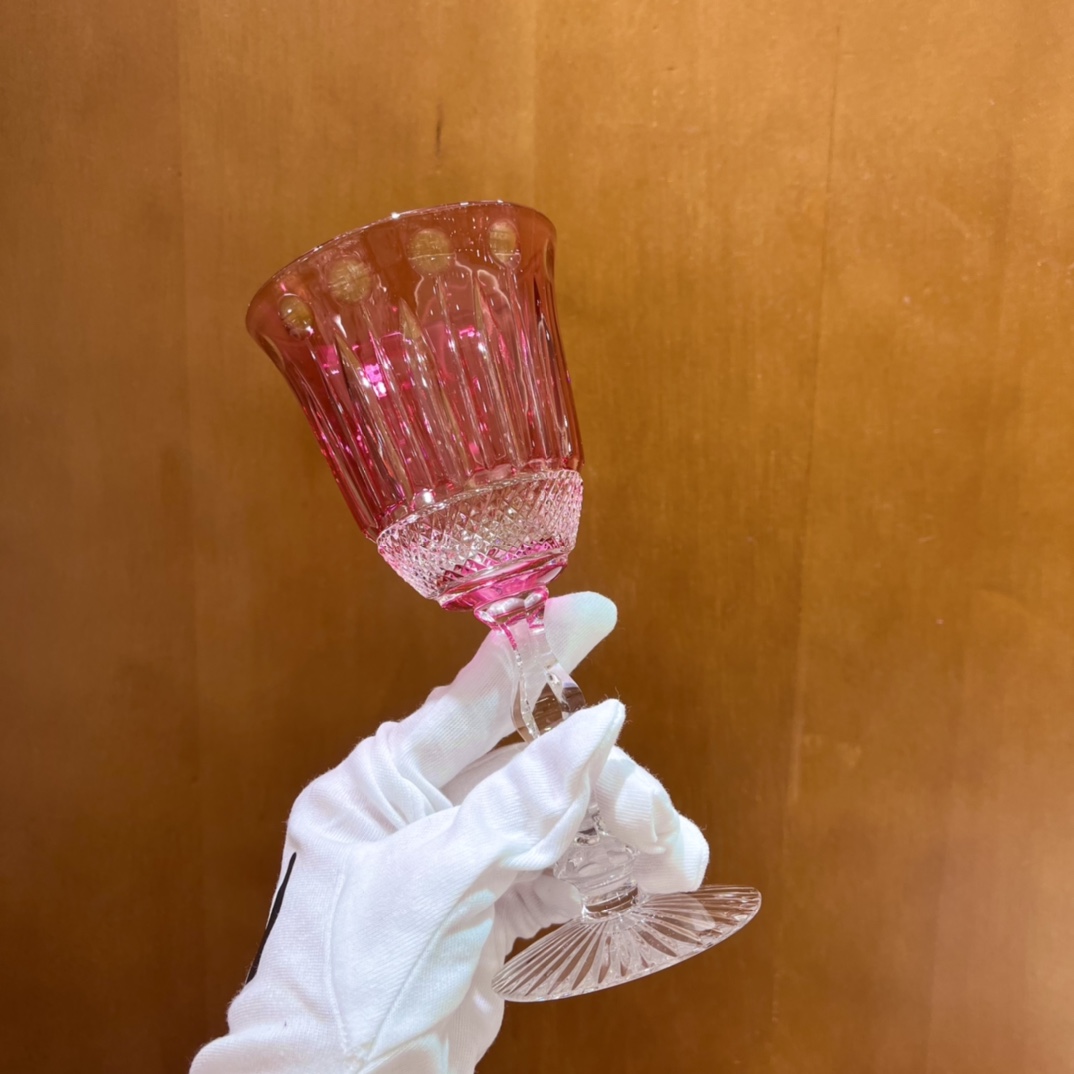 Saint Louis Tommy Pink Crystal Wine Glass, Handmade French Art Glass