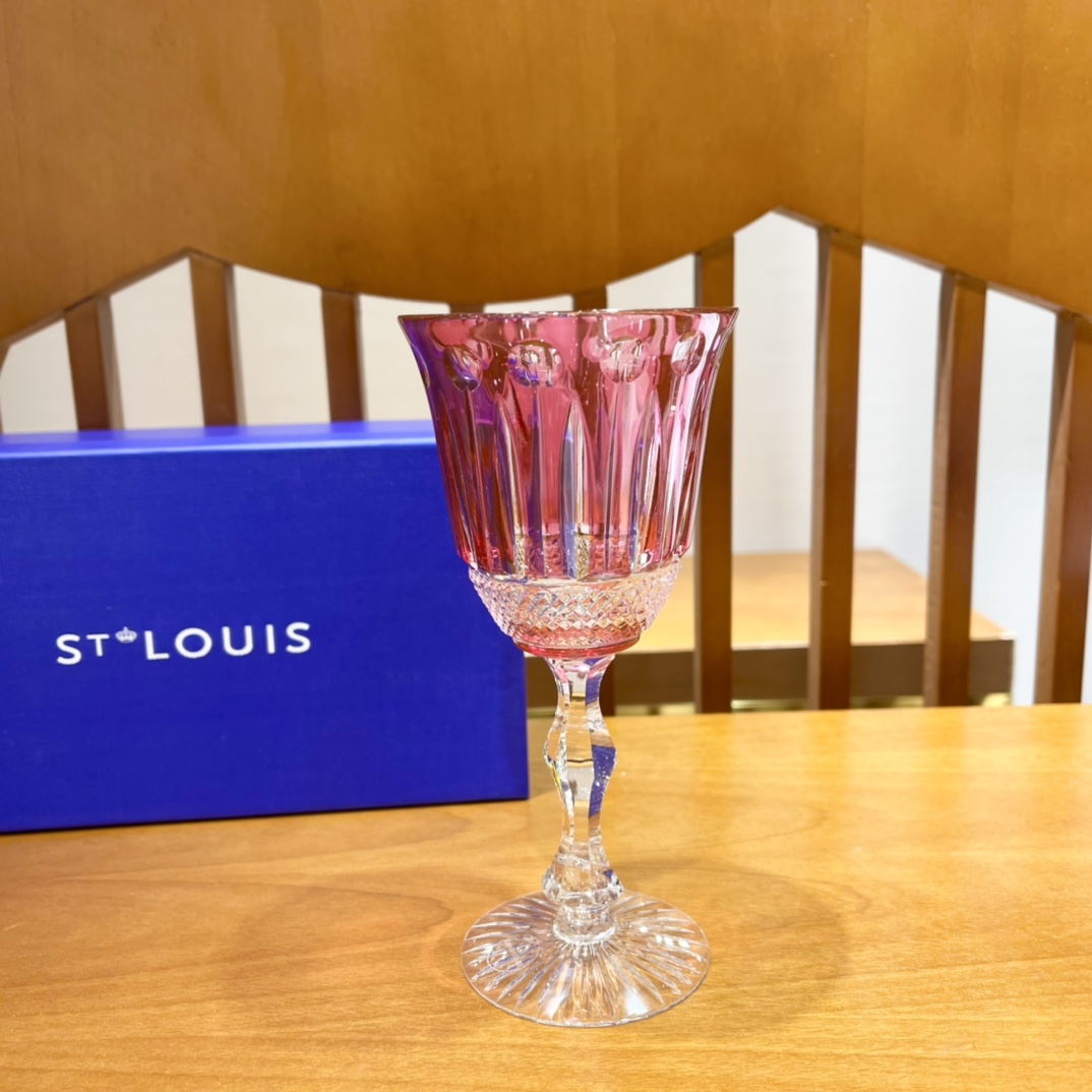Elevate your wine experience with this exquisite Saint Louis Tommy wine glass. Handcrafted in France, it features stunning pink crystal and intricate detailing. A true work of art!