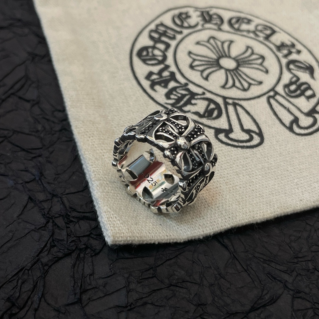 Chrome Hearts Classic Sterling Silver Cross Ring, Retro Style