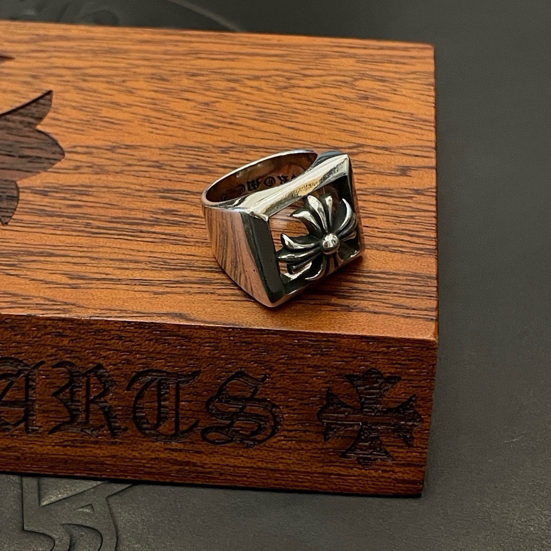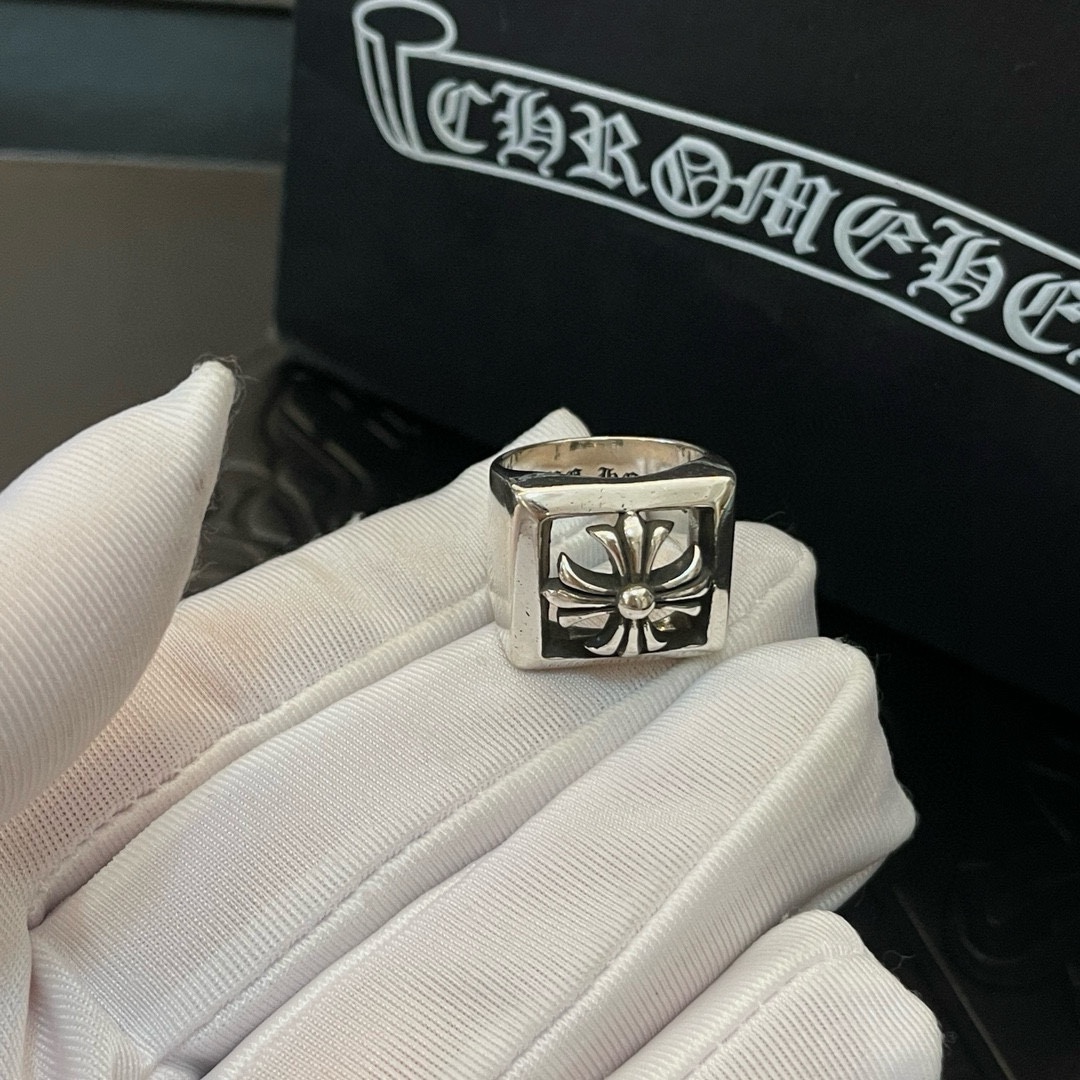 Chrome Hearts Silver Classic Retro Cross Ring, Unisex Fine Jewelry