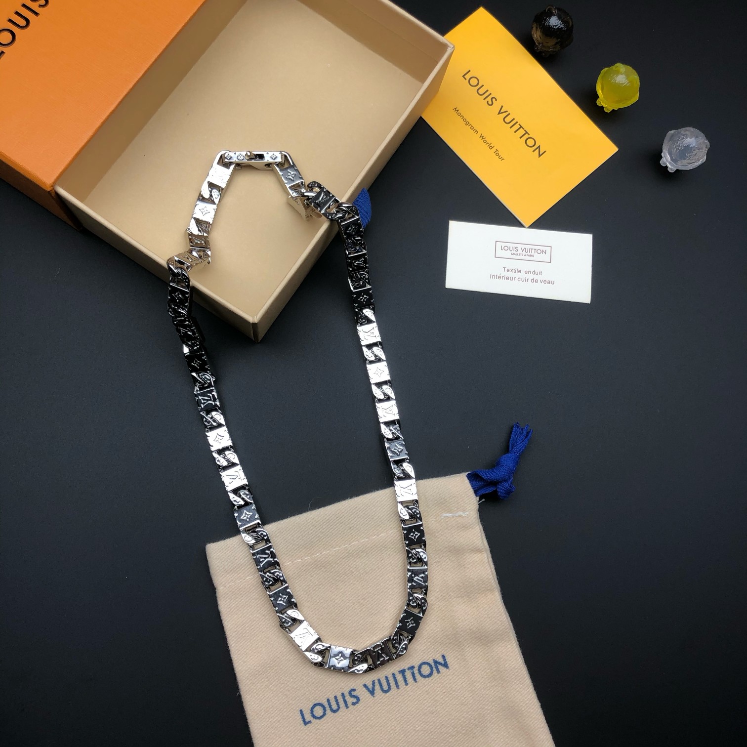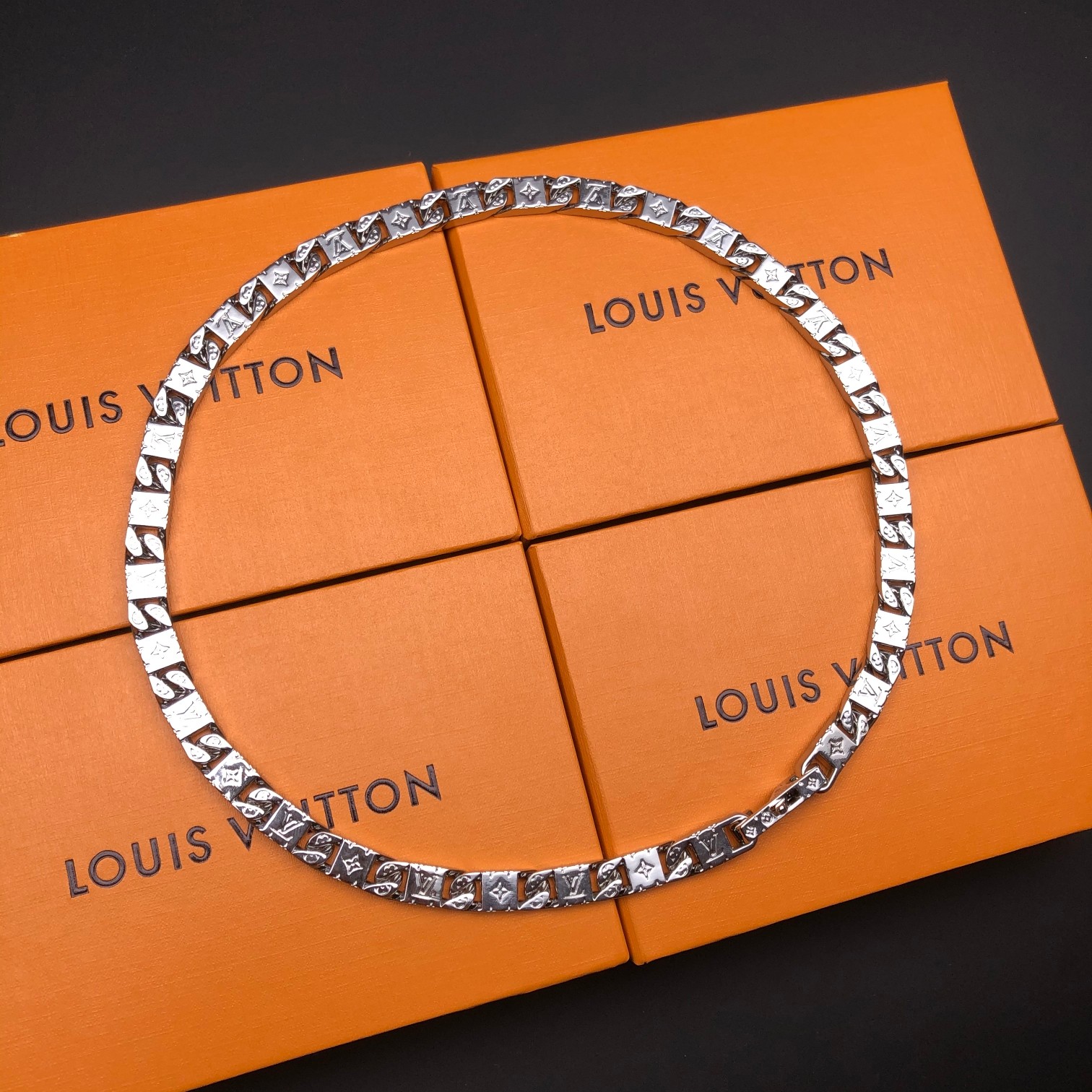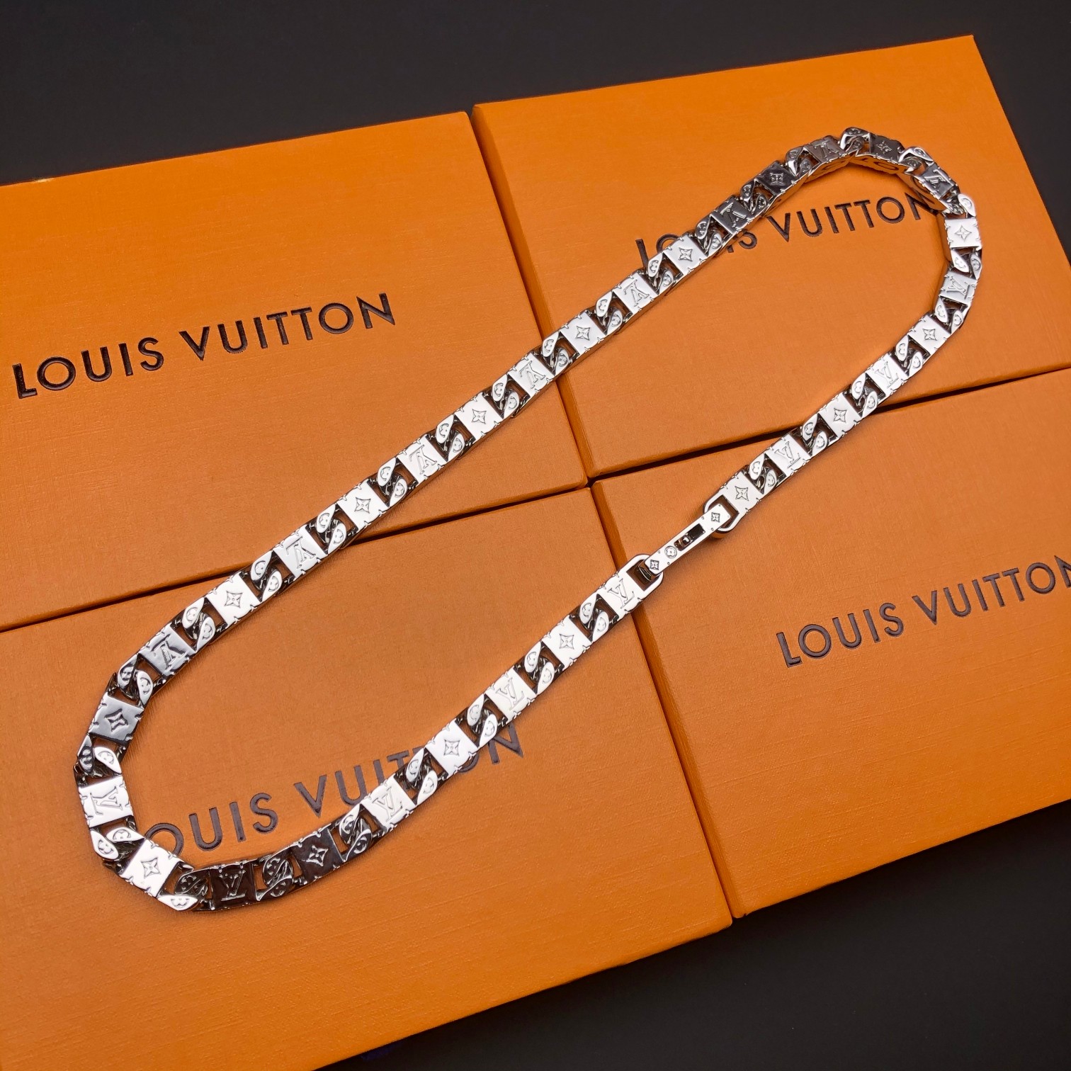 Add a touch of luxury to your outfit with this iconic Louis Vuitton necklace. Perfect for any occasion.