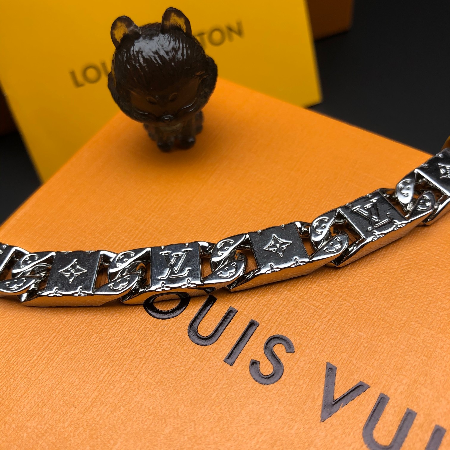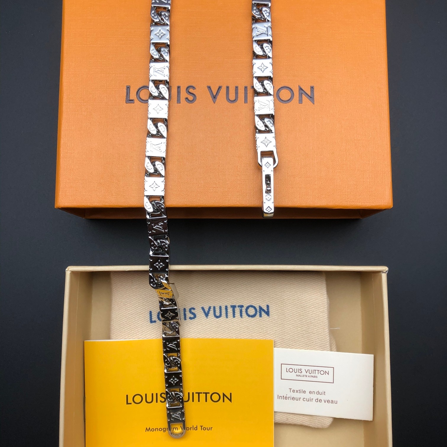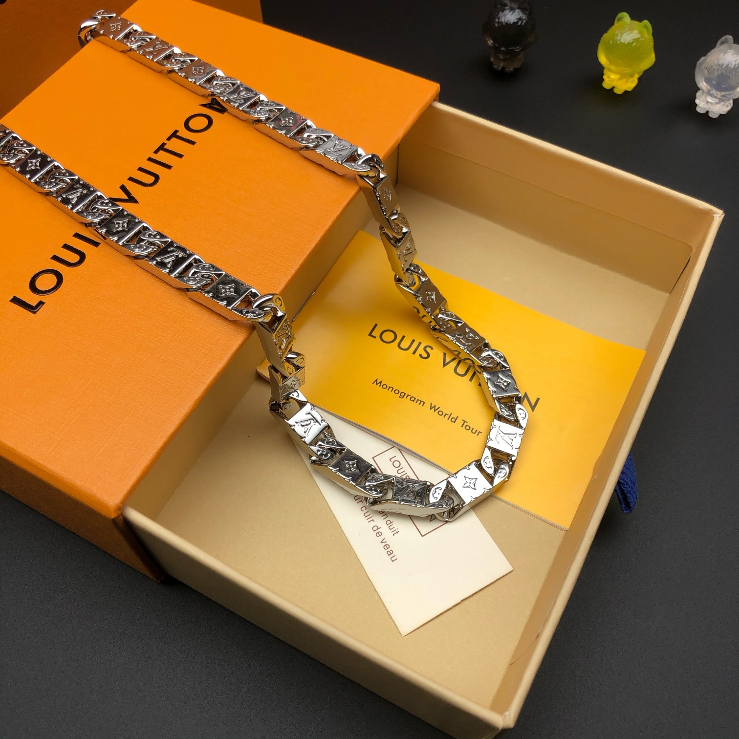 Add a touch of luxury to your outfit with this iconic Louis Vuitton necklace. Perfect for any occasion.