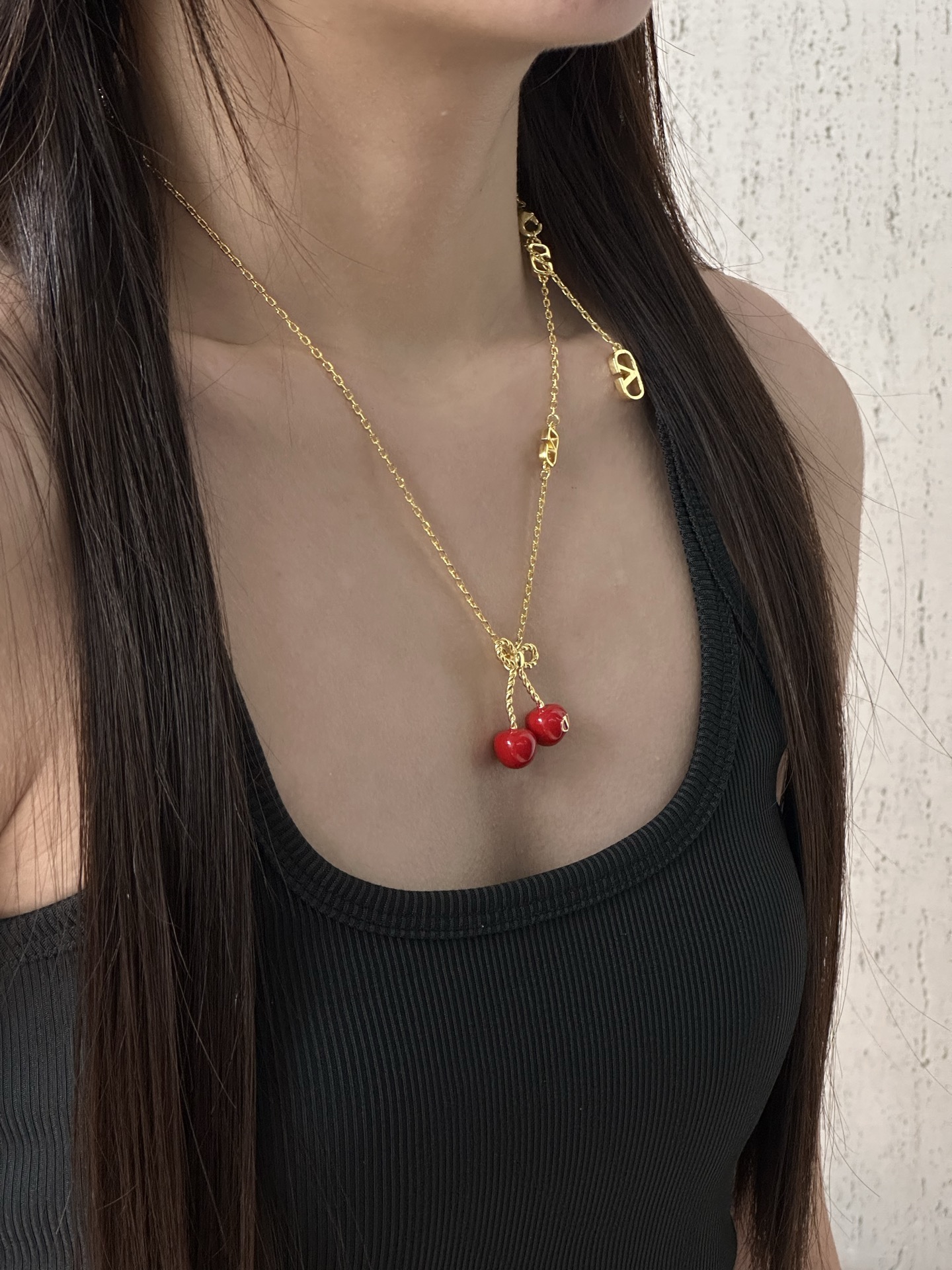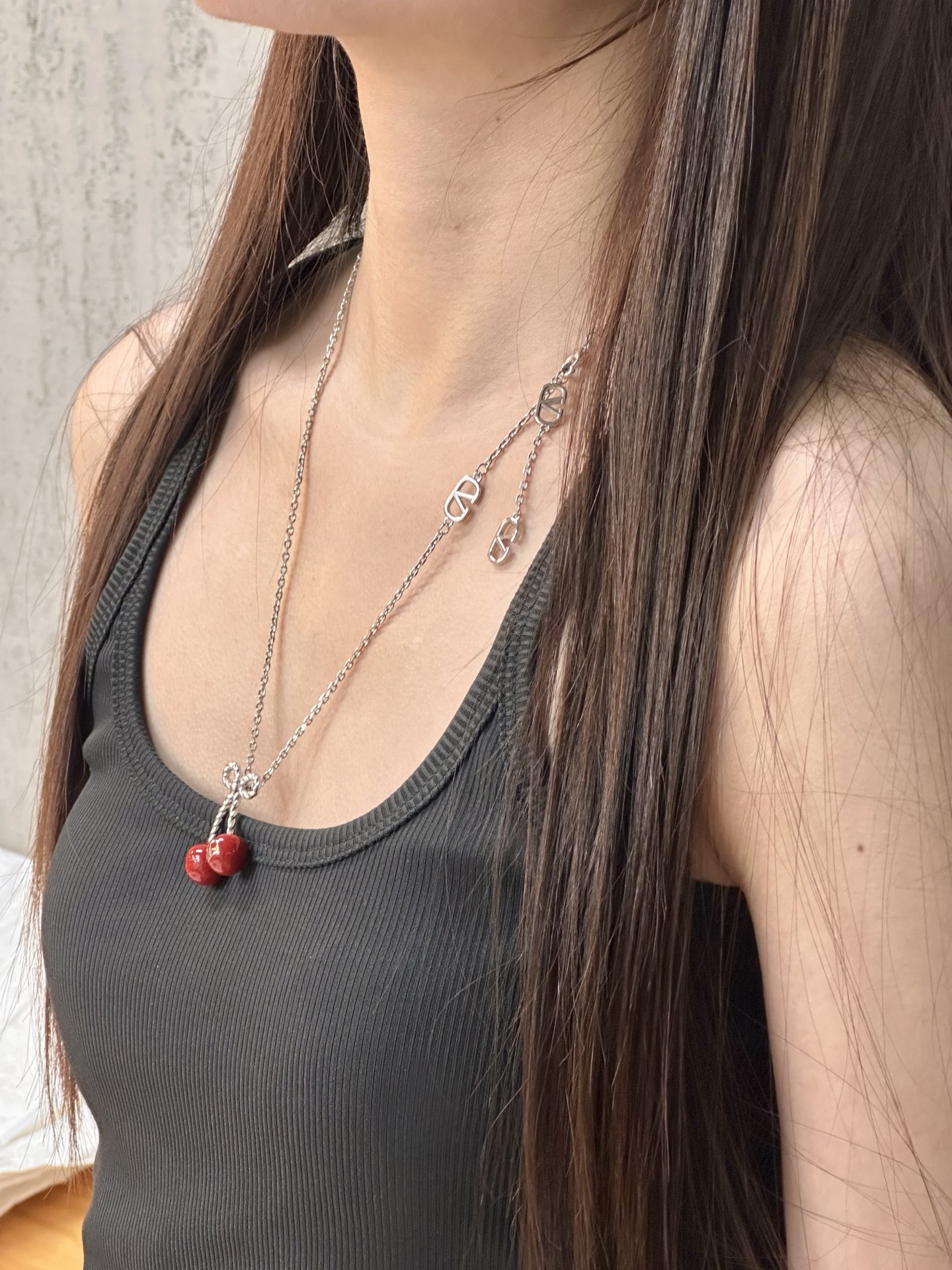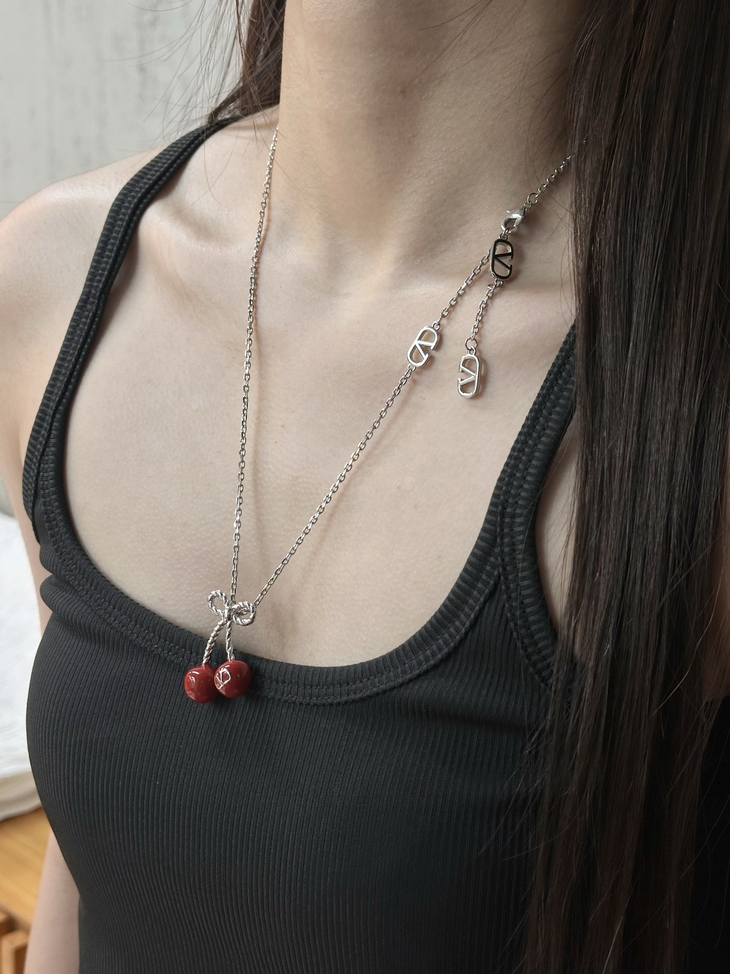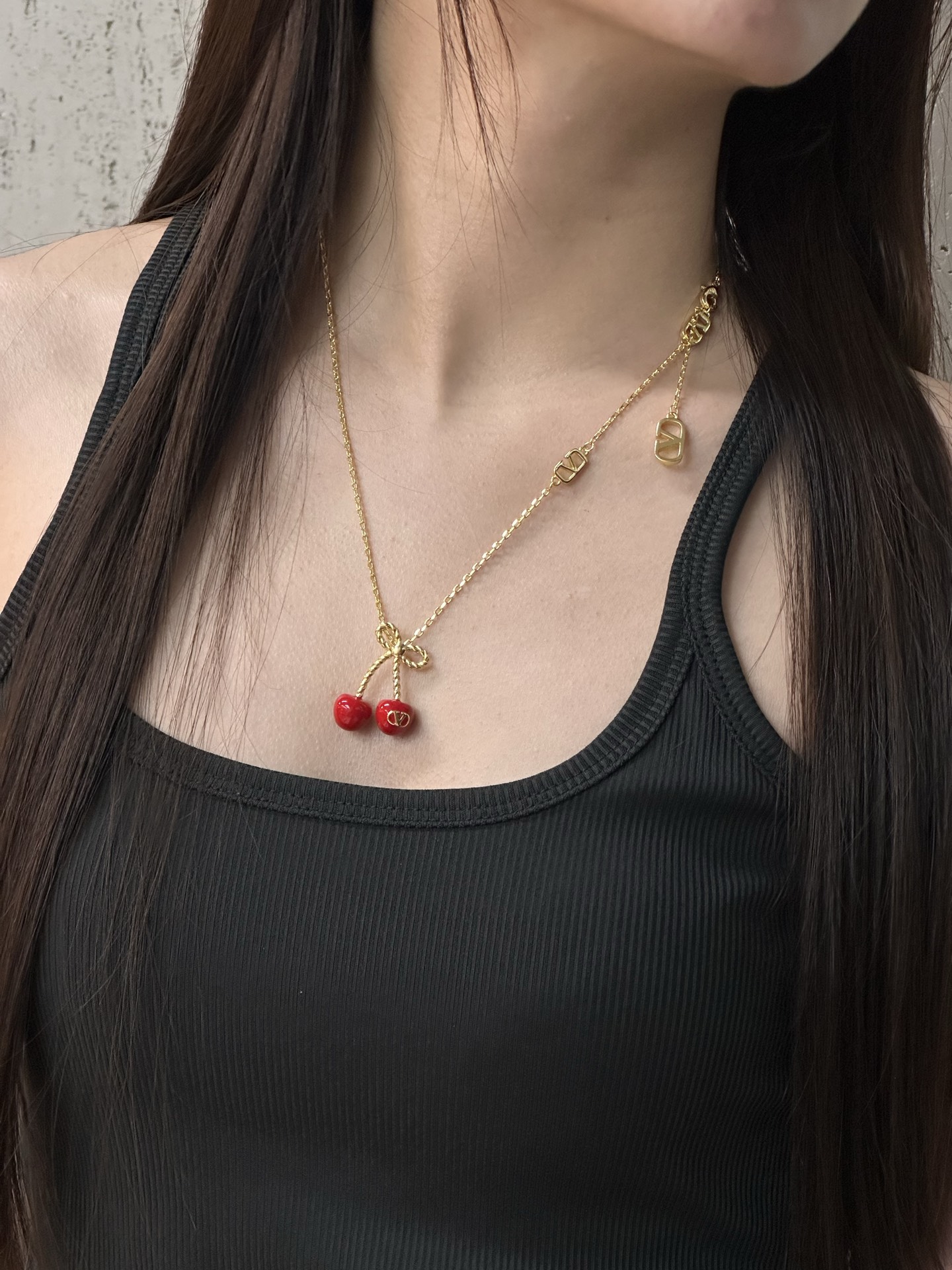 This Valentino Garavani necklace is a stunning piece that offers versatility and elegance. The gold-tone finish contrasts beautifully with the vibrant red cherry pendant, creating a chic and playful accessory.