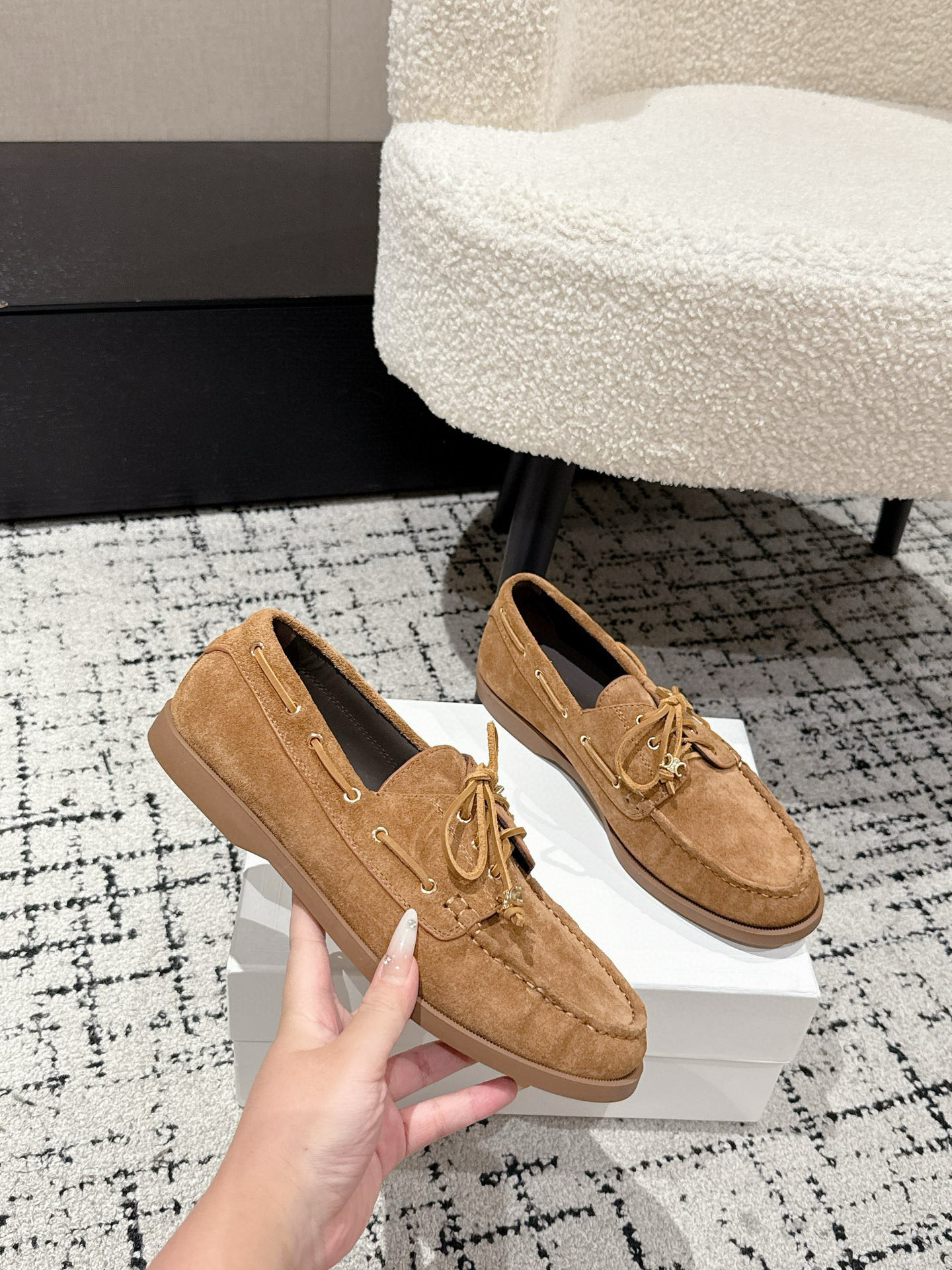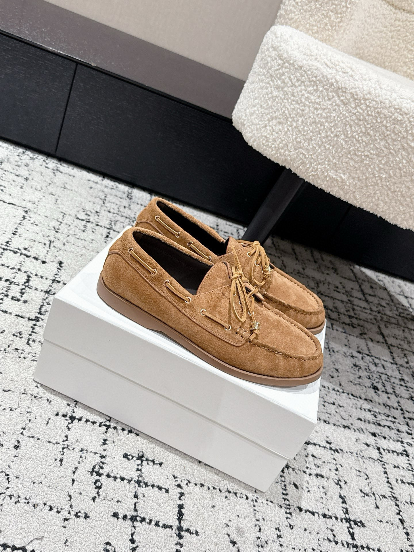 Celine Women's Tan Suede Lace-Up Loafers Comfortable Flat Shoes