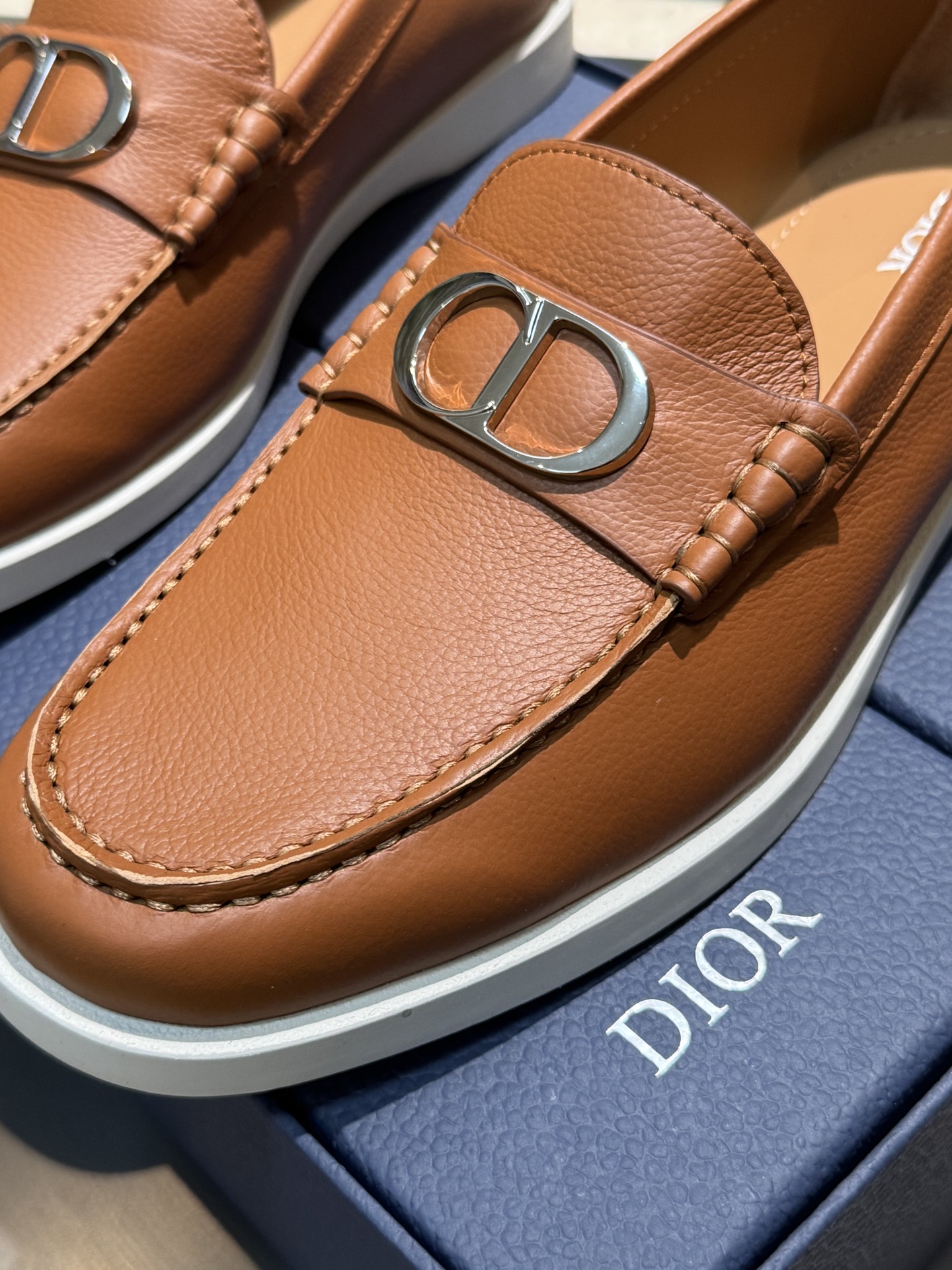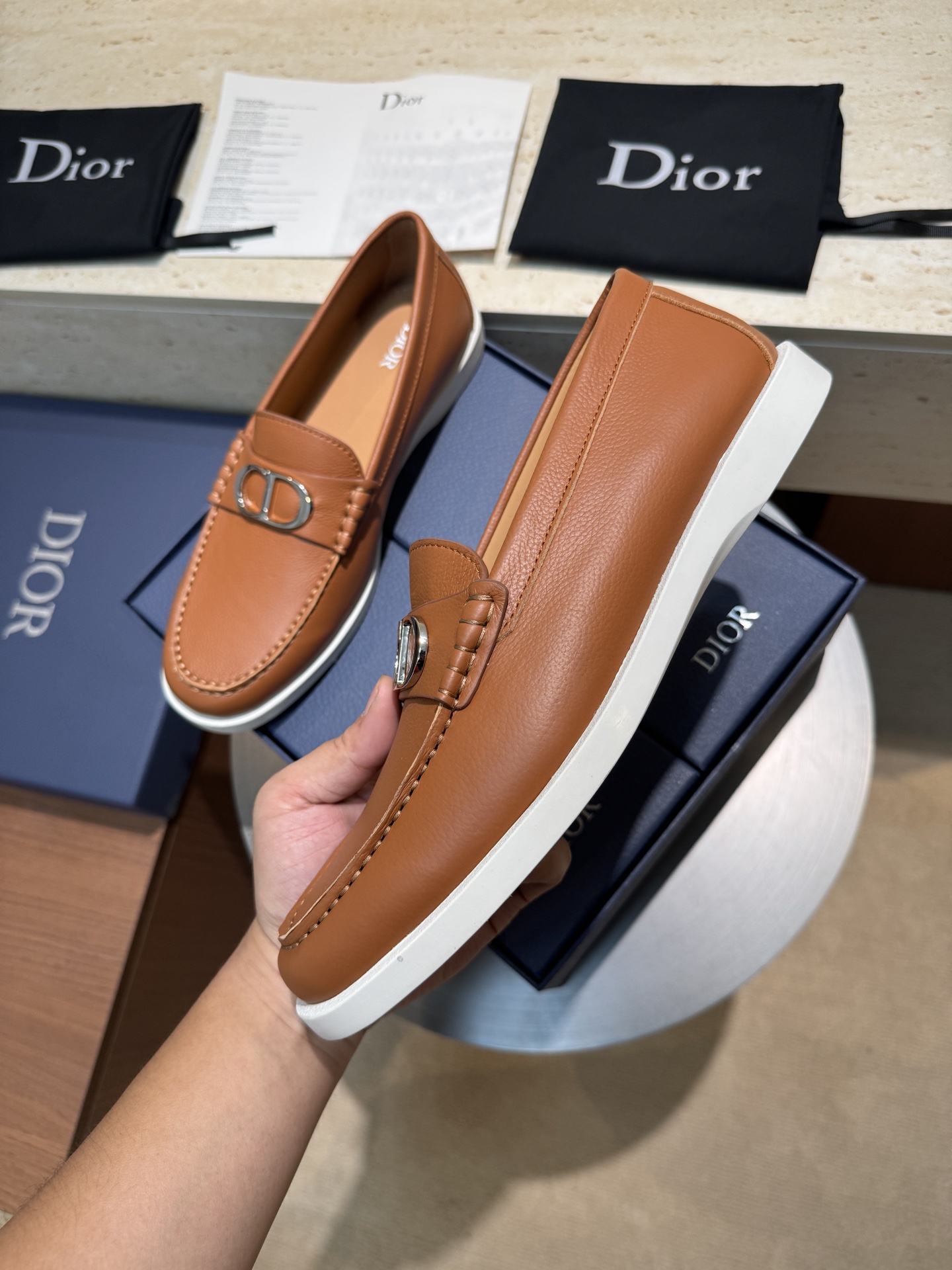 Dior Granville Leather Loafers - Tan Leather Upper with Iconic CD Buckle