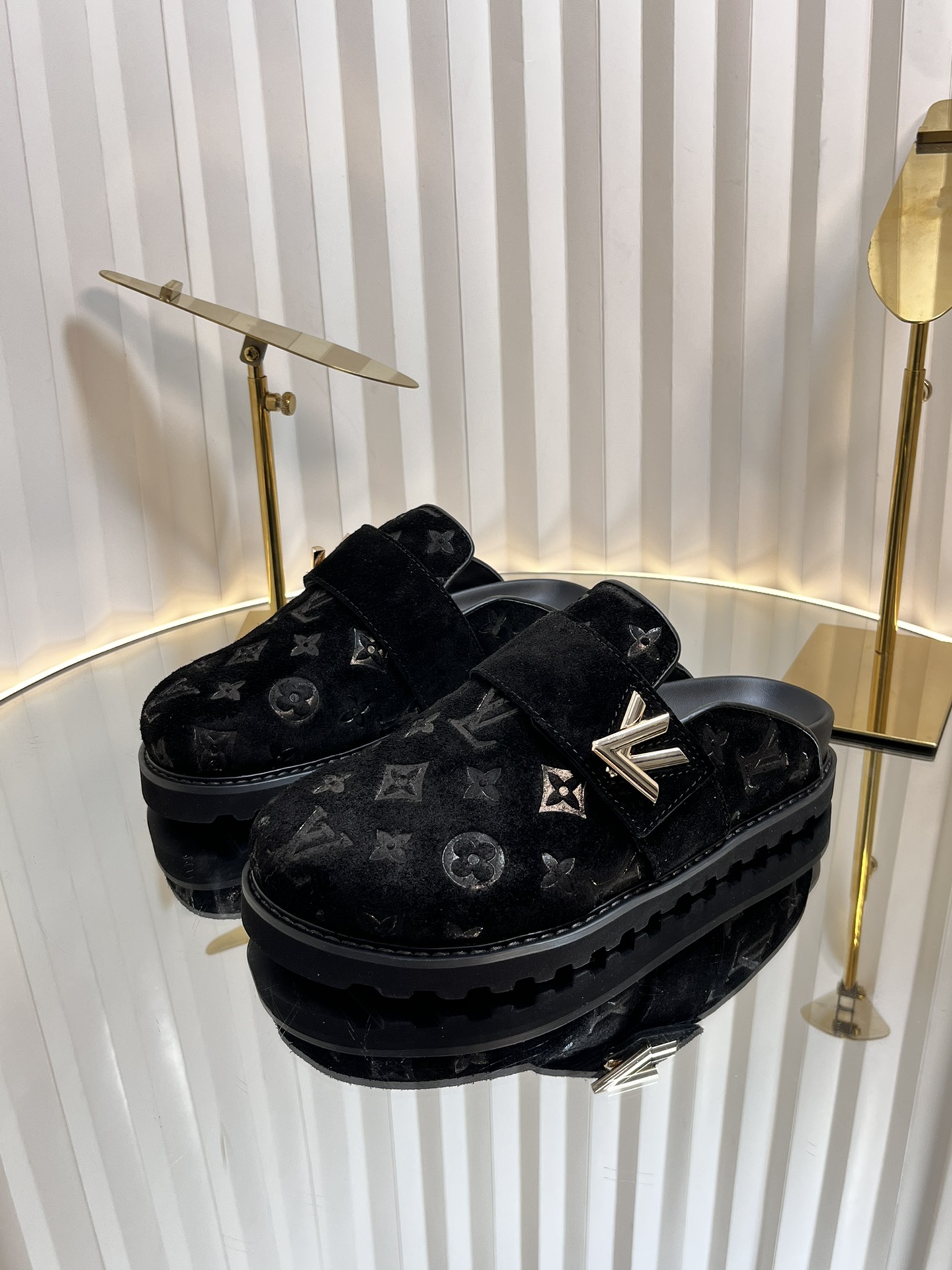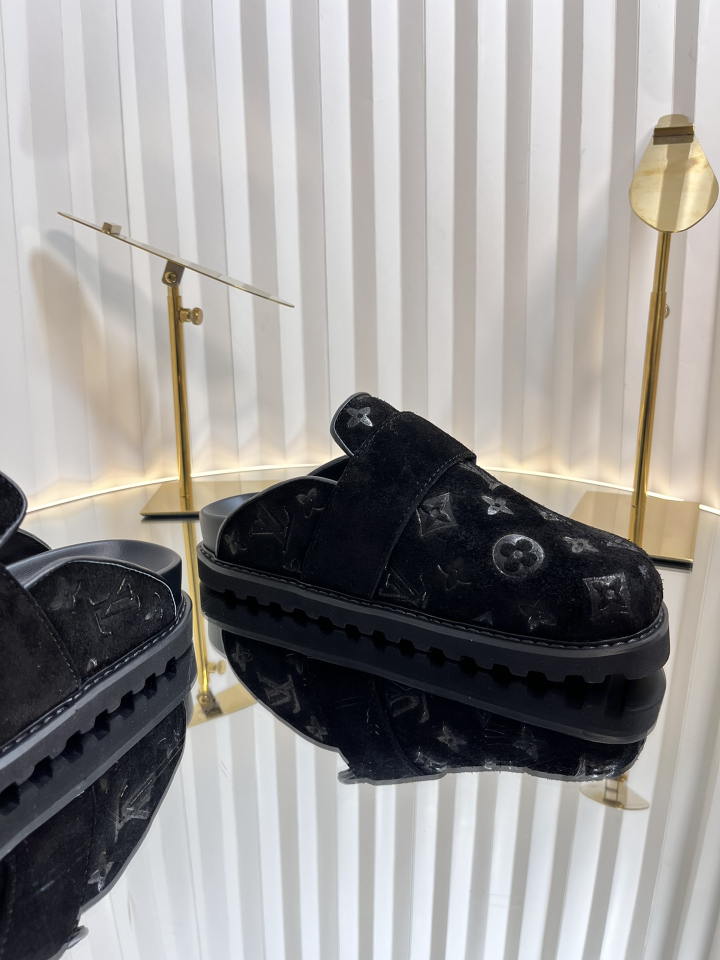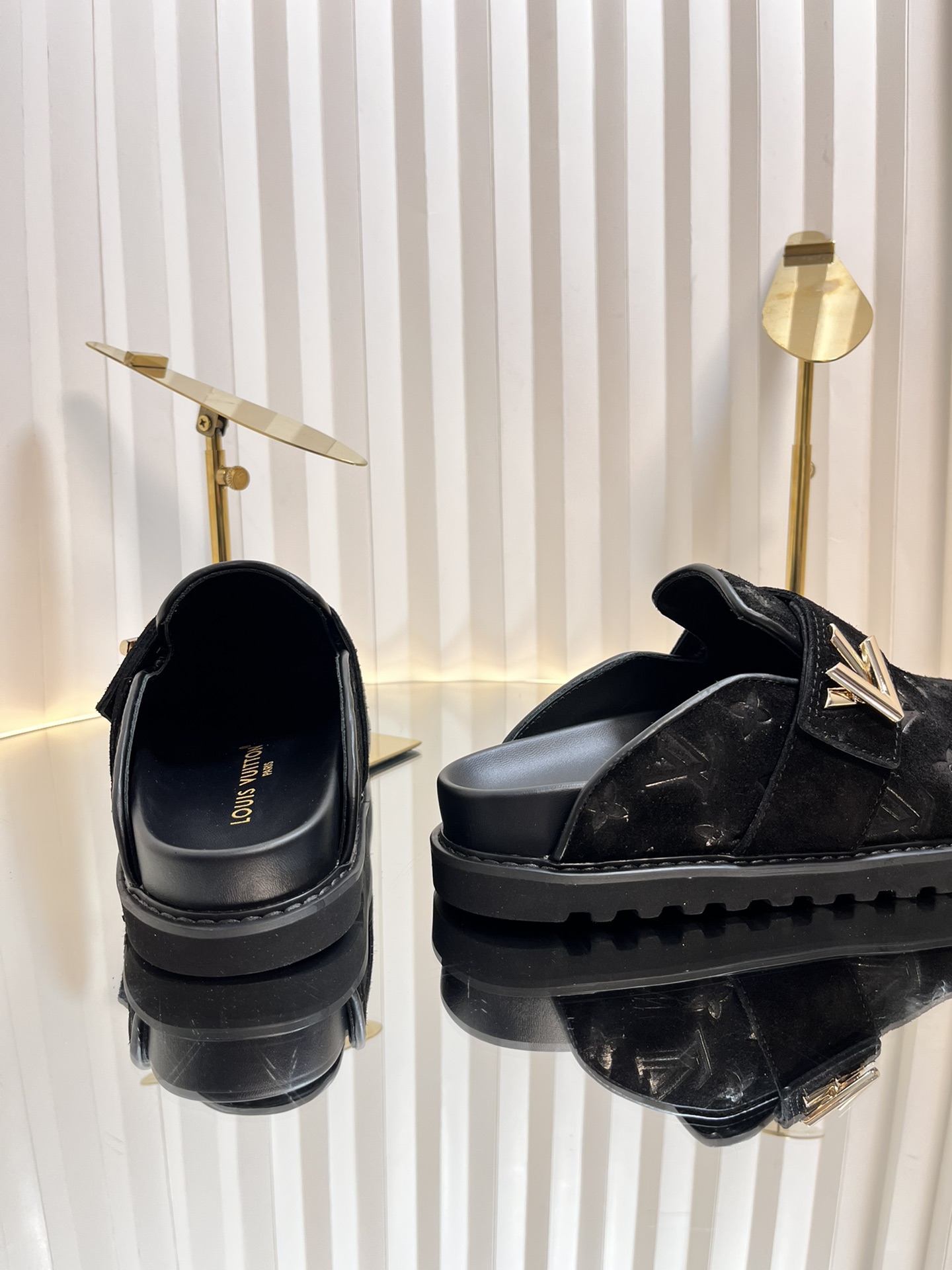 Step into luxury with these Louis Vuitton slides. Featuring monogram embossing, premium materials, and a comfortable fit, these mules are a must-have.