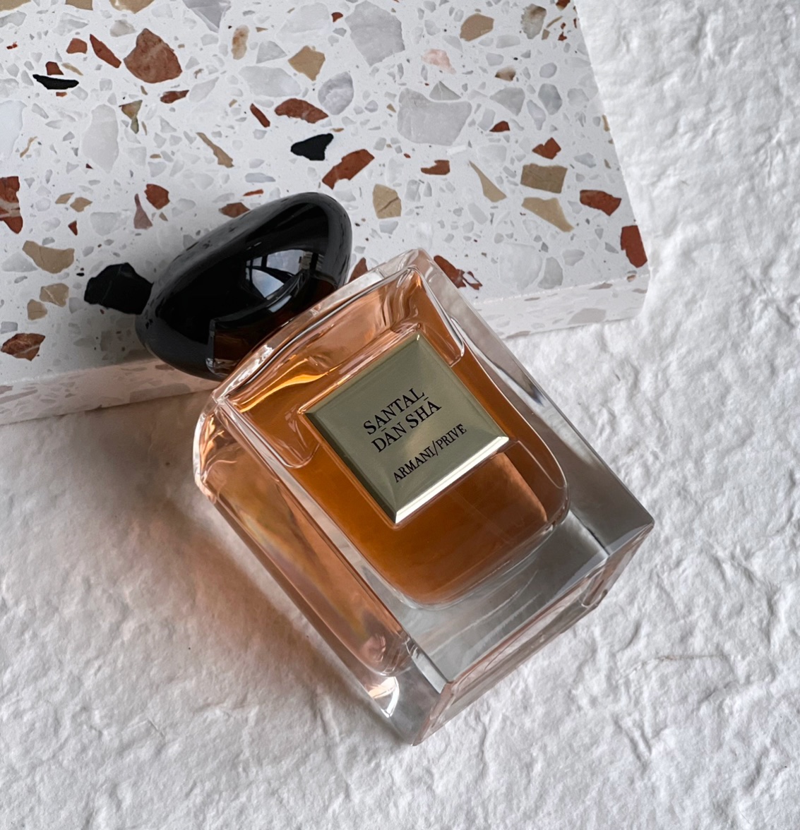 Experience Santal Dan Sha by Armani Privé, a woody fragrance with notes of sandalwood and bergamot. Perfect for both everyday wear.