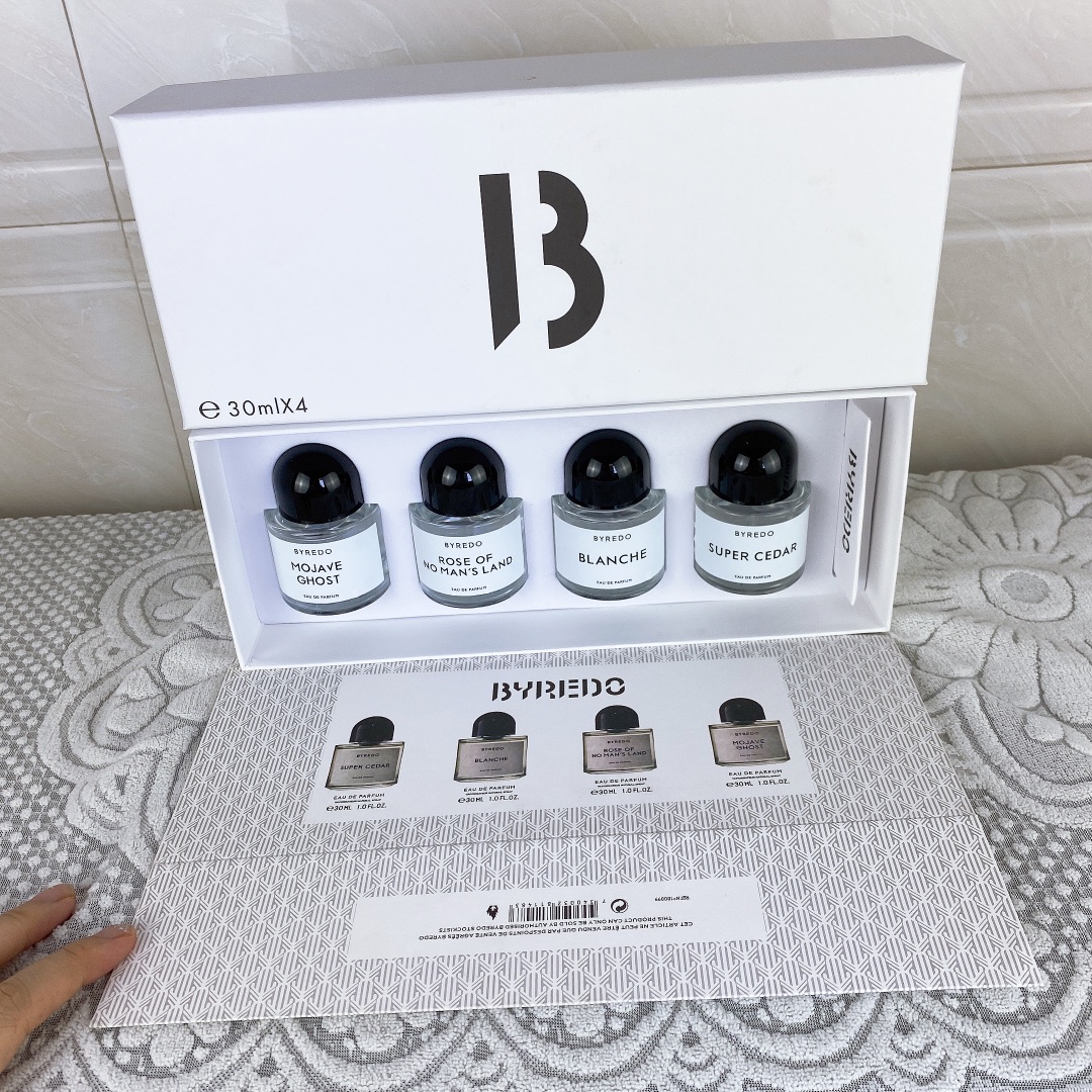 Byredo Perfume Sample Set - Four 30ml Bottles with Sprayers in Wood Box