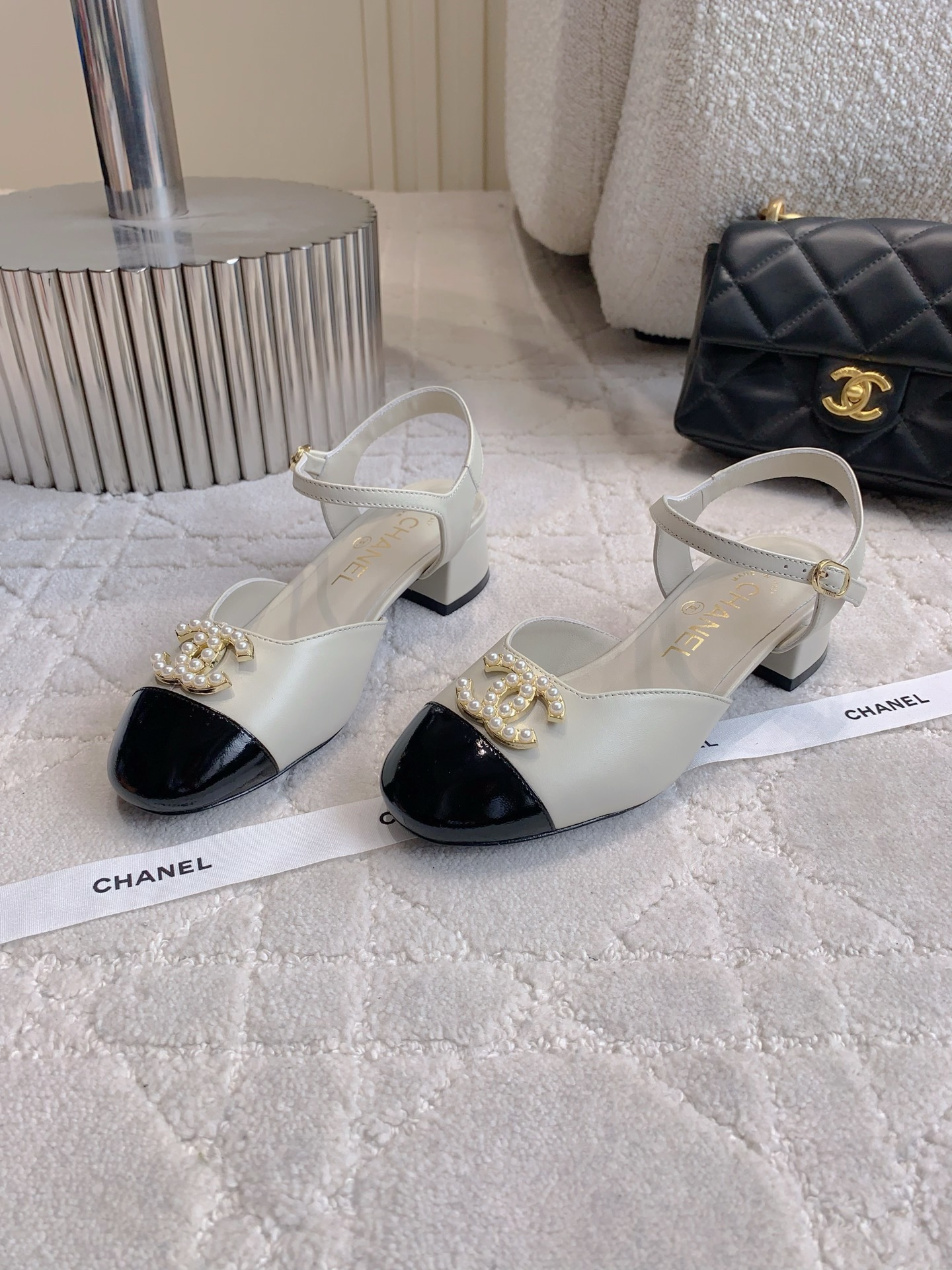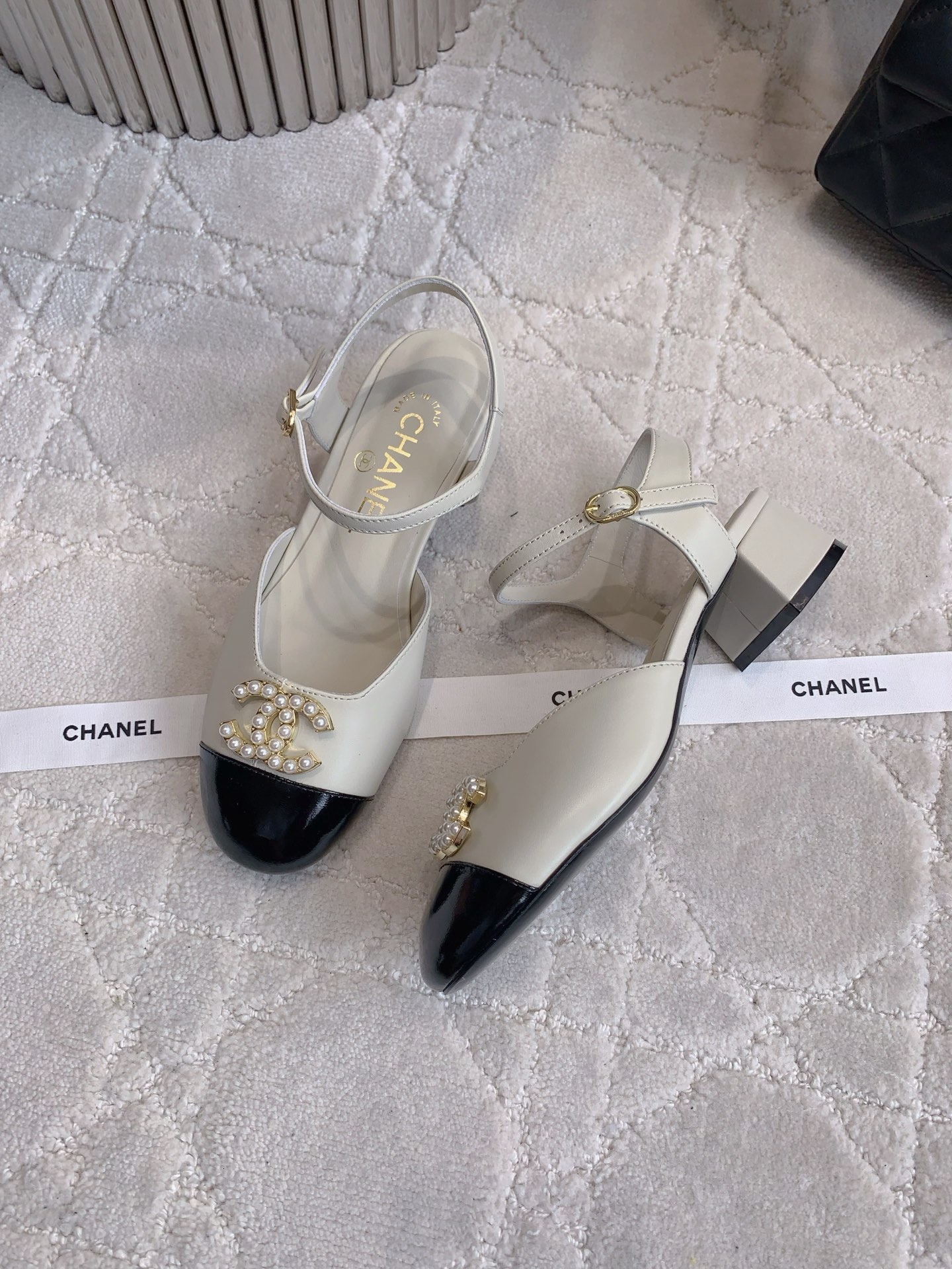Chanel Mary Jane Block Heel Pumps with Classic Two-Tone & CC Logo