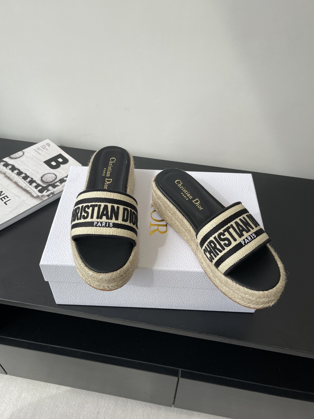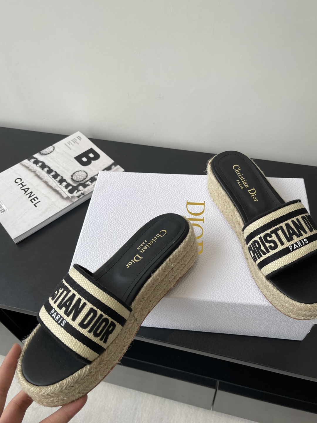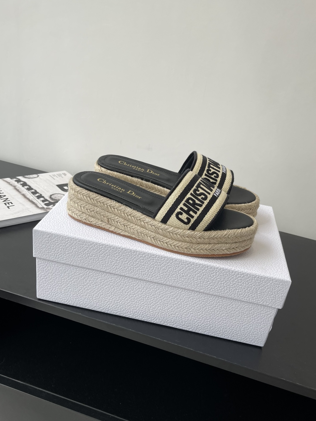 Dior Dway Sandal: Espadrille Platform, Signature Embroidery, Supreme Comfort