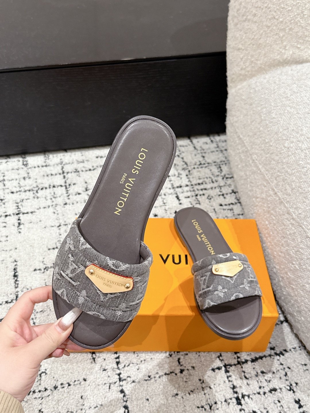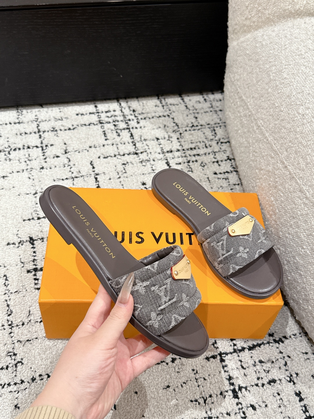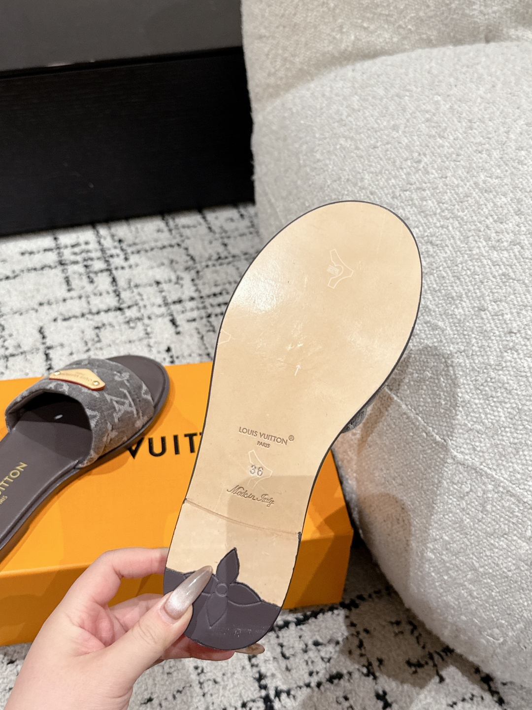These Louis Vuitton flat mule sandals are a perfect blend of luxury and comfort, ideal for the summer season.