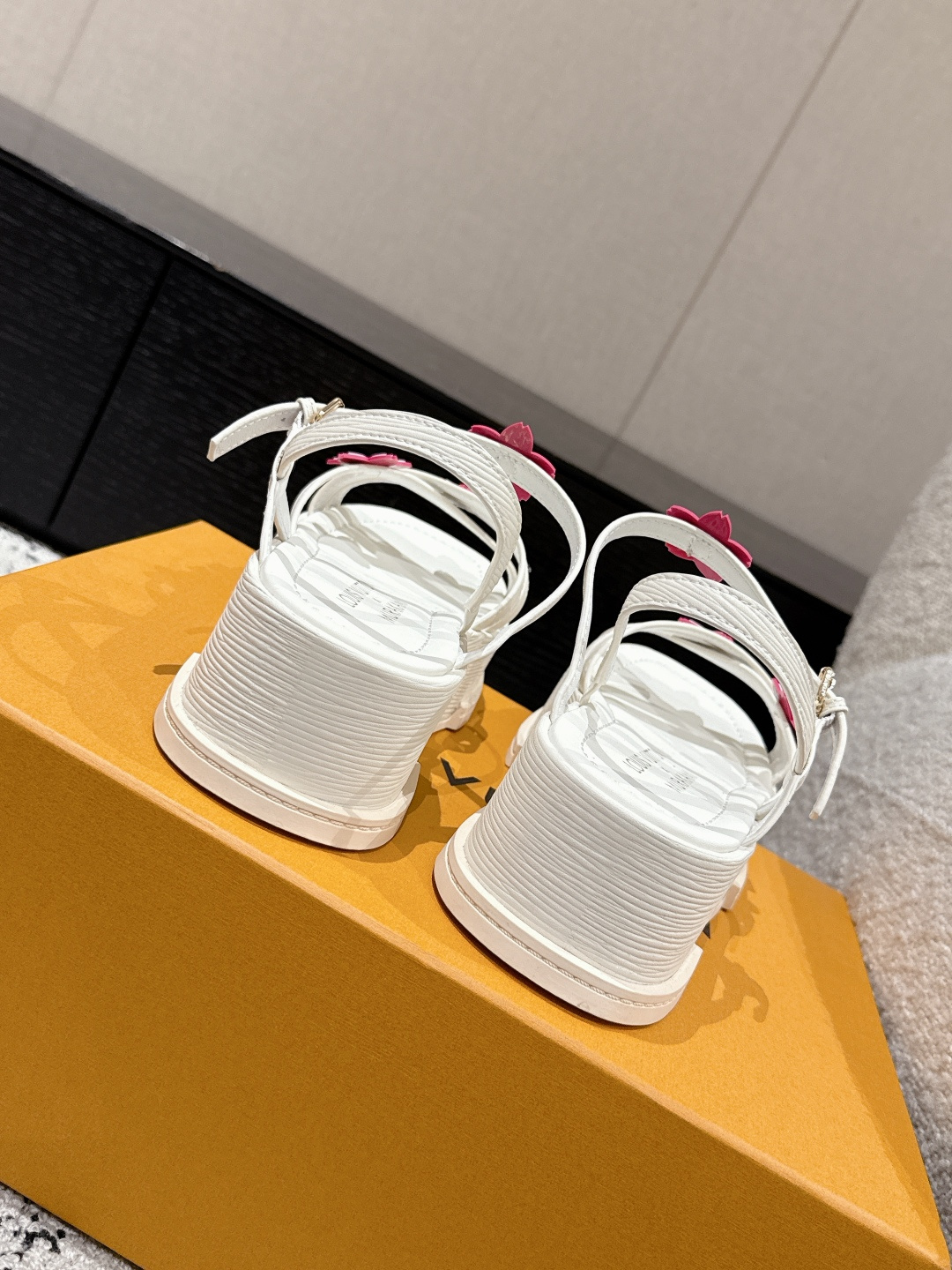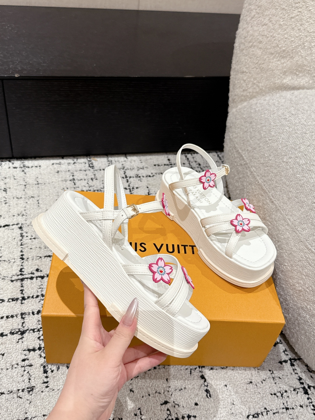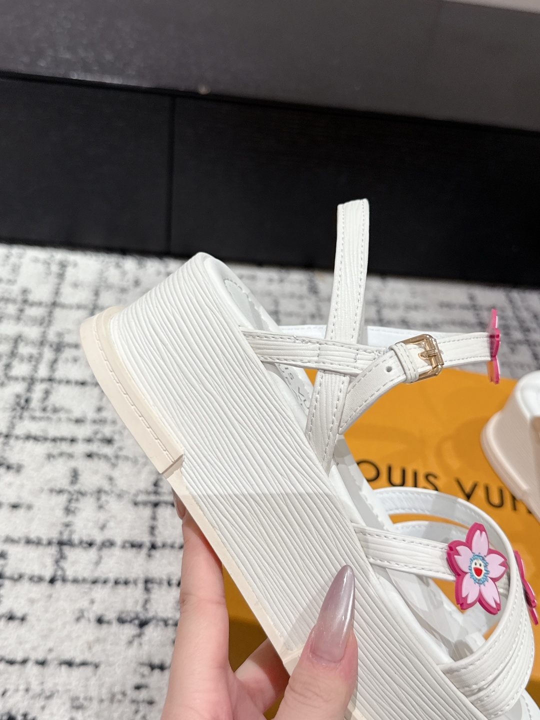 Elevate your summer style with these exquisite Louis Vuitton flatform sandals. Combining elegance and comfort, they are perfect for any occasion.