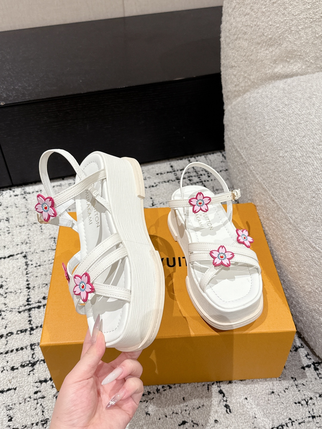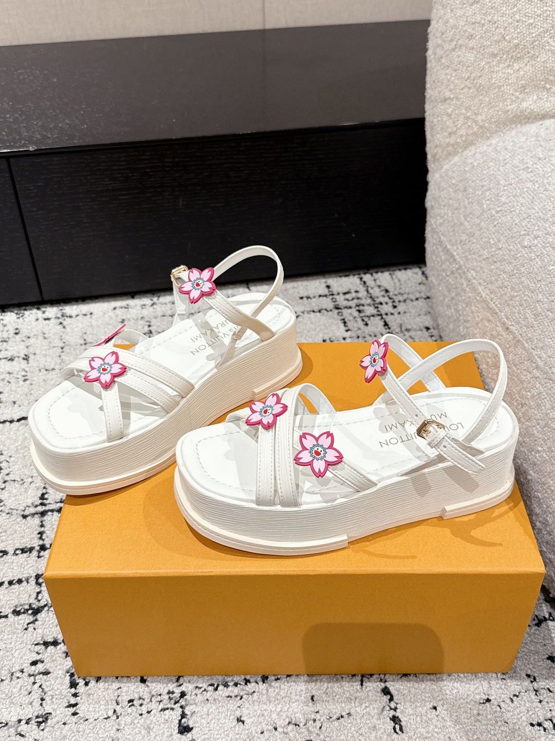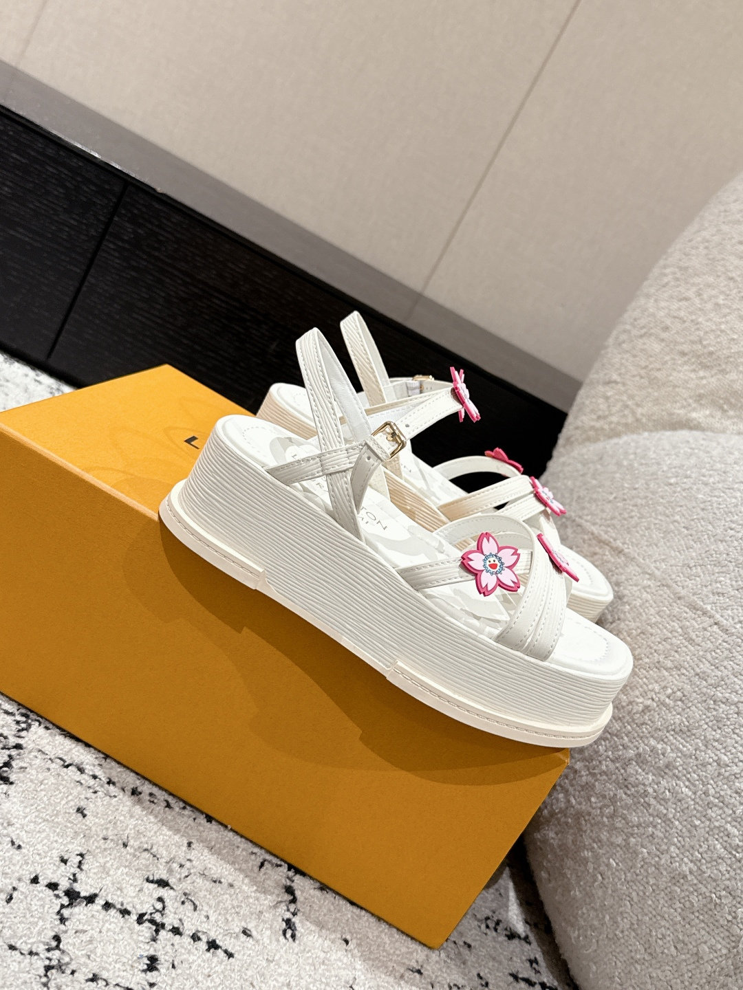 Elevate your summer style with these exquisite Louis Vuitton flatform sandals. Combining elegance and comfort, they are perfect for any occasion.