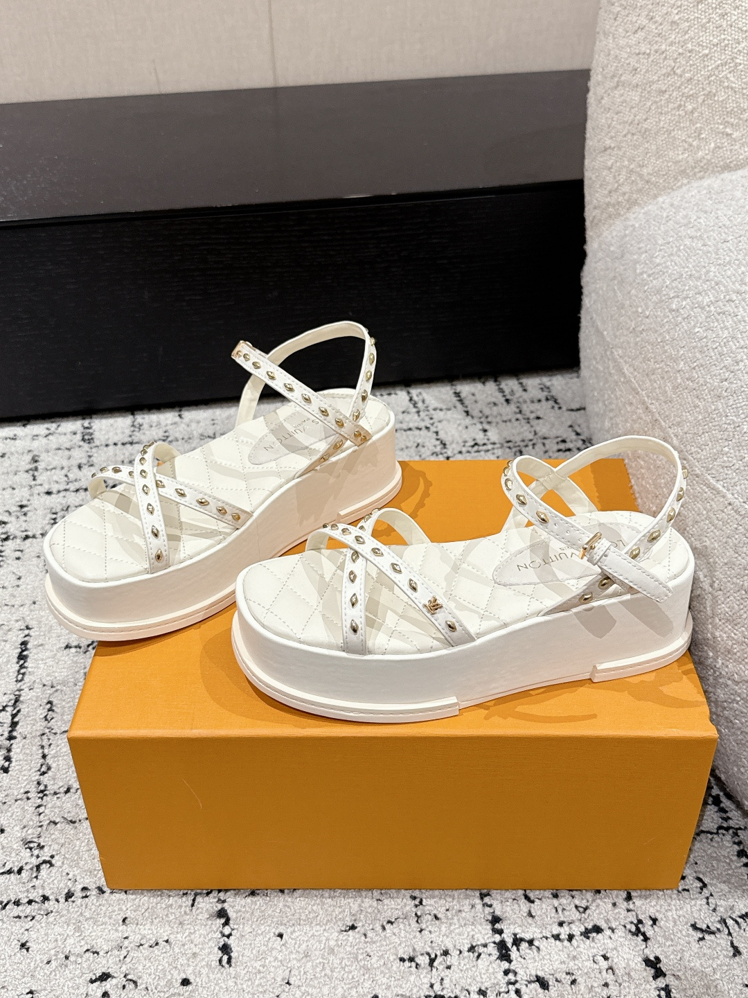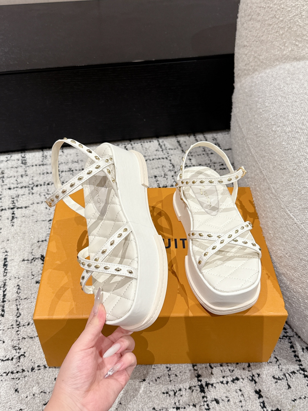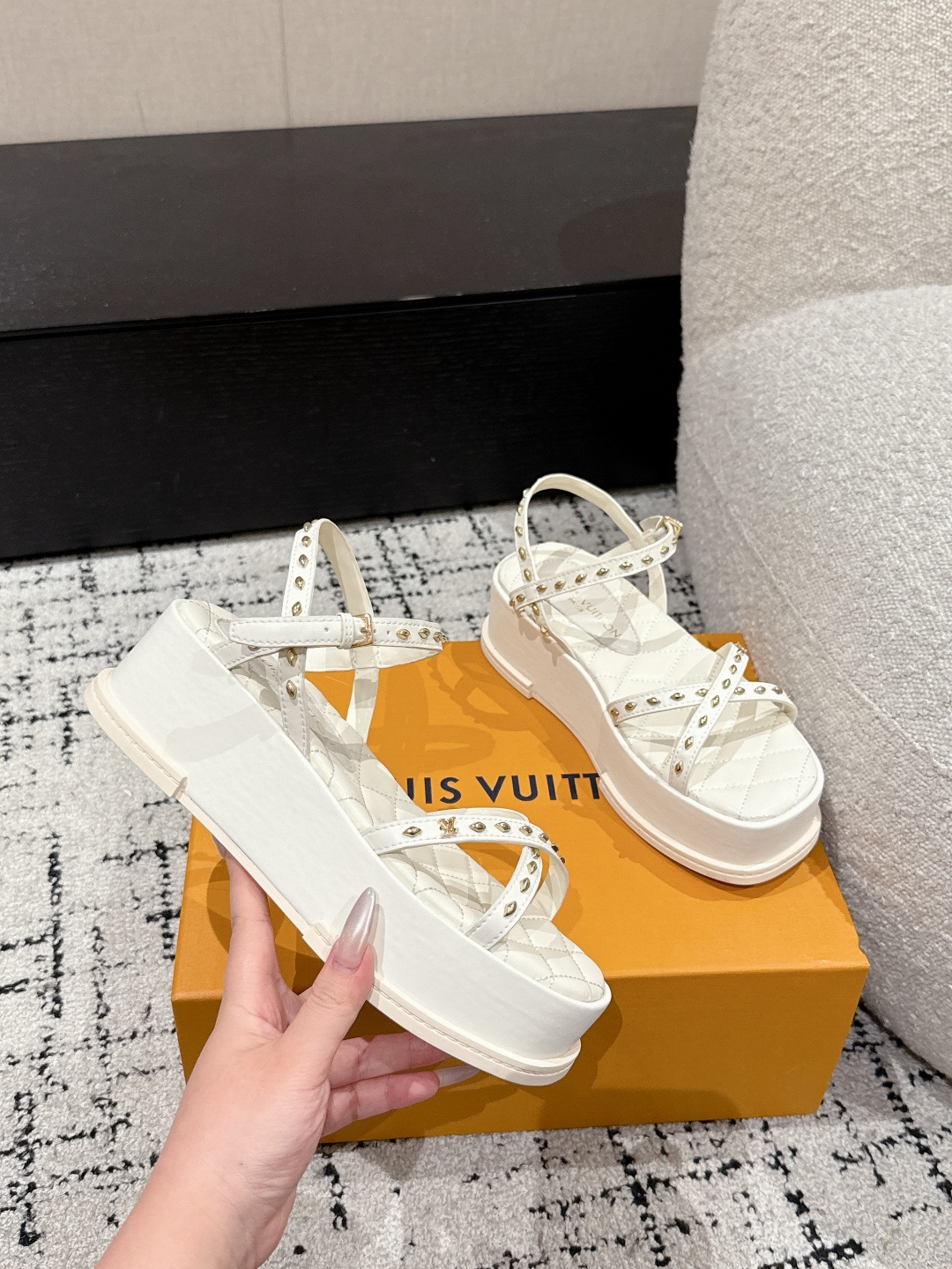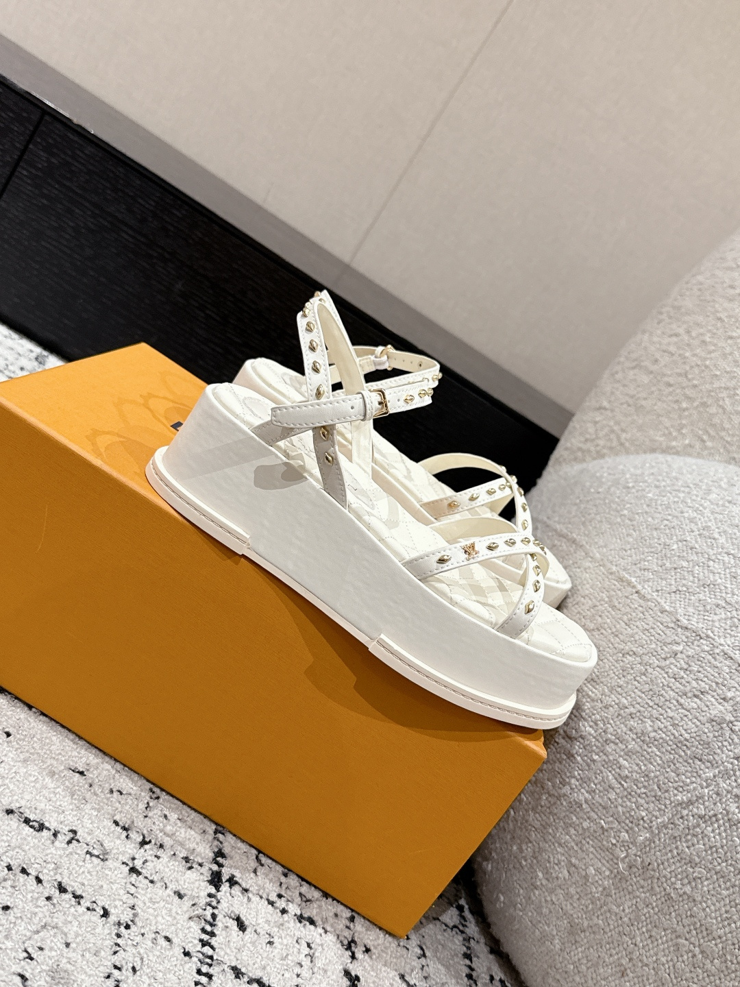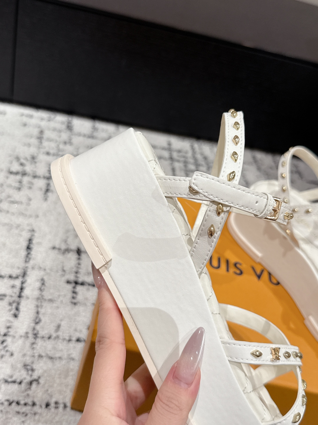 Louis Vuitton Maya White Leather Platform Sandals - Summer Collection