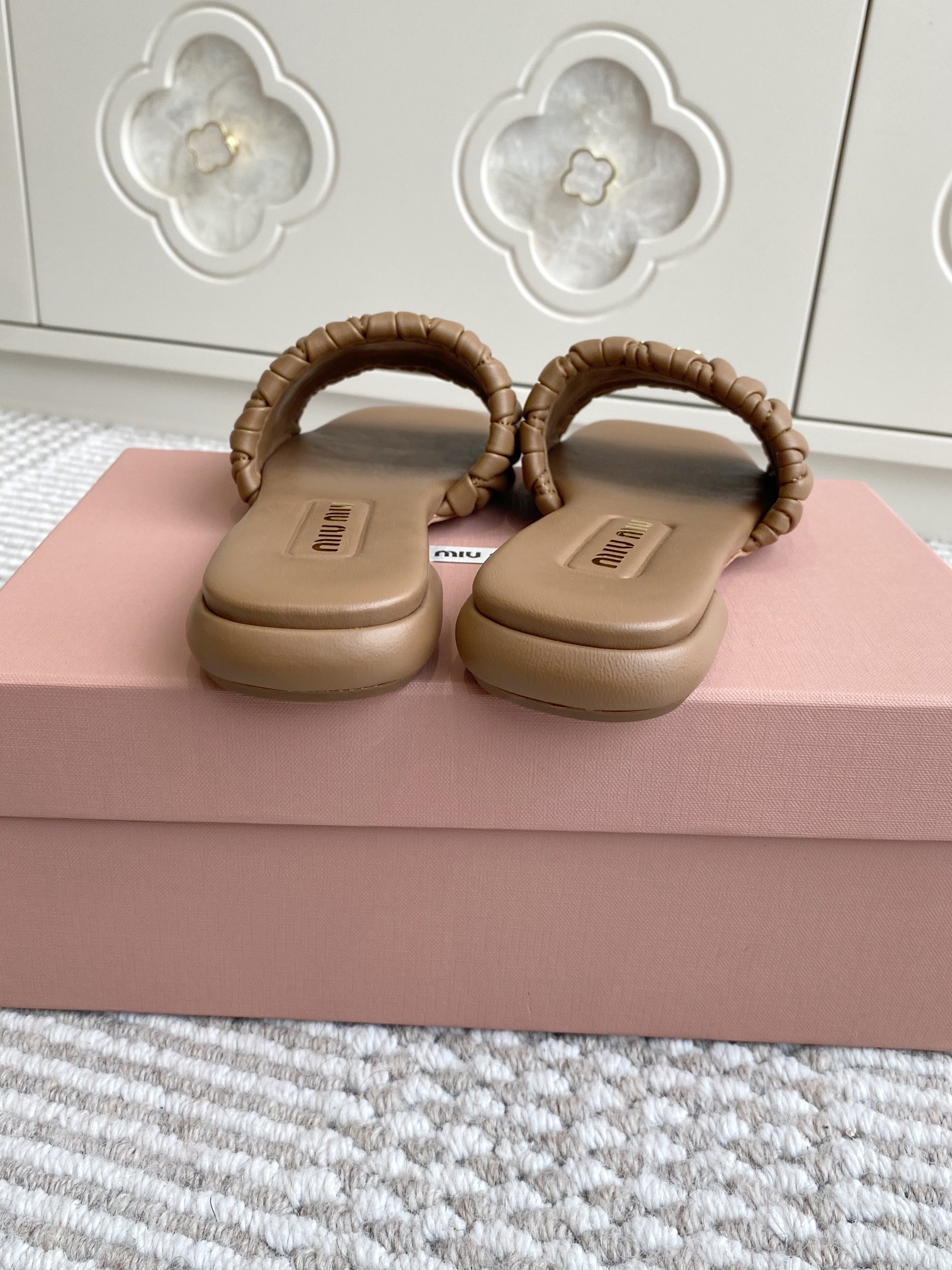 These Miu Miu flat sandals are a must-have for any fashion-forward woman. Experience the perfect combination of luxury, comfort, and style with every step.