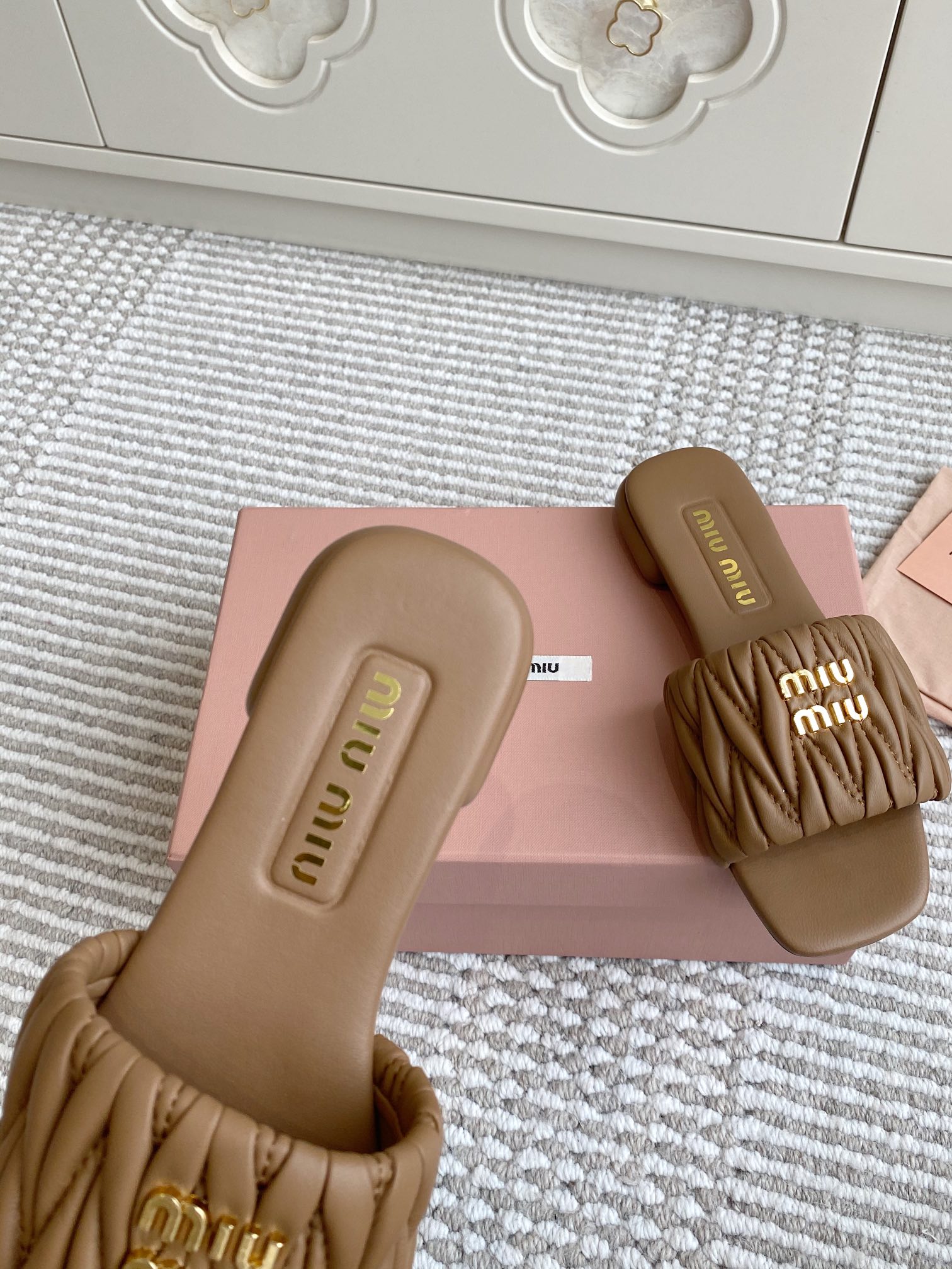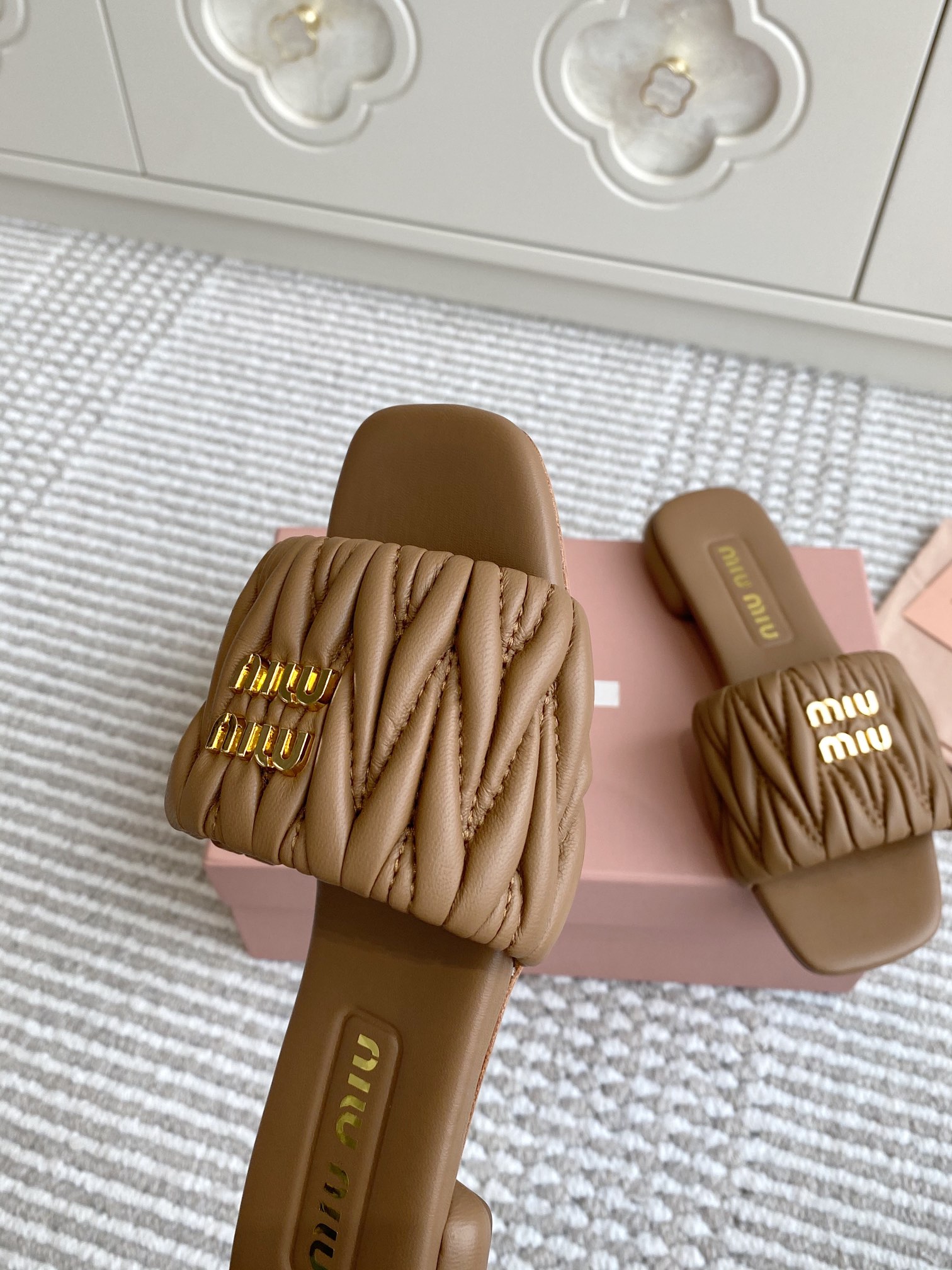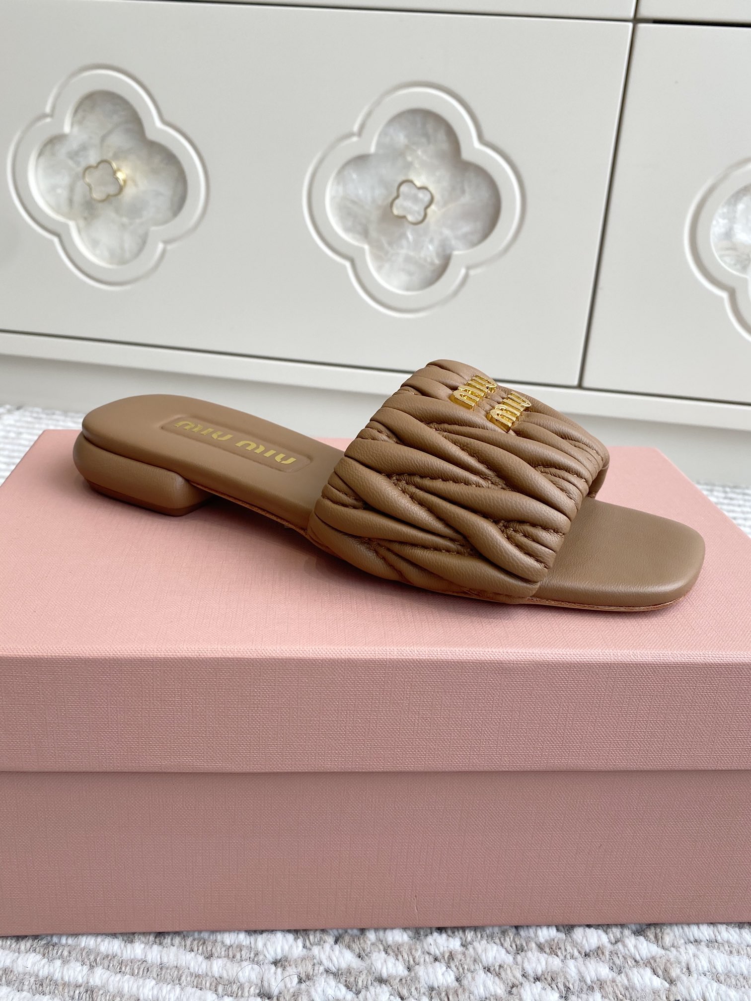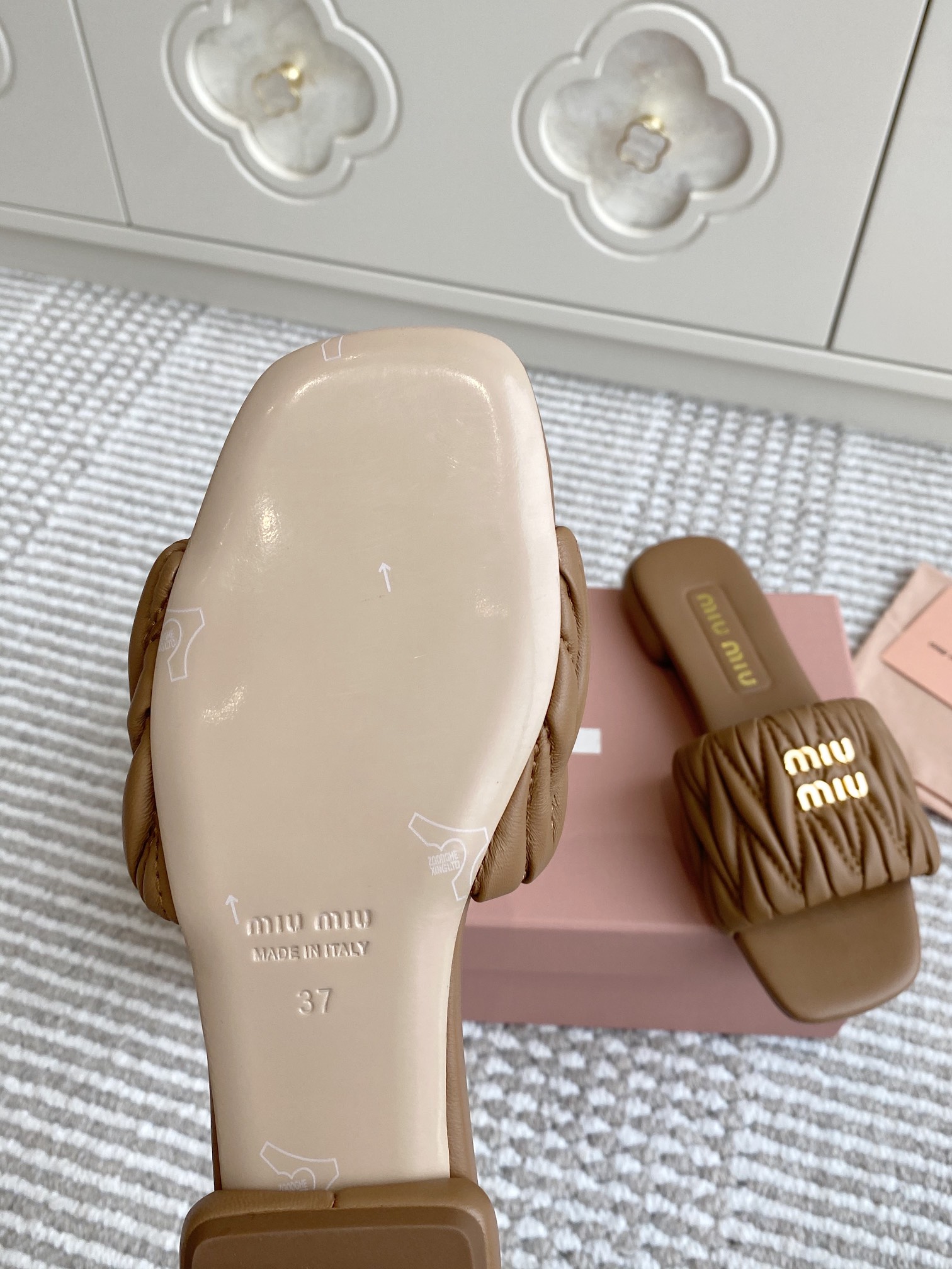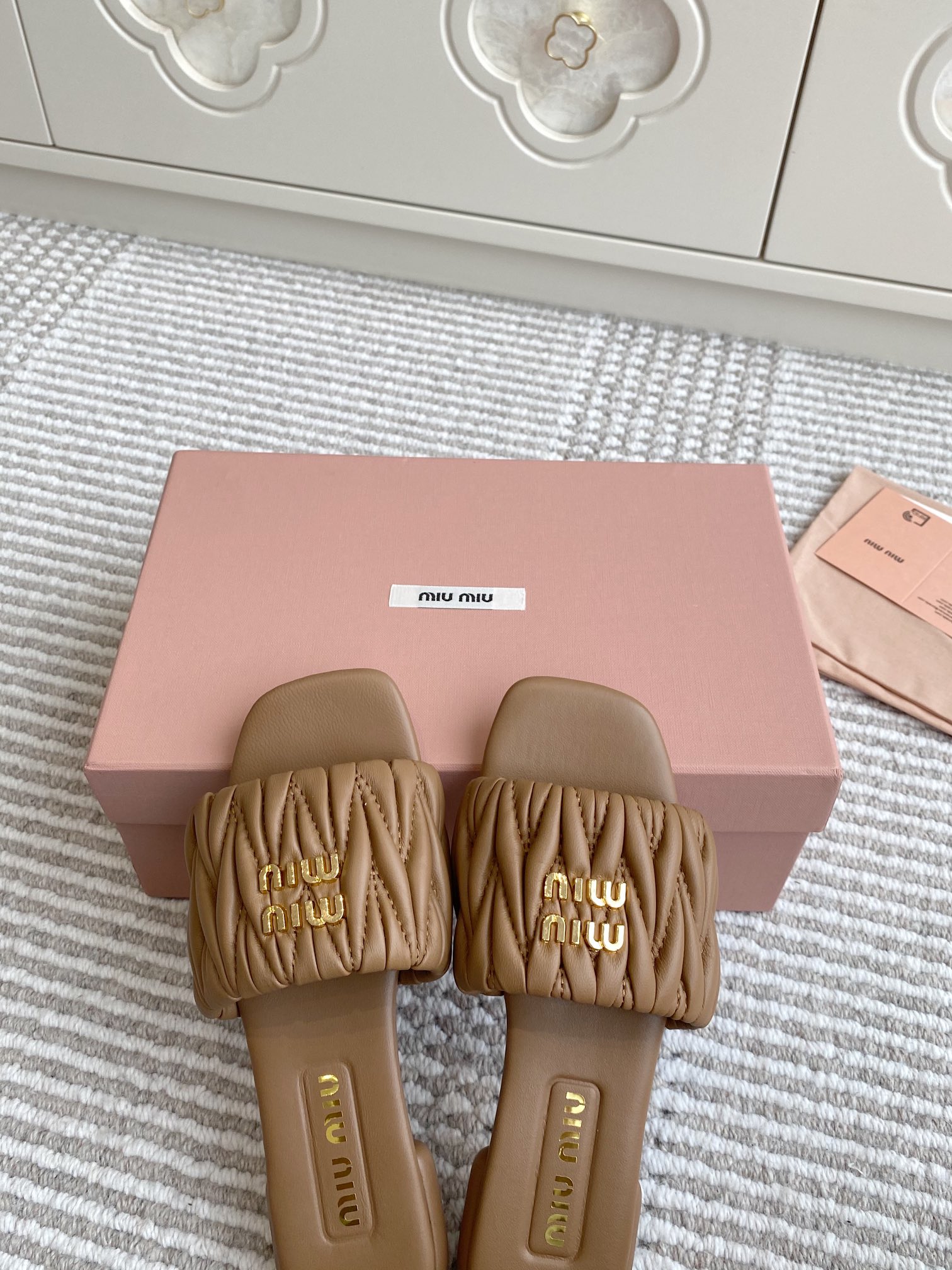Miu Miu Women's Lambskin Flat Sandals Slides Quilted Design New Season