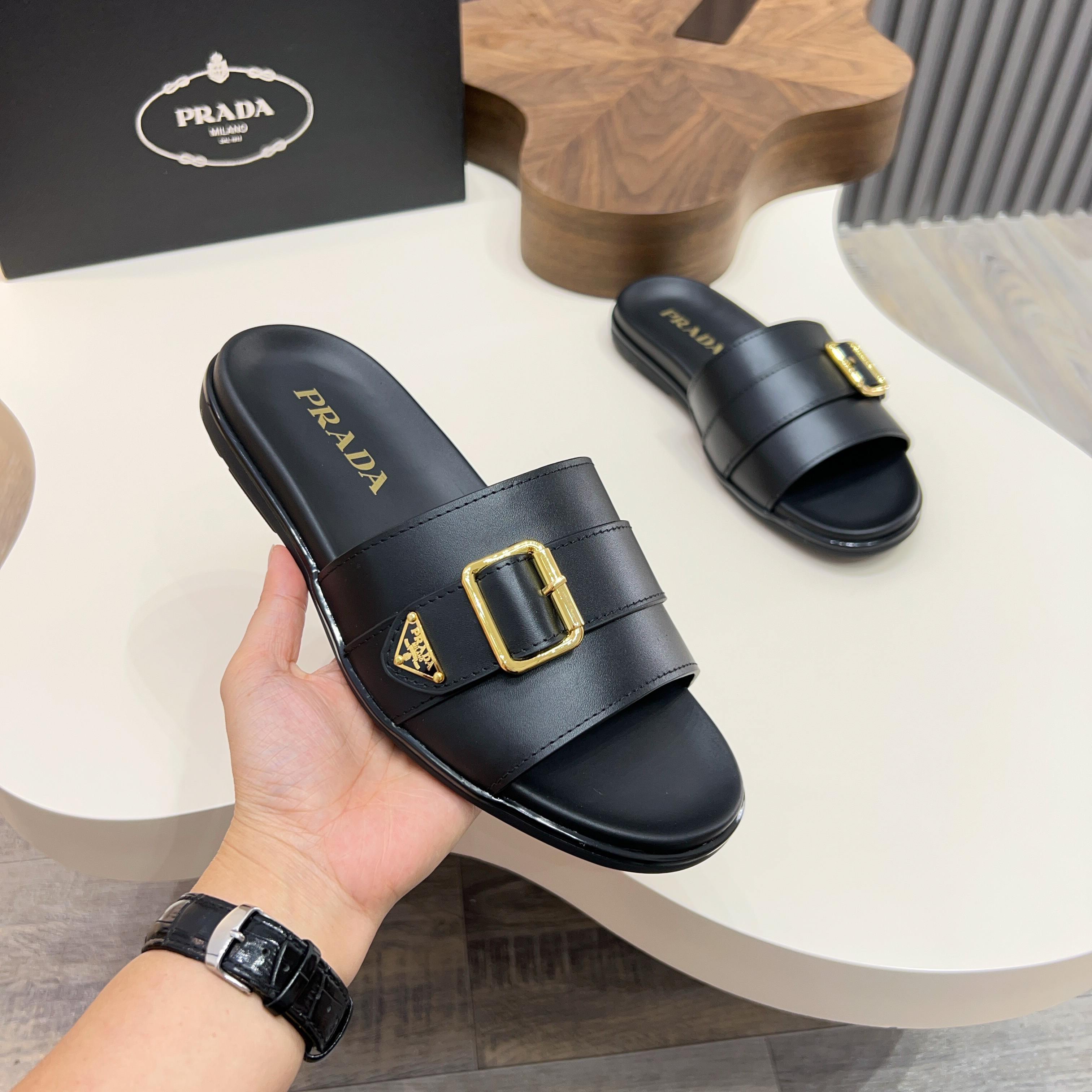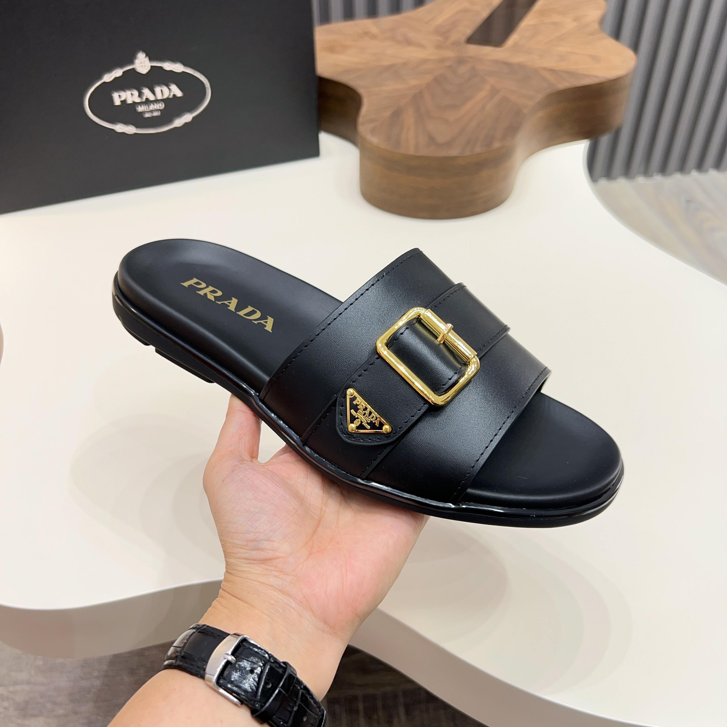 Elevate your summer style with Prada men's leather sandals. Comfortable, stylish, and perfect for any occasion with iconic logo.