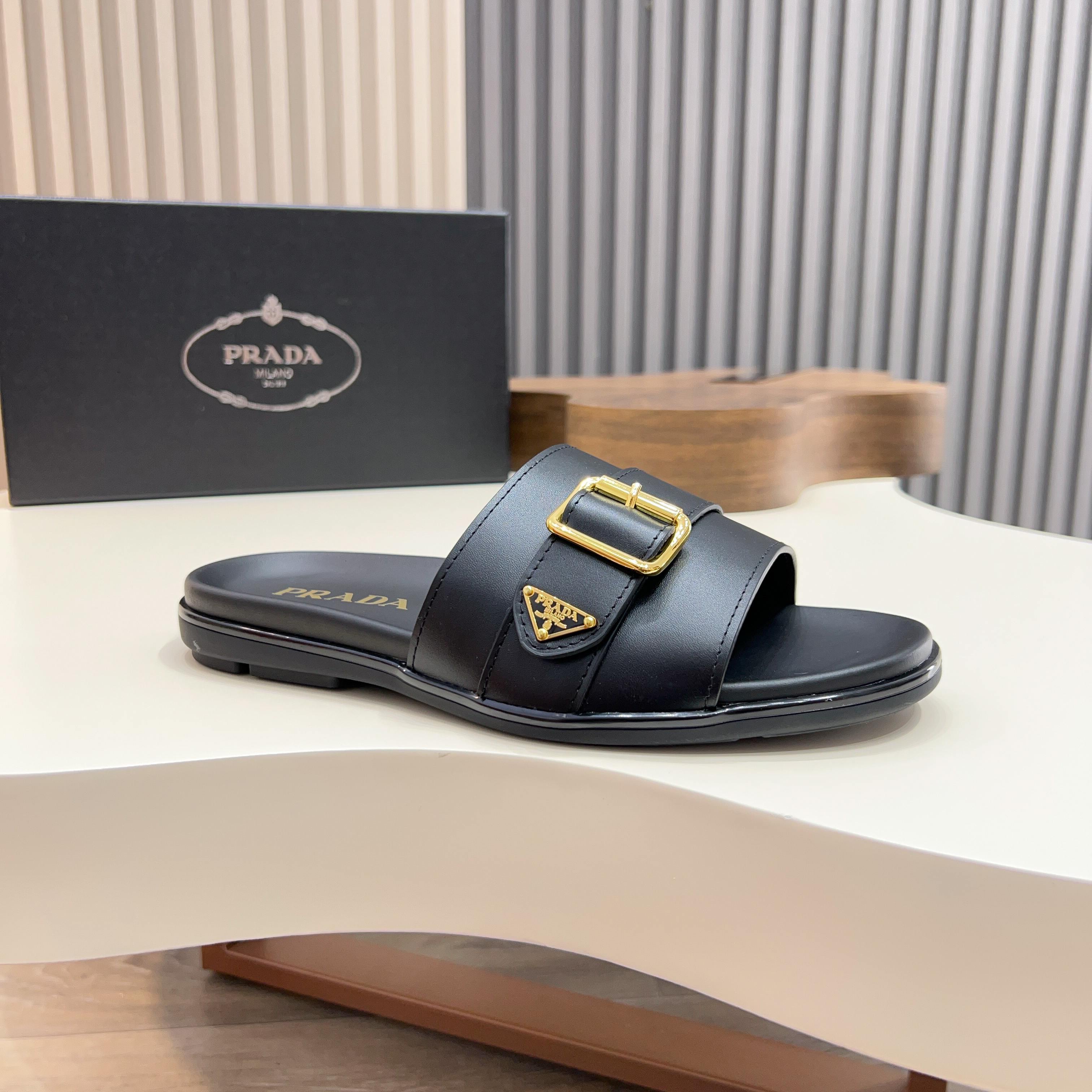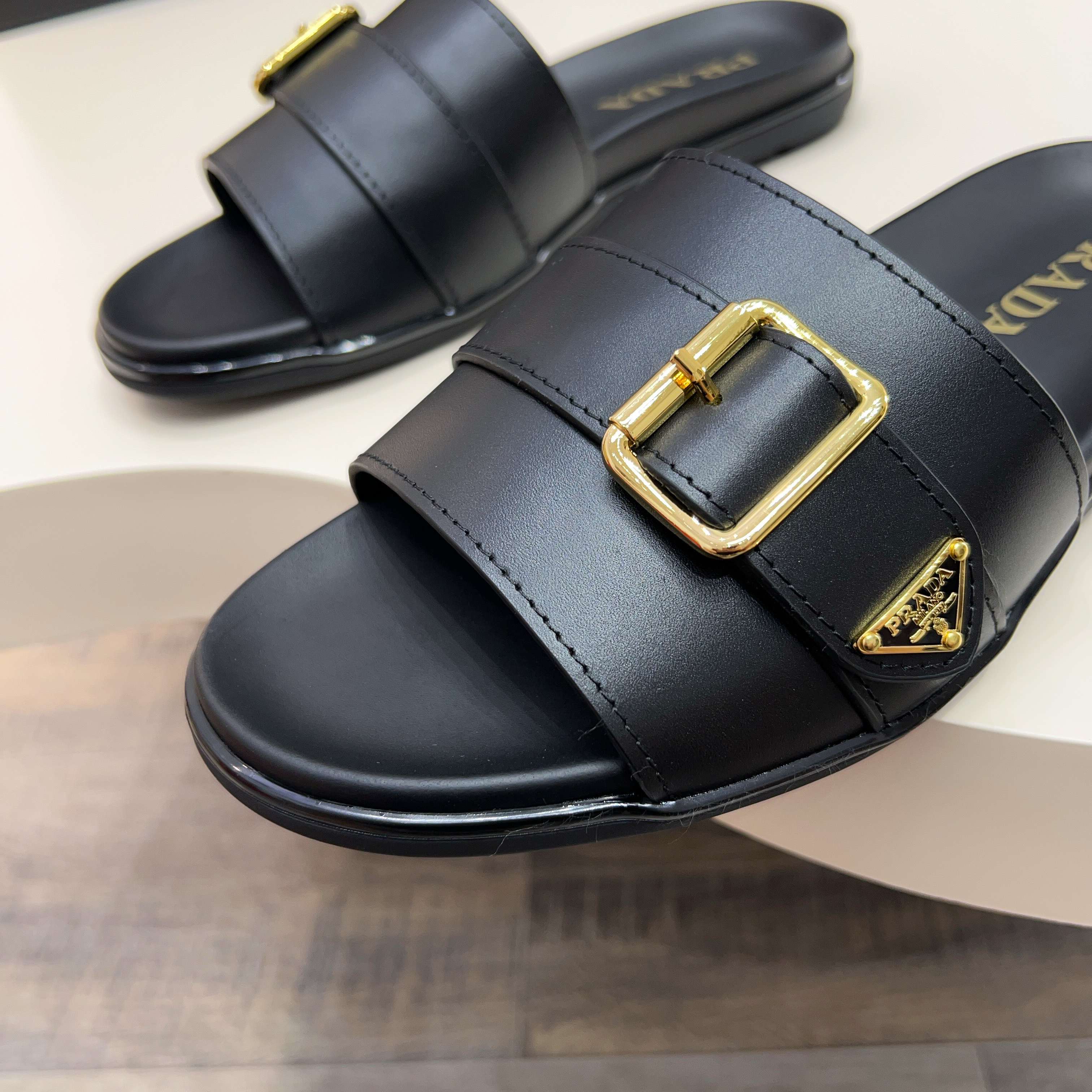 Prada Men's Leather Sandals Slides with Enamel Triangle Logo - Stylish & Comfy
