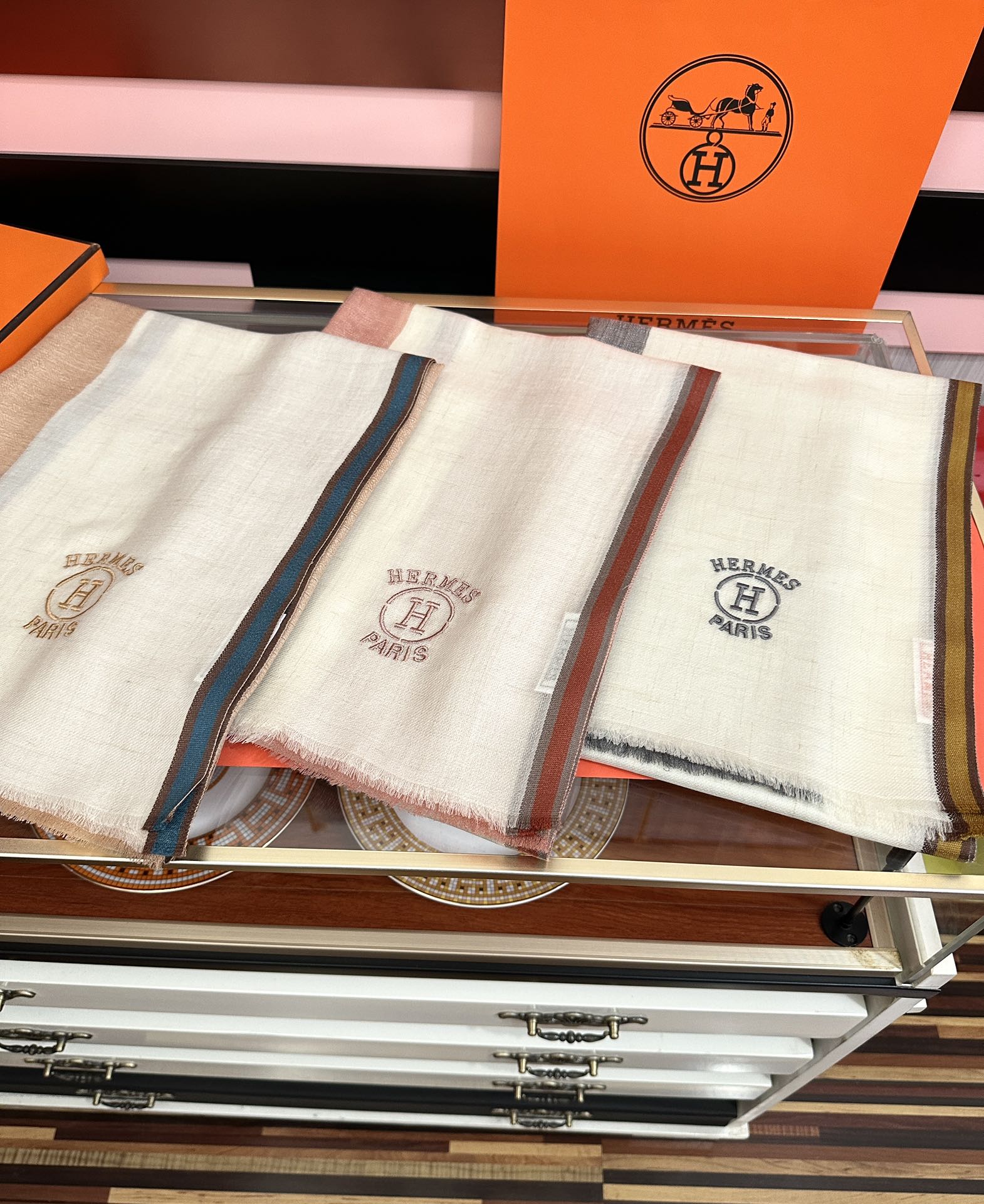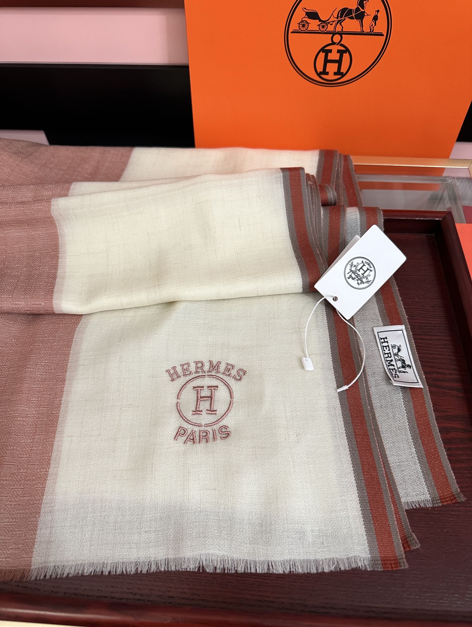 Elegant Cashmere Scarf by Hermès, Luxurious Feel, 90x20 cm, Multiple Colors