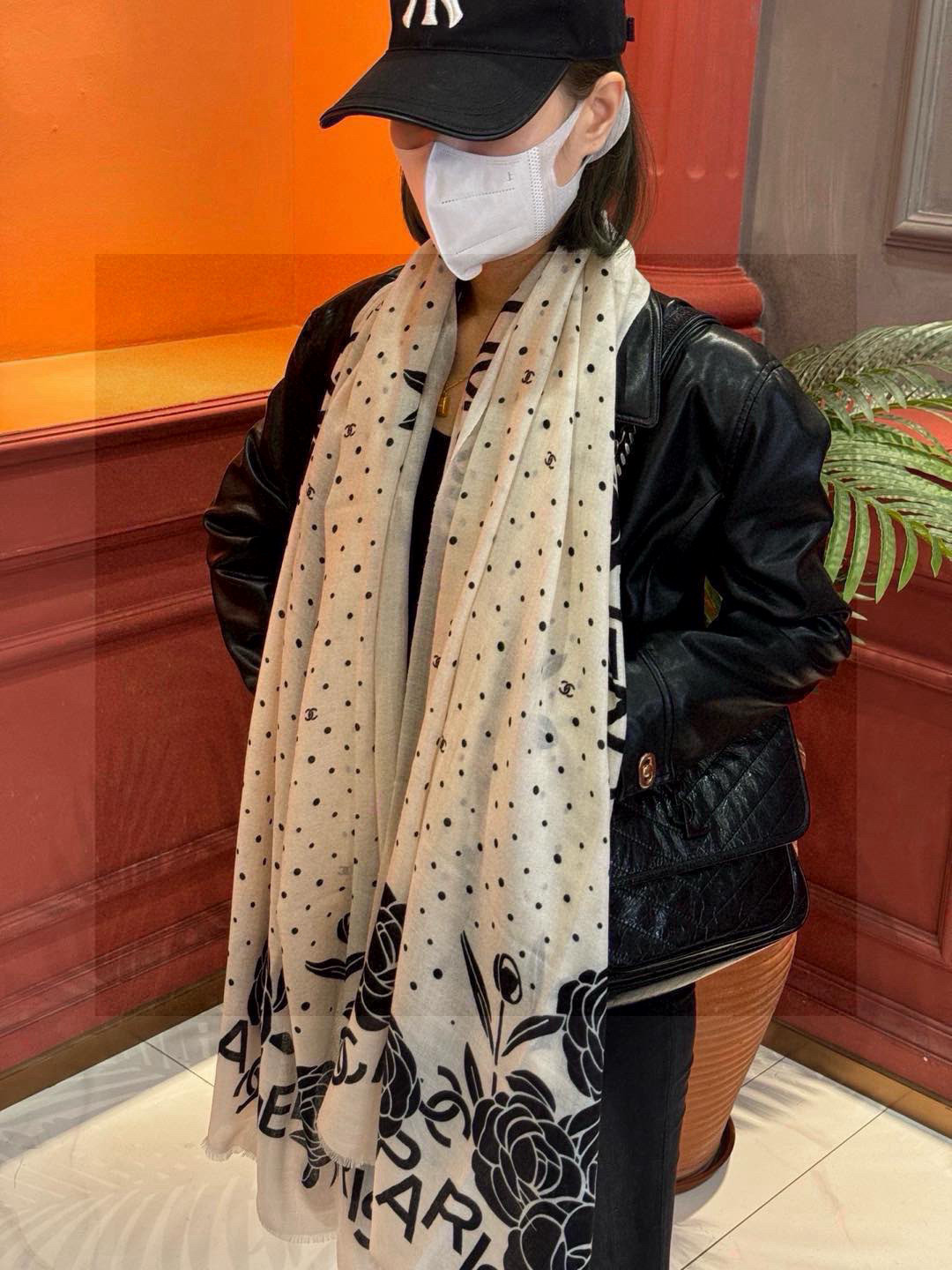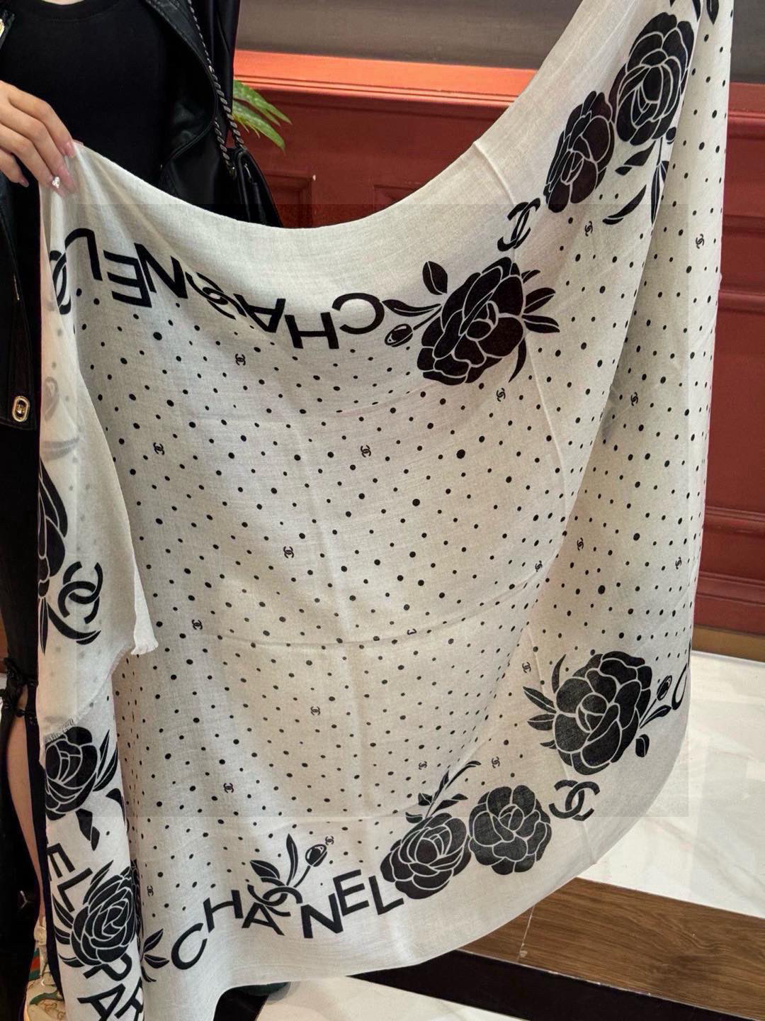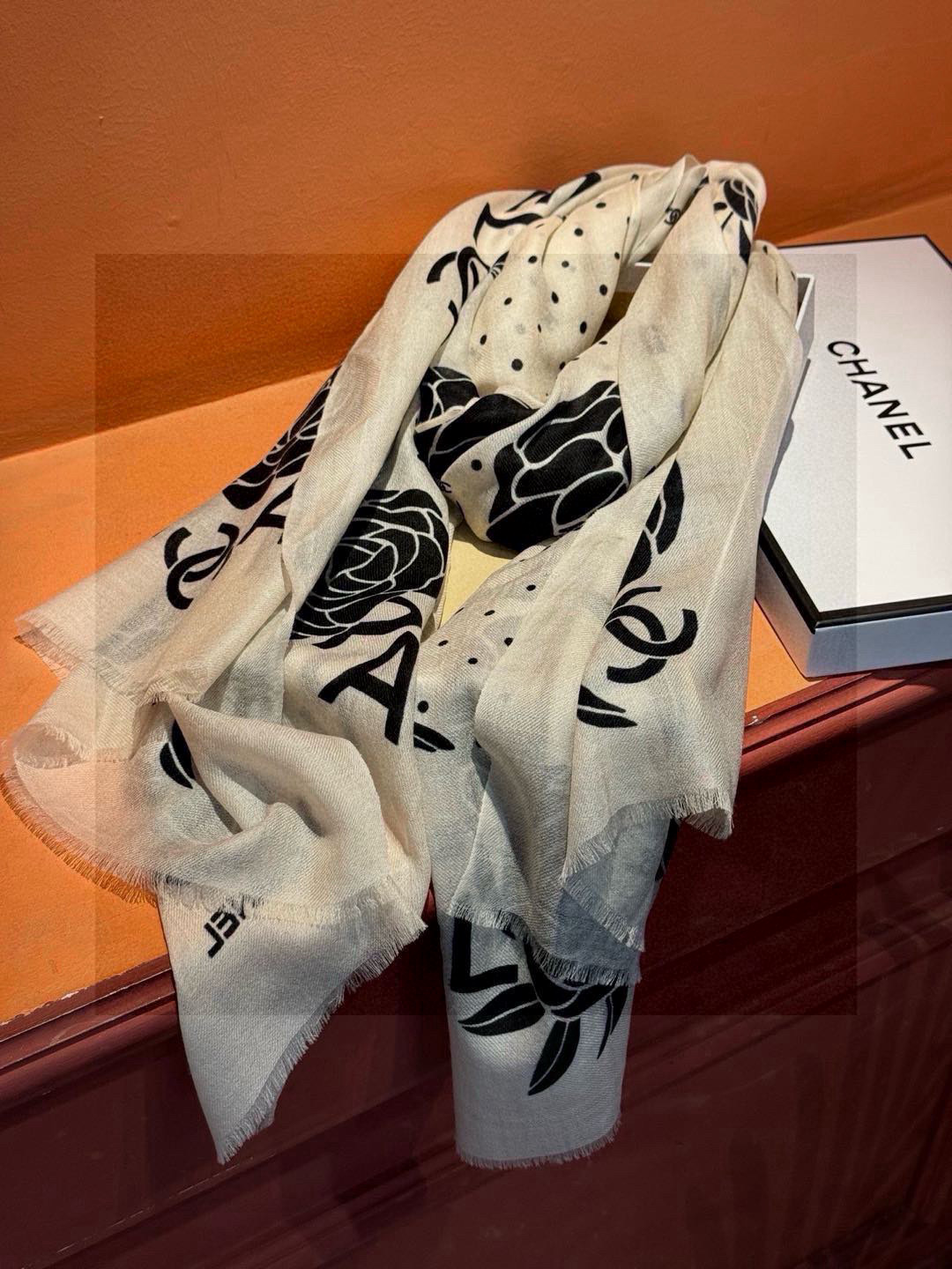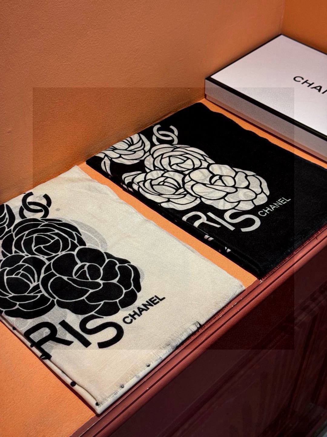 Elegant Chanel Camellia Cashmere Scarf, Luxury Floral Design, 100 x 200 cm