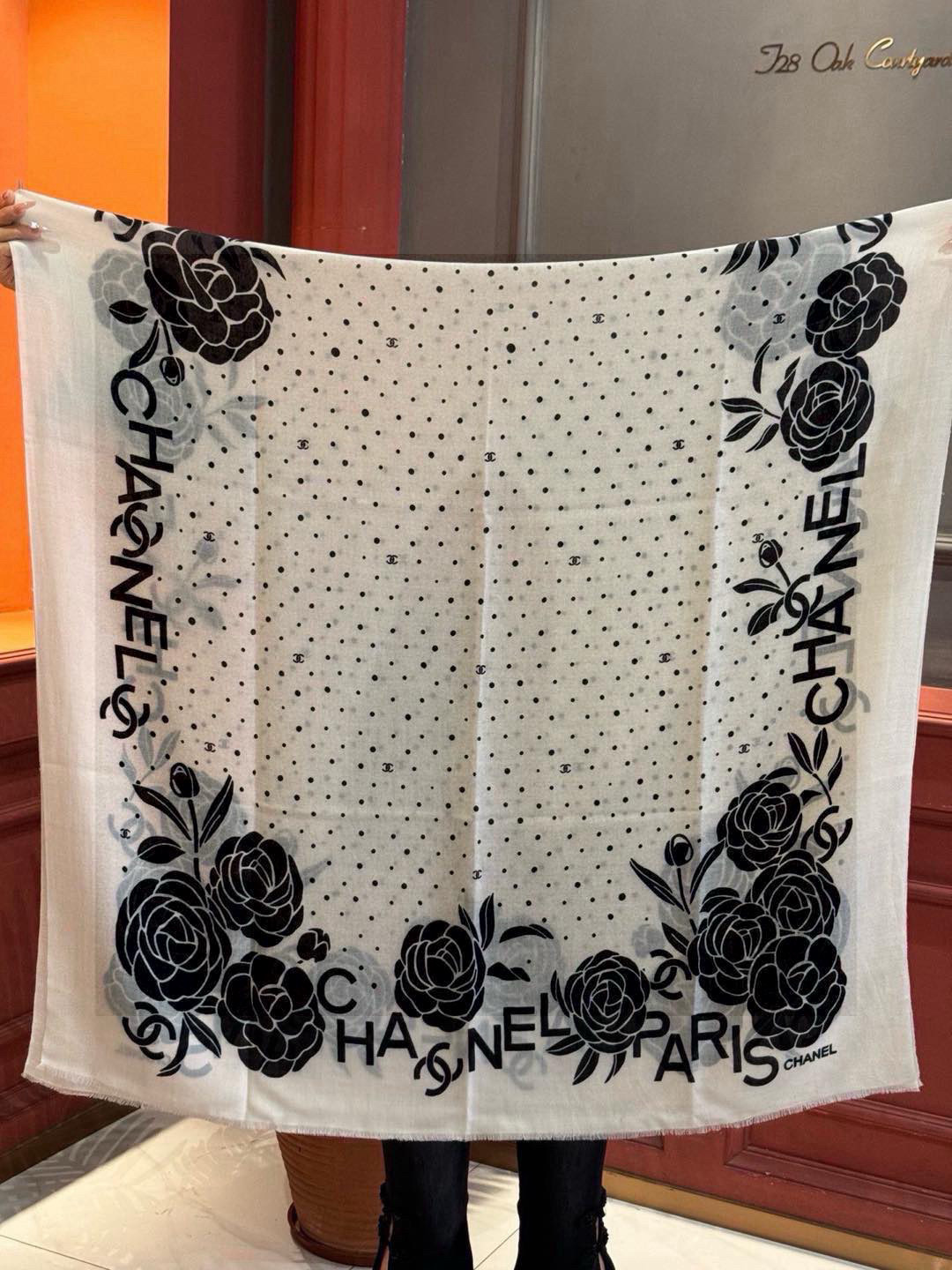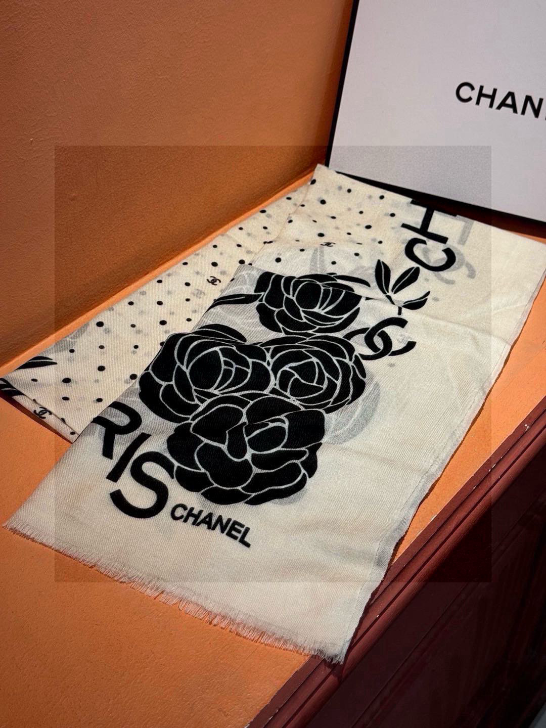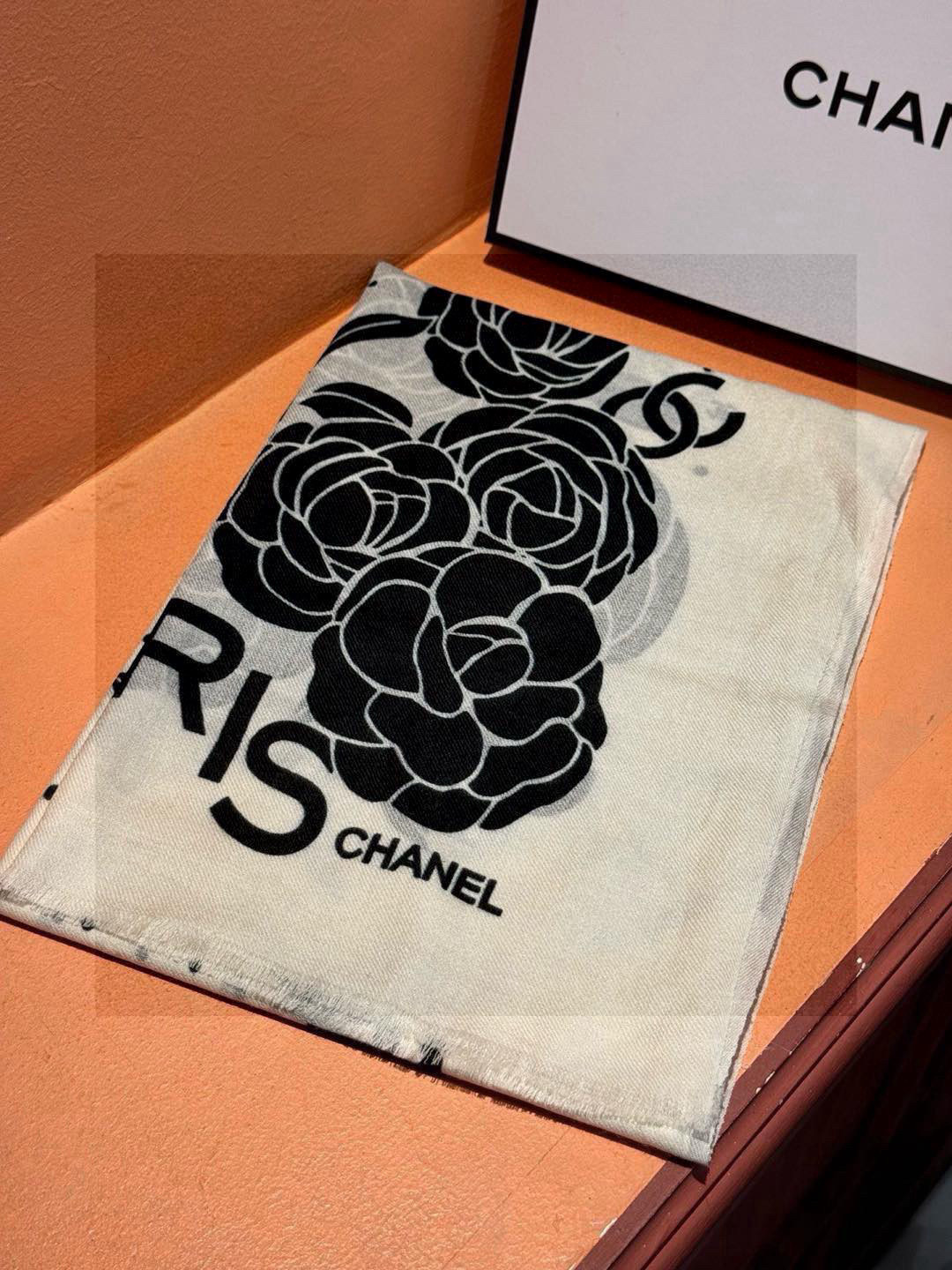 Elevate your style with this Chanel Camellia cashmere scarf. Features a luxury floral design, soft cashmere, and perfect for any season. Size: 100 x 200 cm.