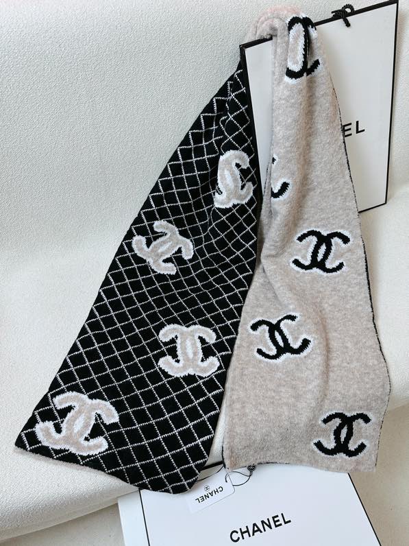 Elegant Chanel Cashmere Scarf with Embroidered Logo | 35 x 180 cm