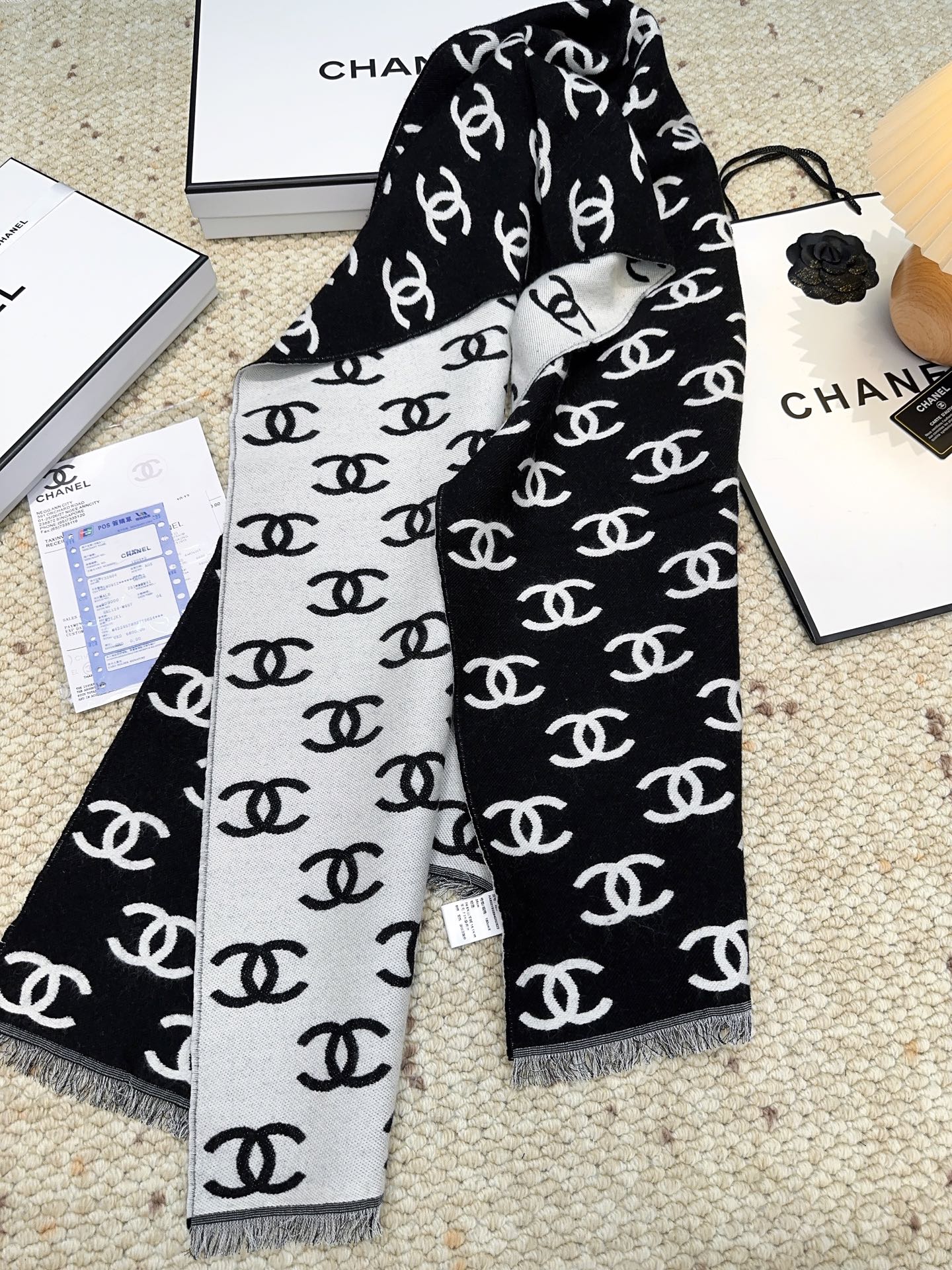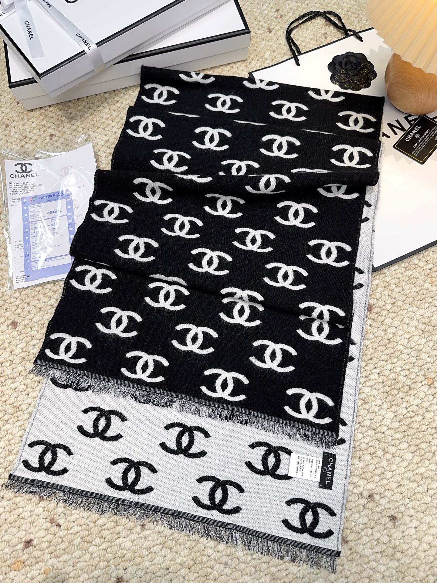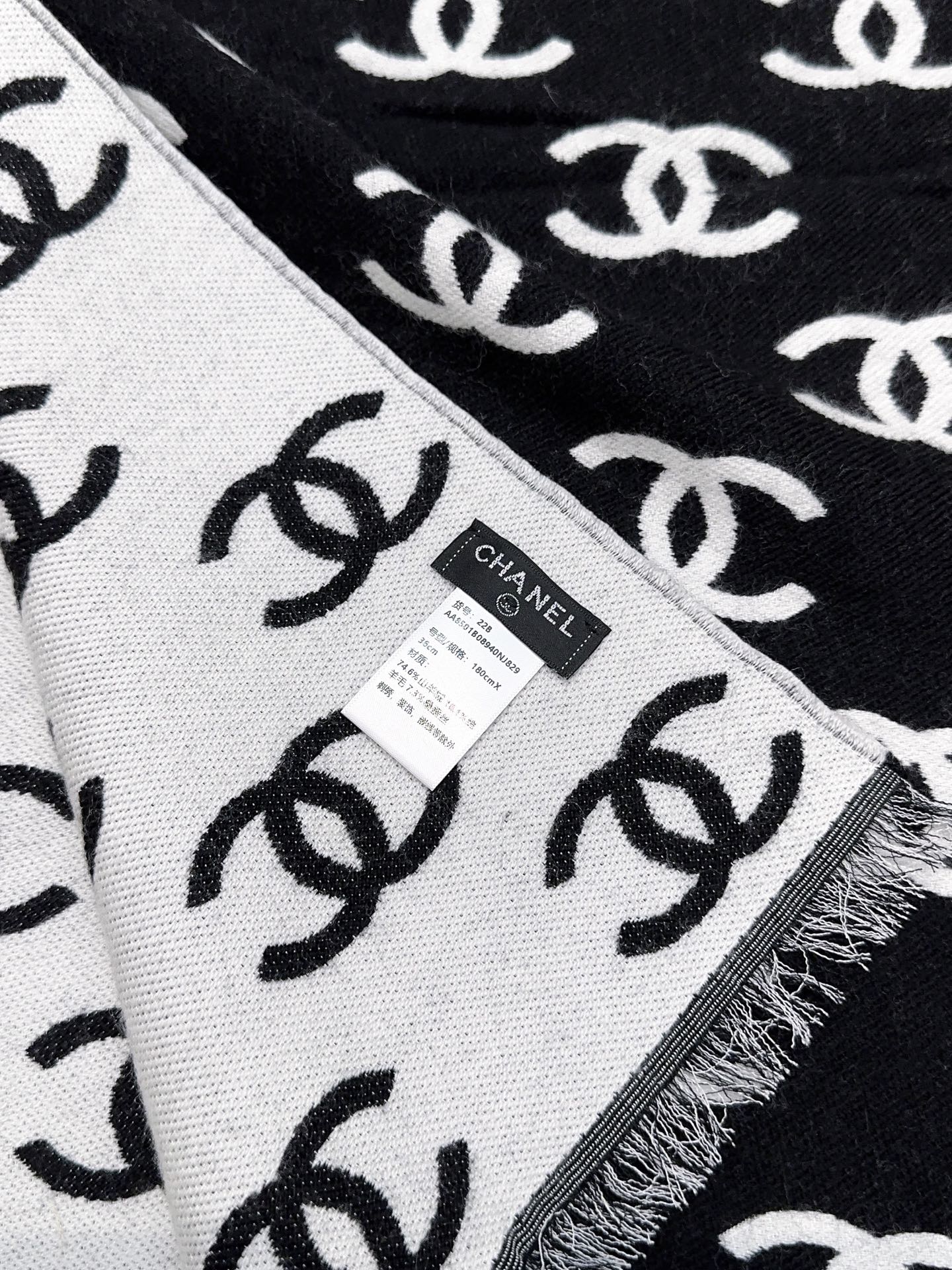 Elegant Chanel-Inspired Black & White Scarf, Soft Cashmere Blend, 180x35cm