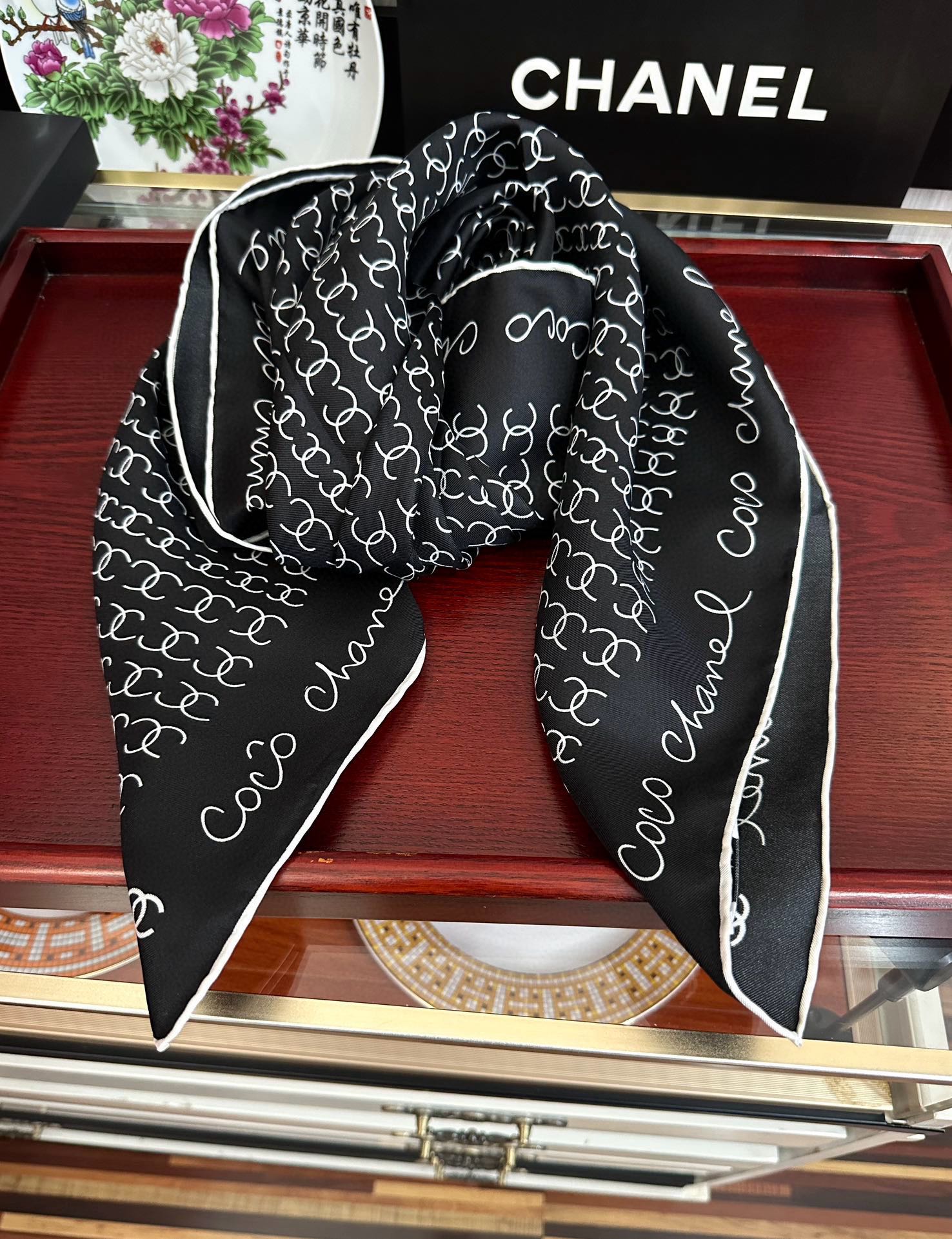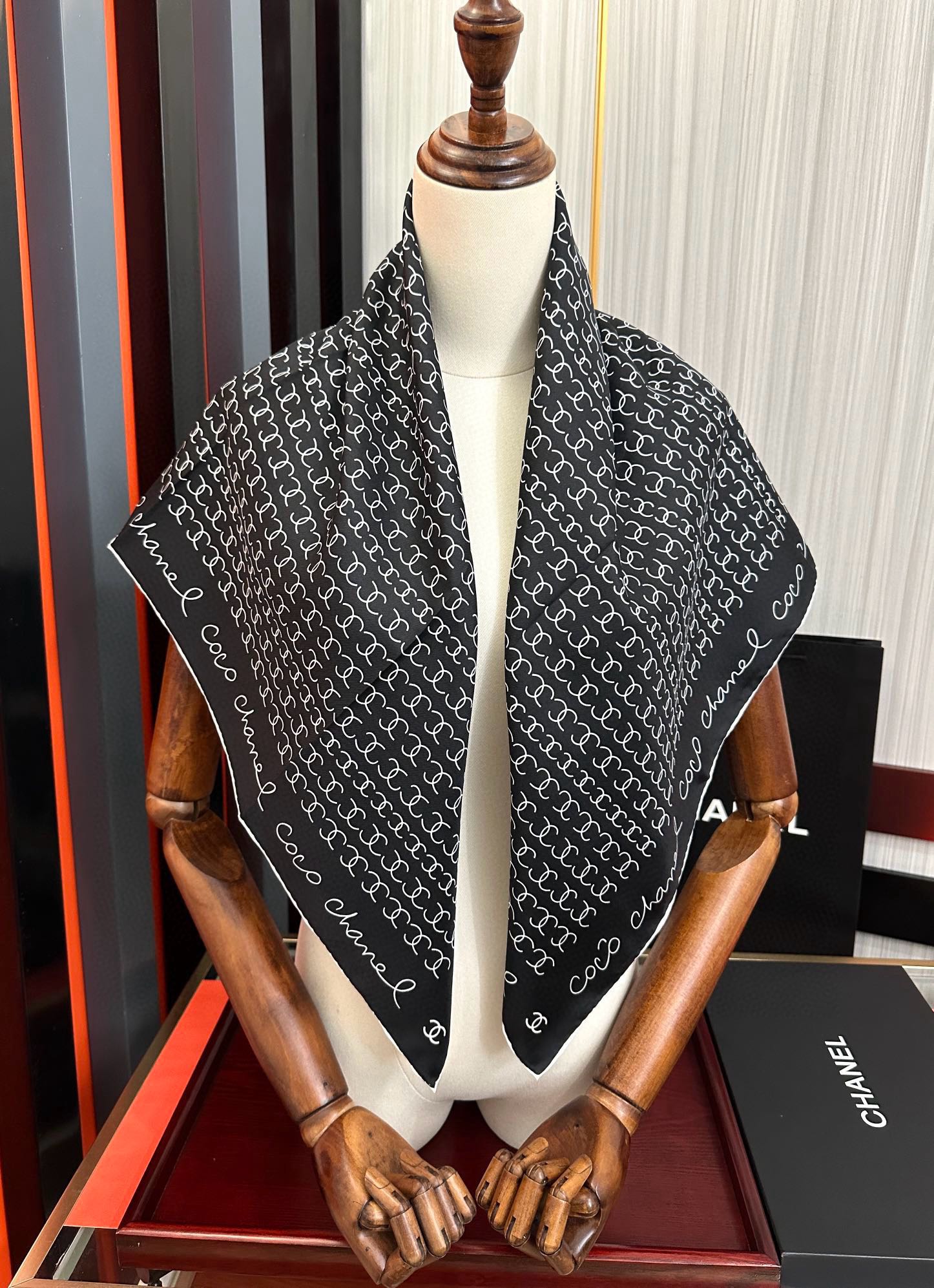Elegant Chanel Inspired Silk Scarf with Iconic CC Logo - 90x90cm