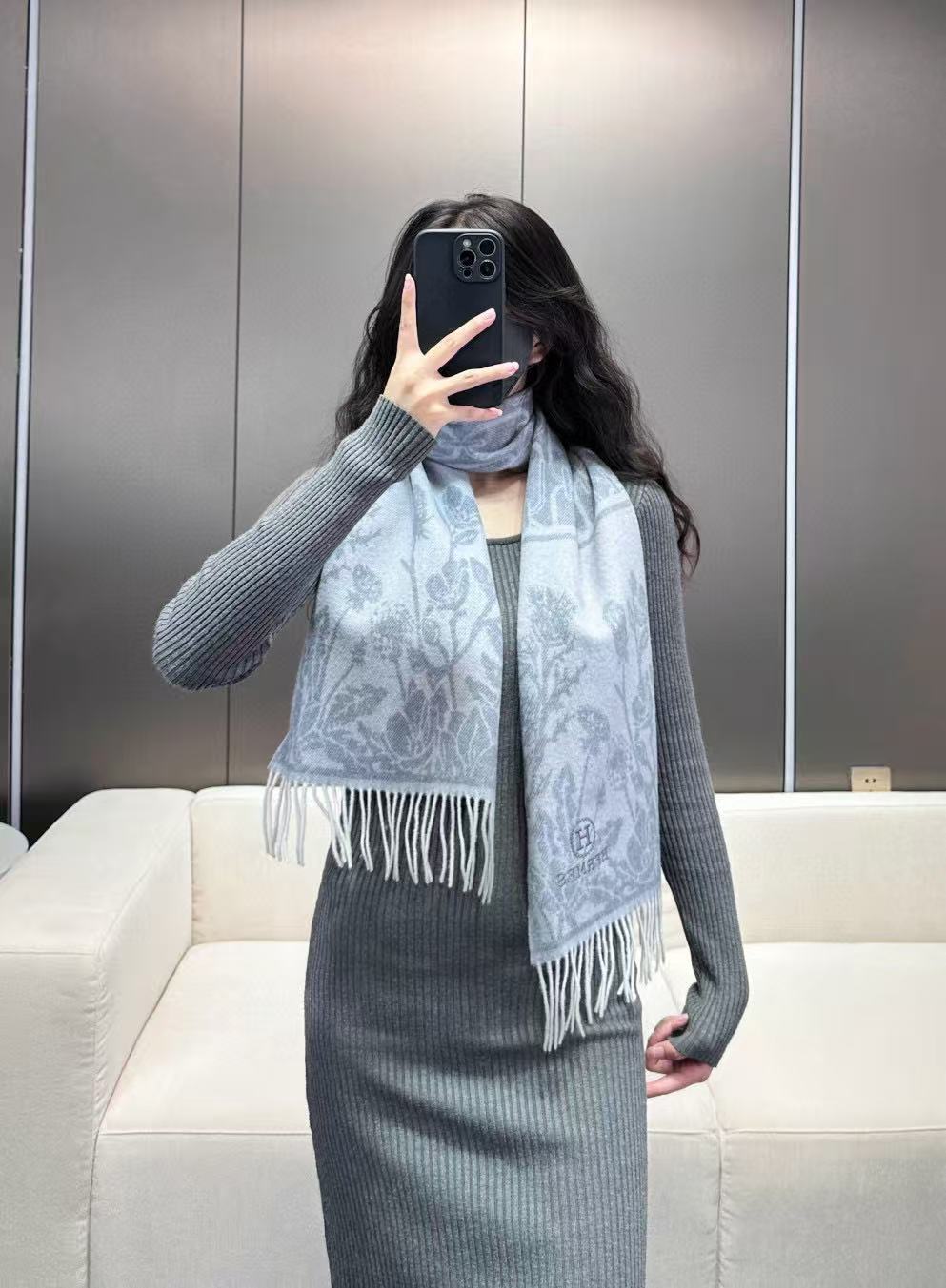 Elevate your style with this luxurious wool scarf. Features a beautiful floral print, soft texture, and elegant tassel edges. Perfect for any occasion.