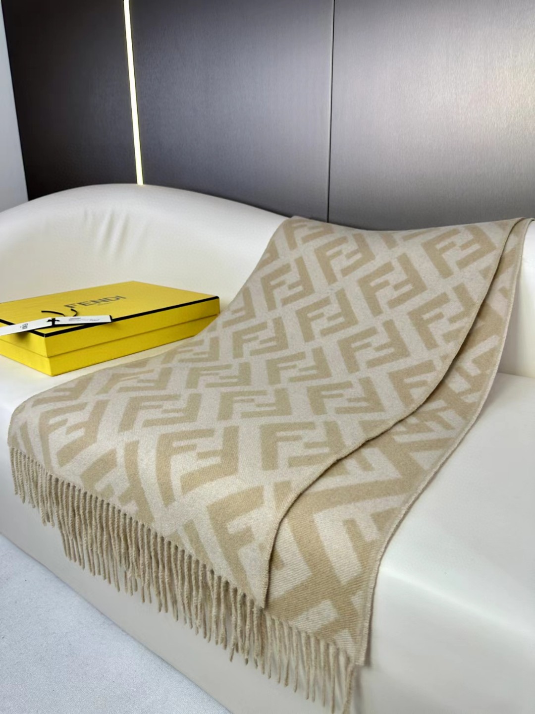 Fendi Brown Cashmere Blend FF Jacquard Scarf Women's Elegant Tassel Shawl